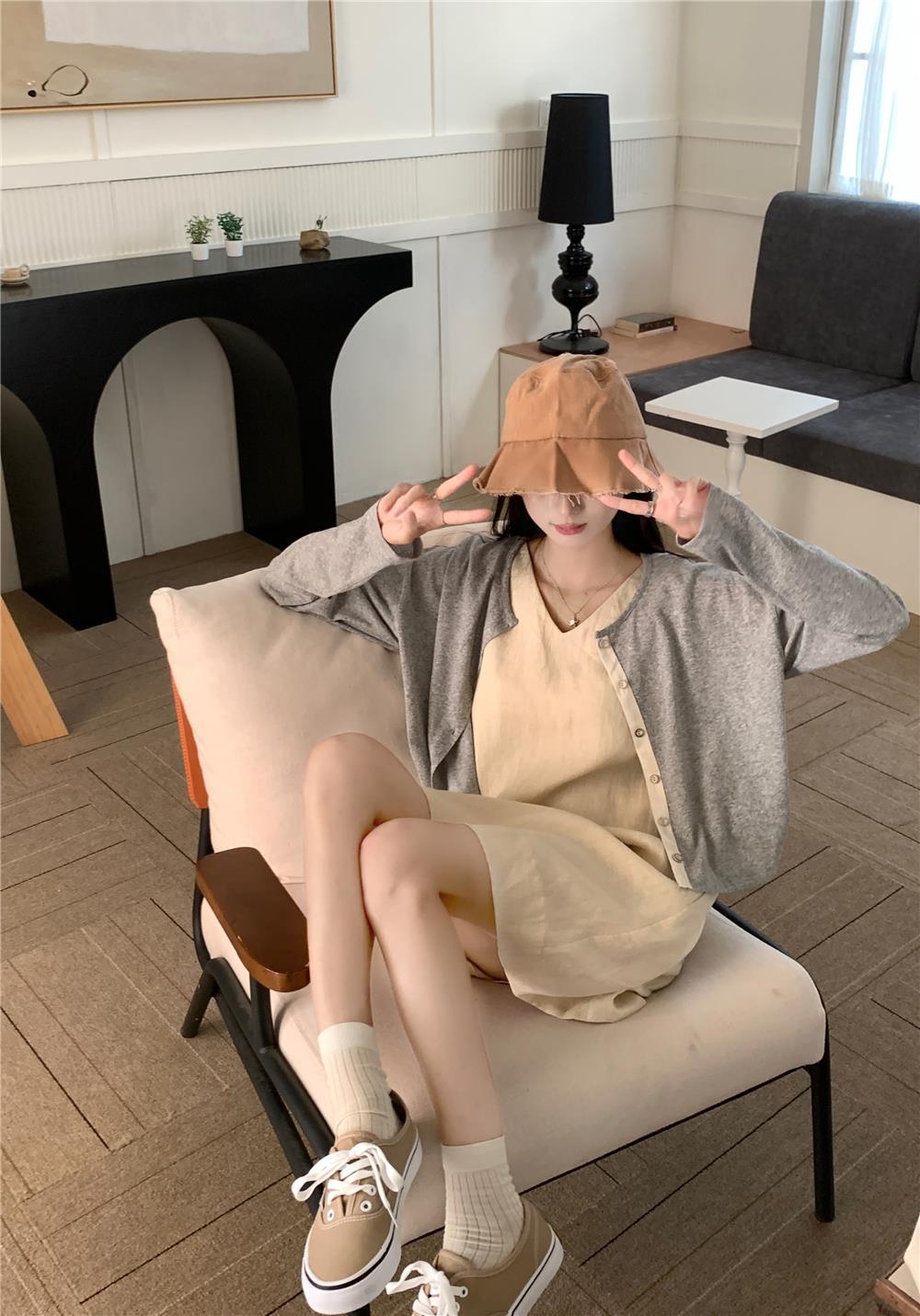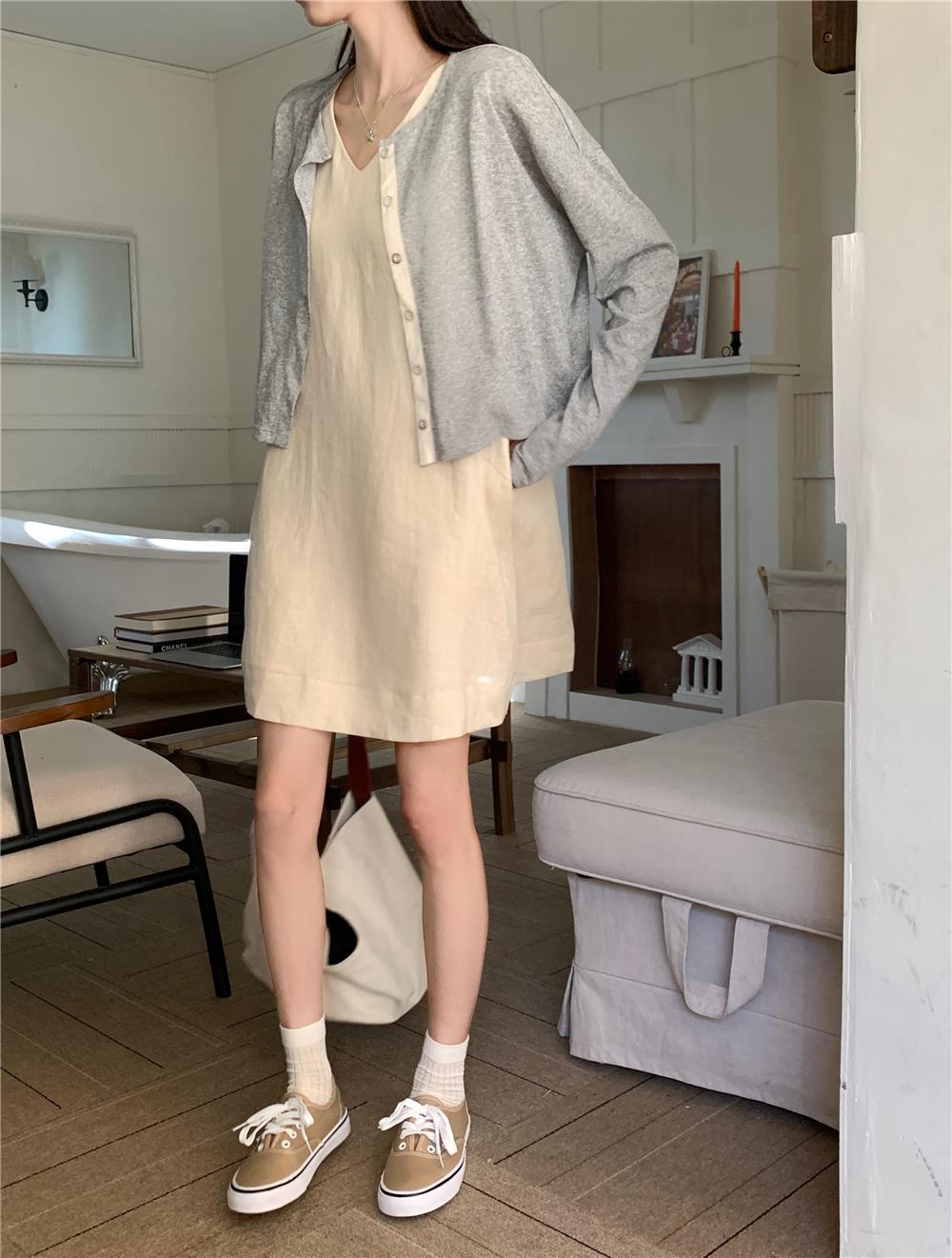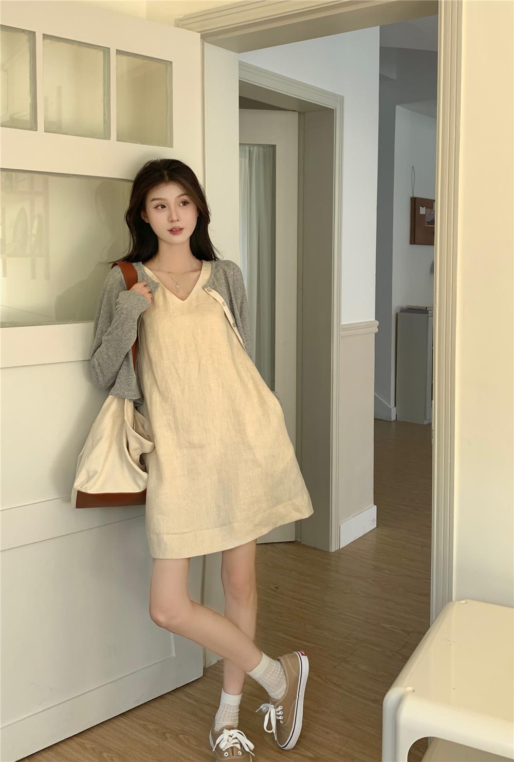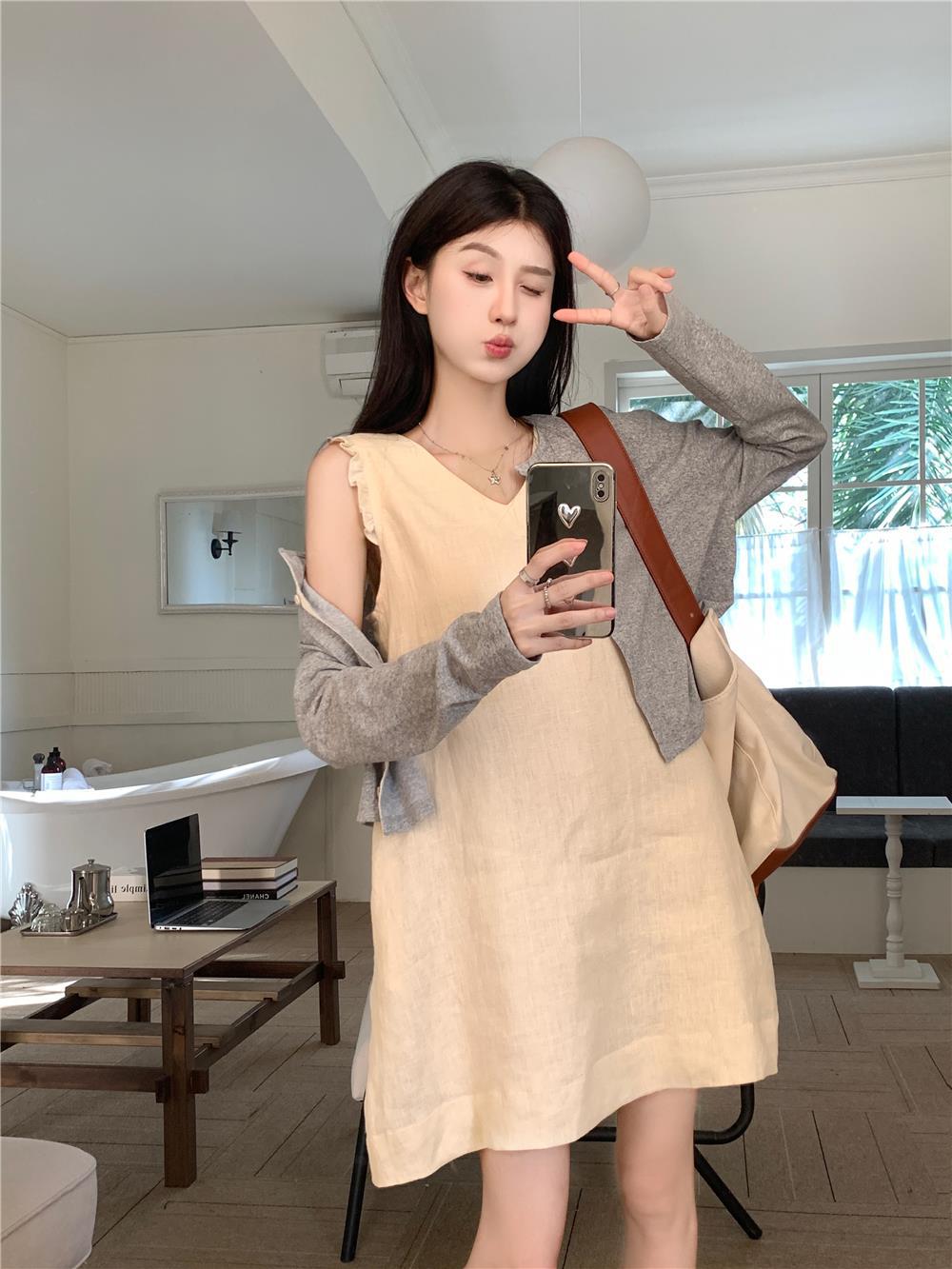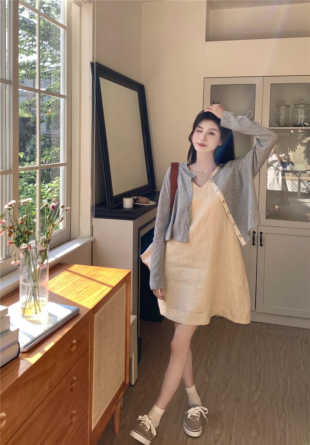 Color/颜色:外套/杂灰色 连衣裙/亚麻米