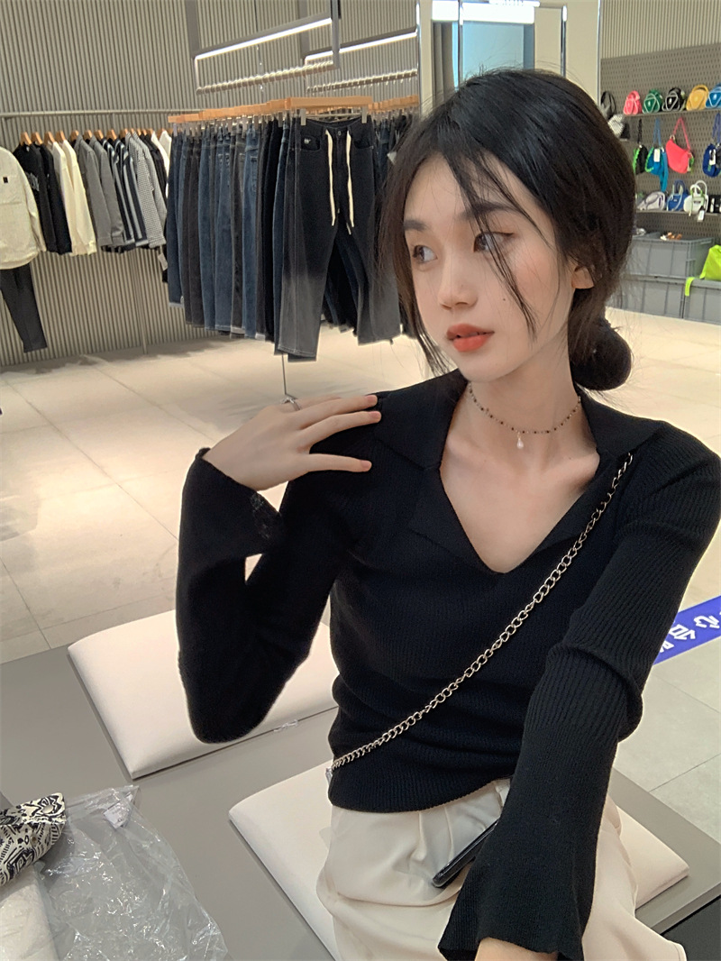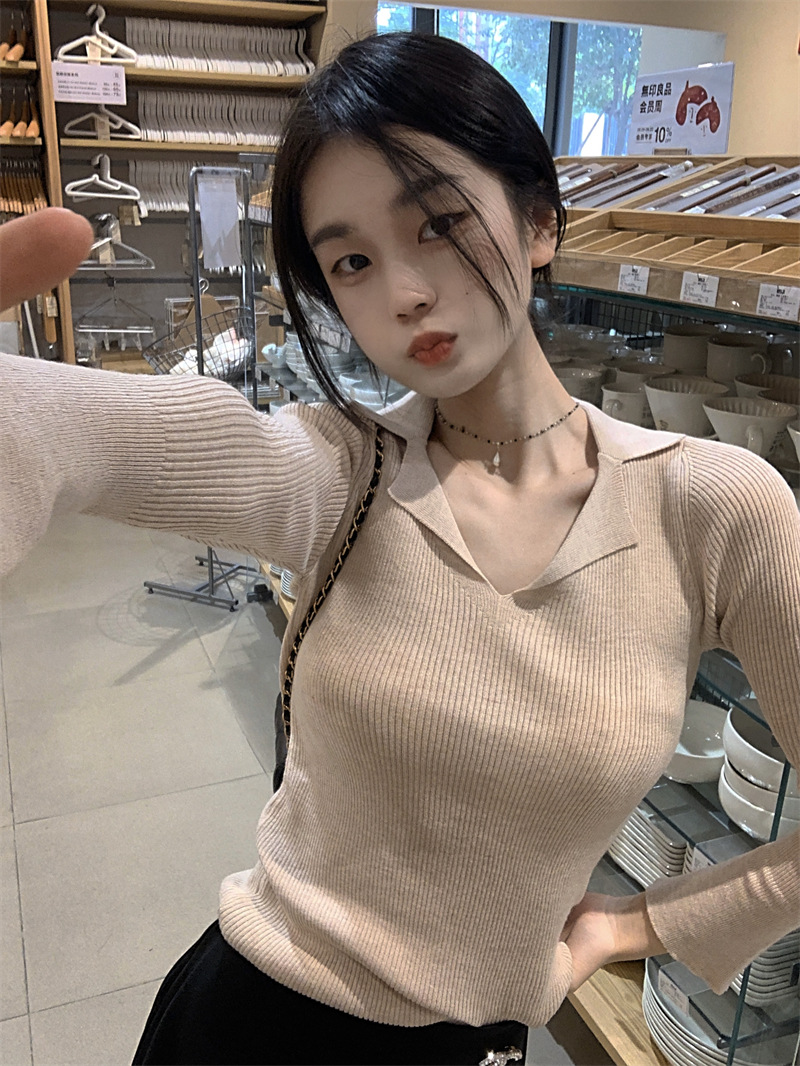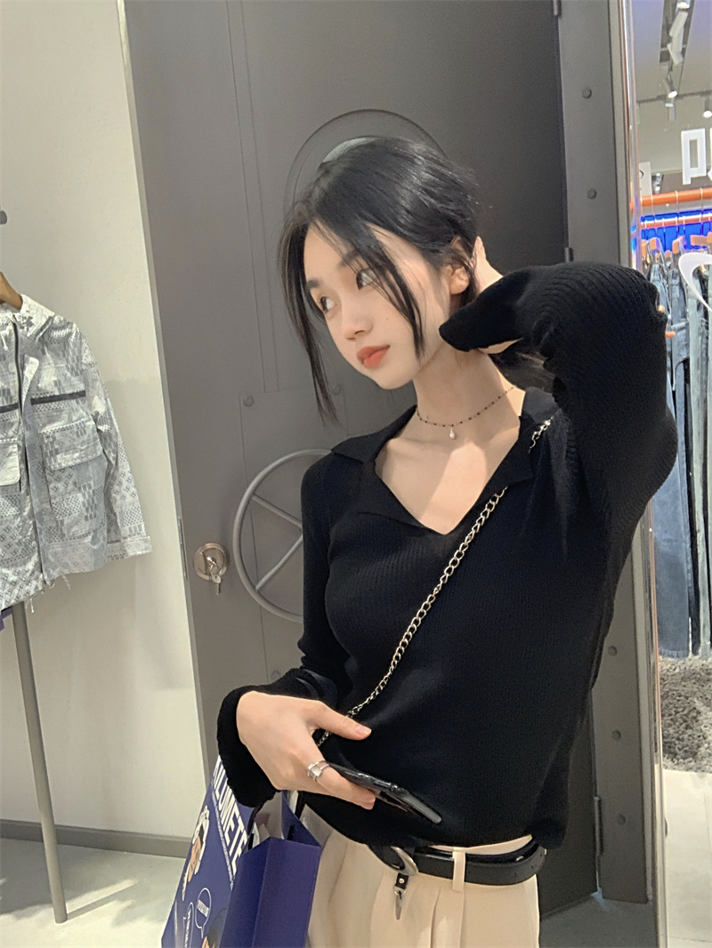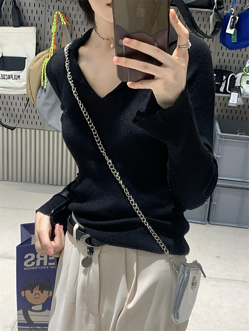 JMA-429 实拍 小众修身内搭长袖针织衫女秋冬设计感毛衣显瘦打底衫上衣ins