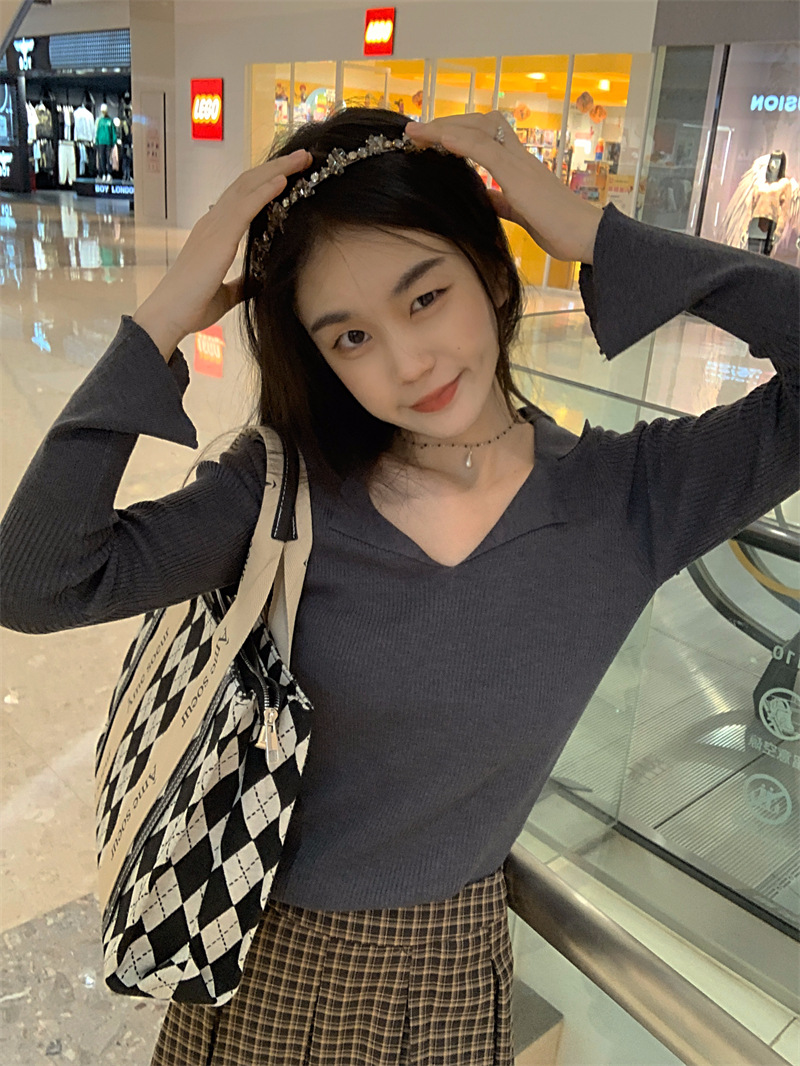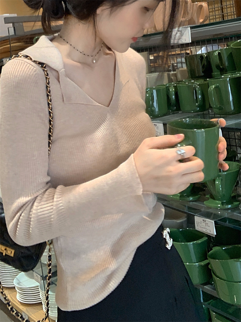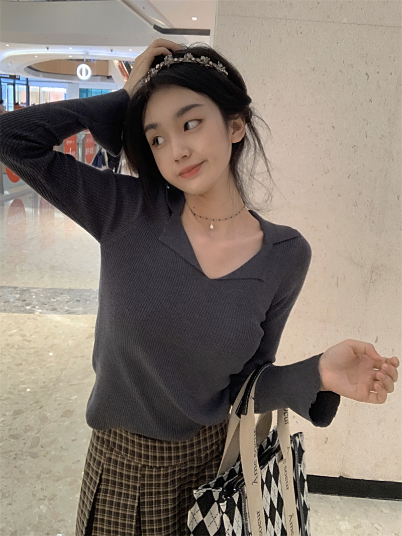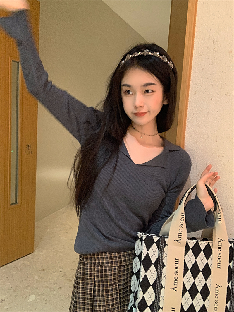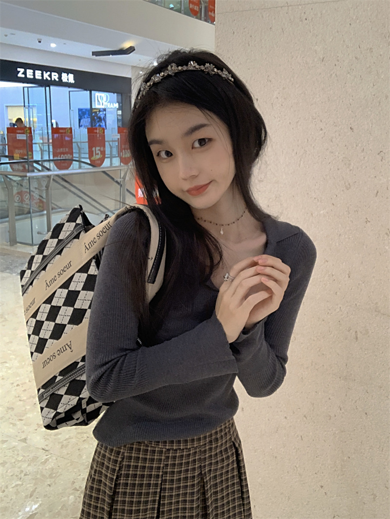 JMA-429 实拍 小众修身内搭长袖针织衫女秋冬设计感毛衣显瘦打底衫上衣ins