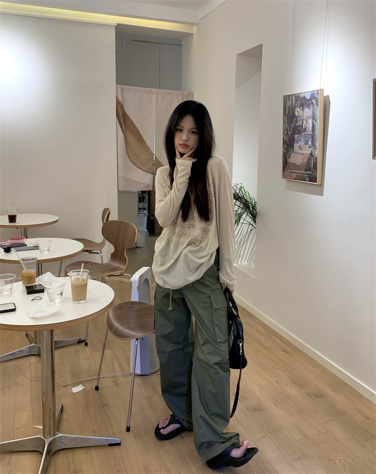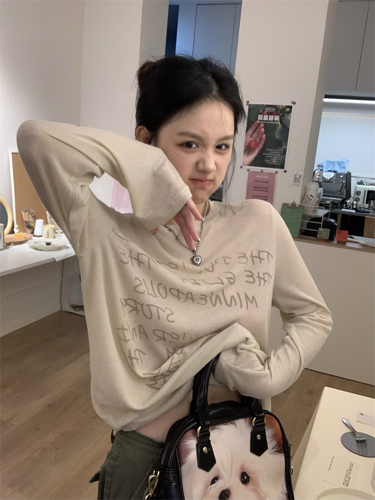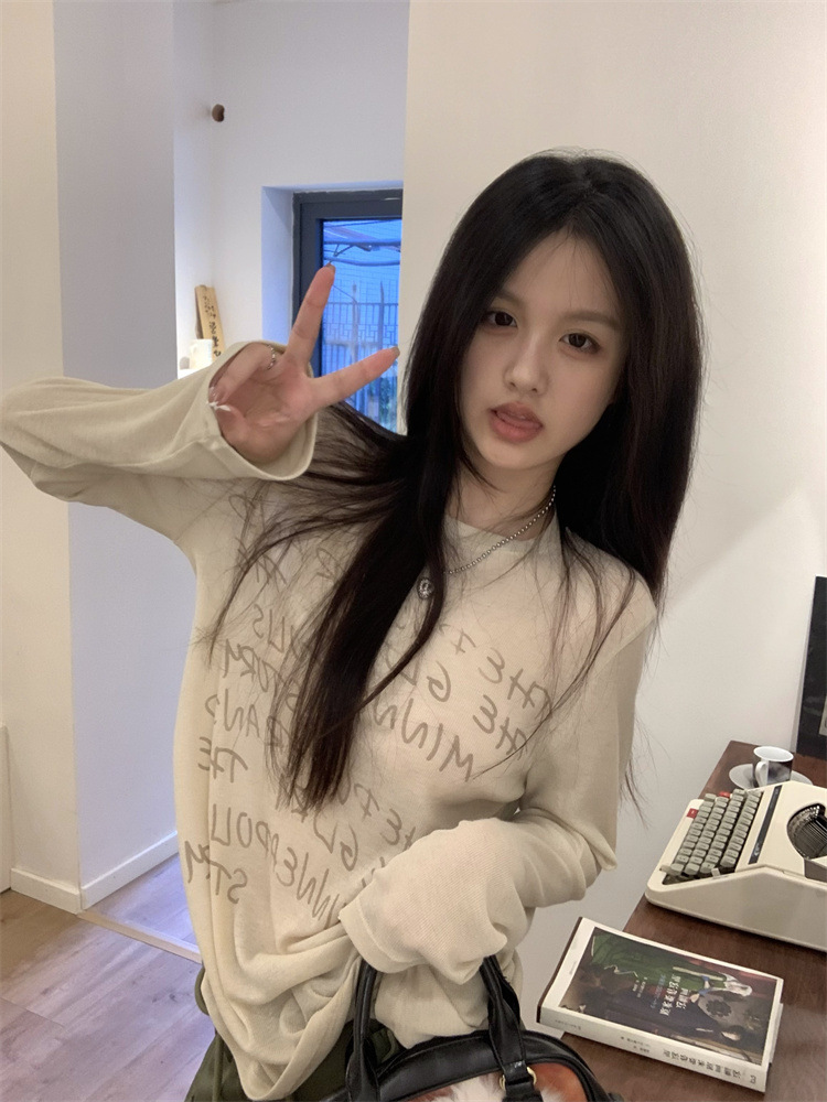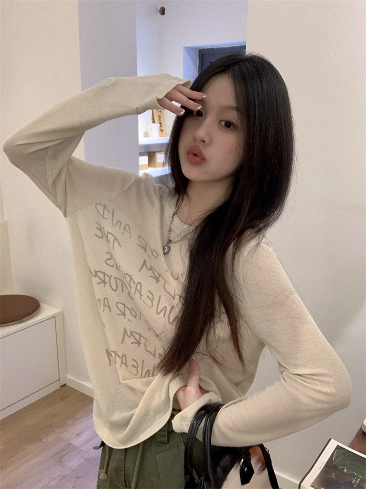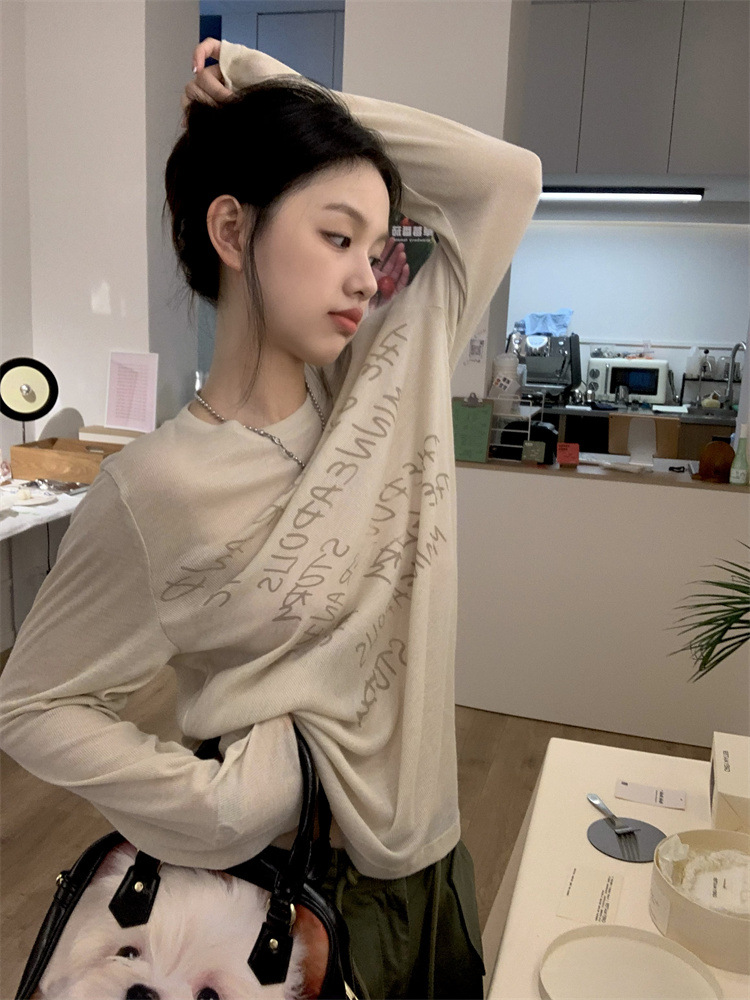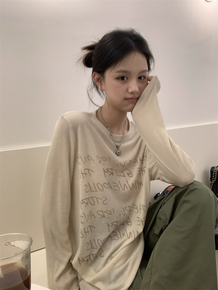 JMA-430 慵懒风设计感薄款长袖防晒罩衫女夏季宽松中长款休闲T恤打底上衣