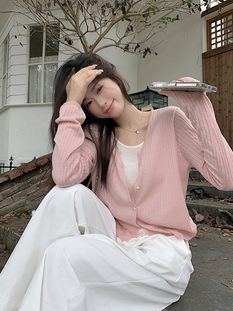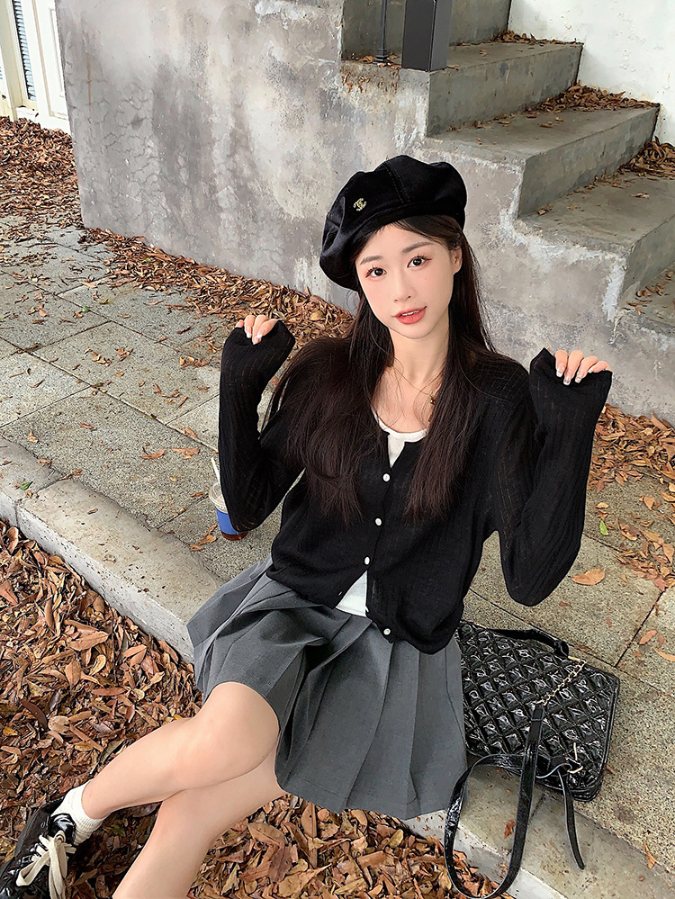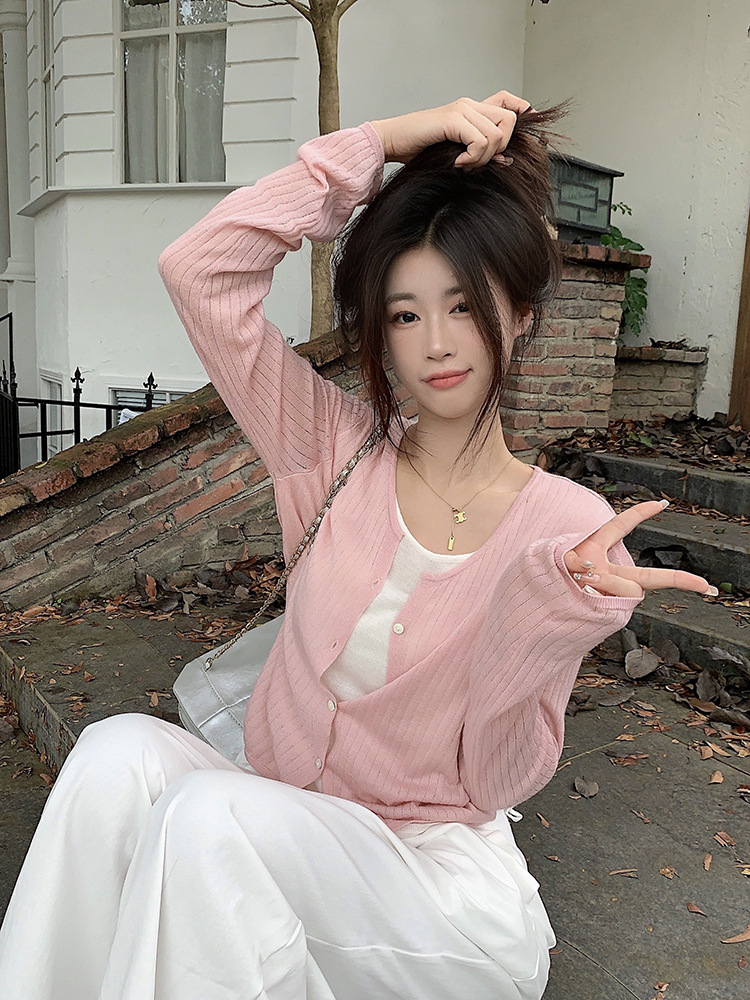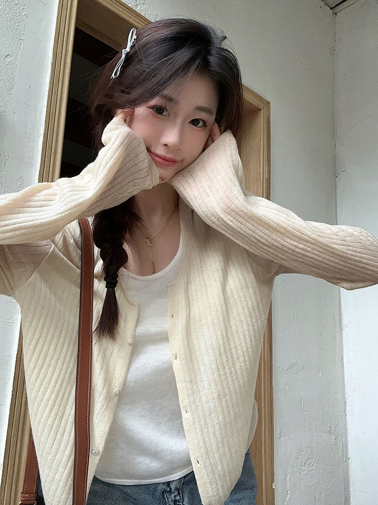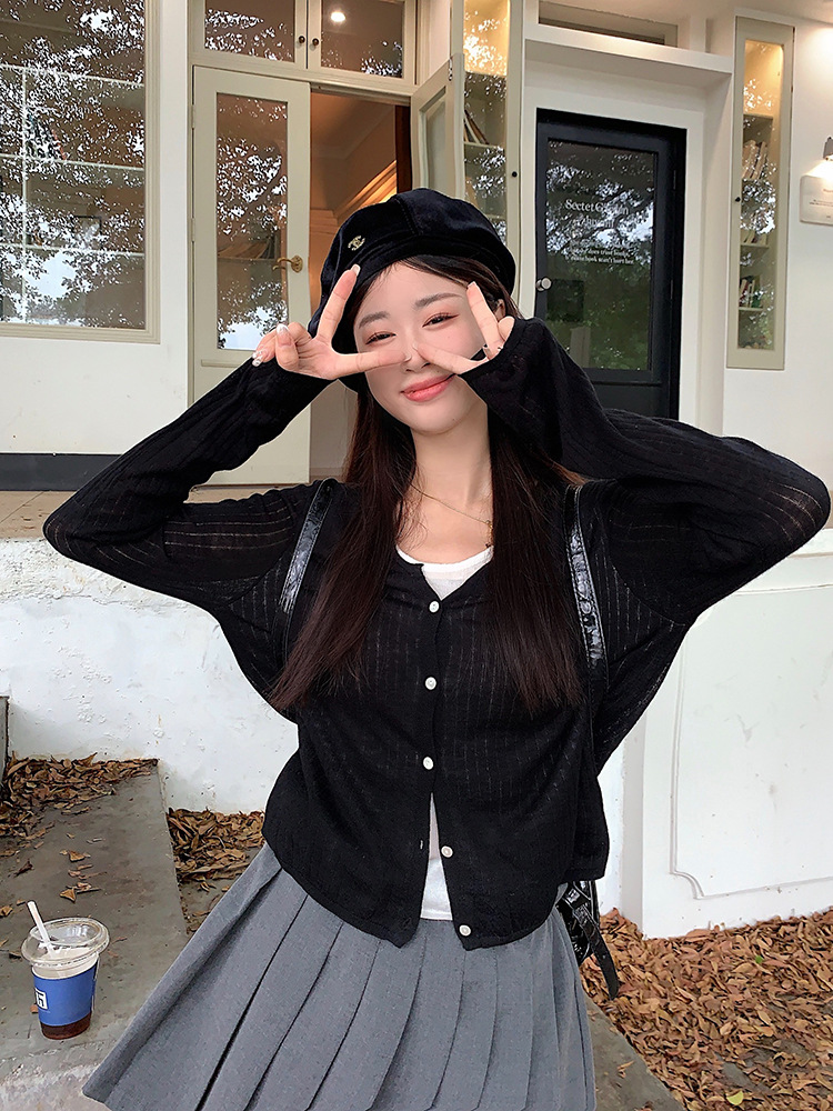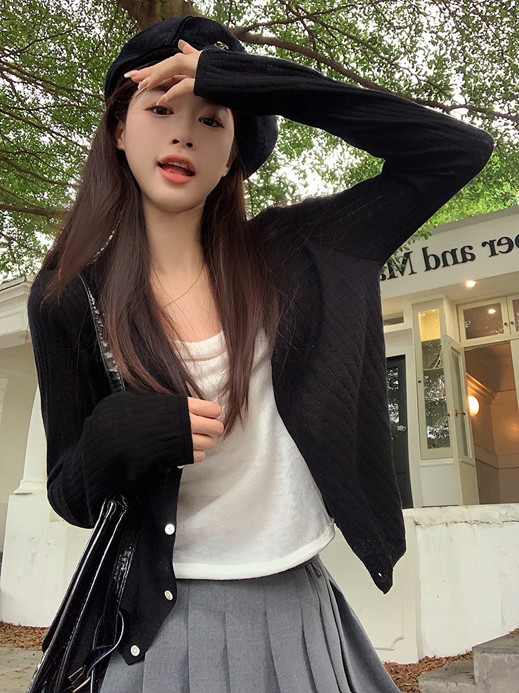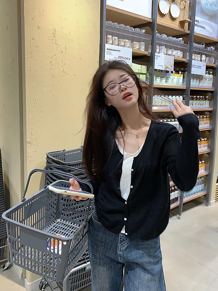 JMA-431 实拍 2023秋季新款韩版假两件拼接设计感针织开衫女叠穿长袖上衣