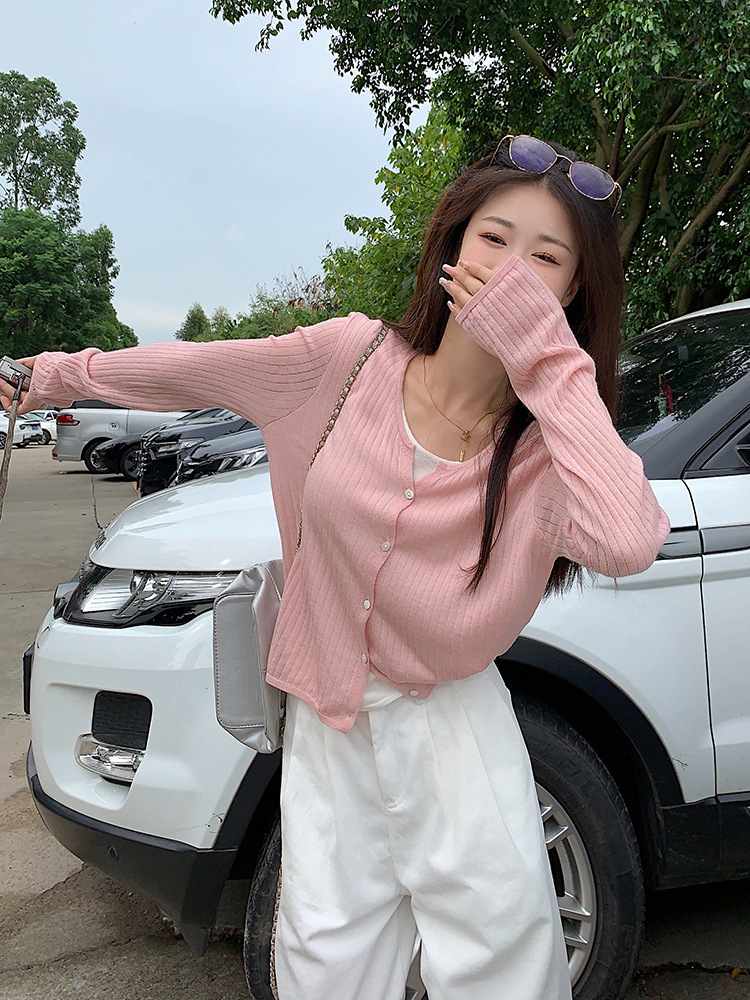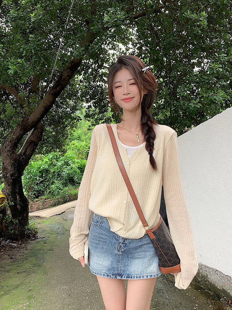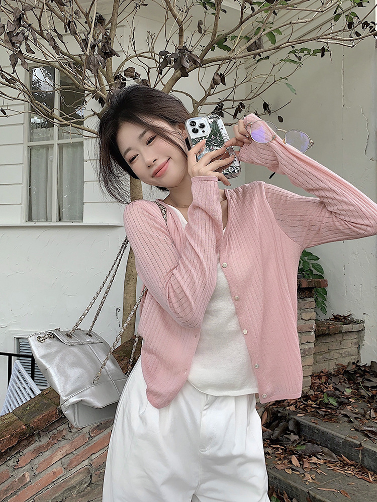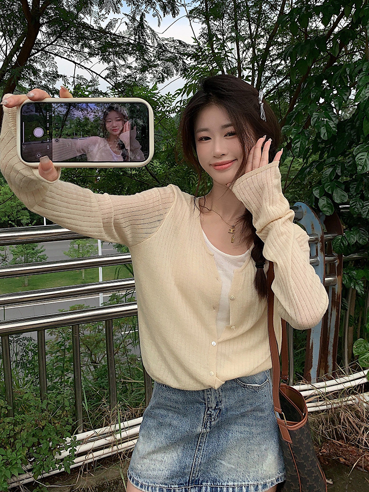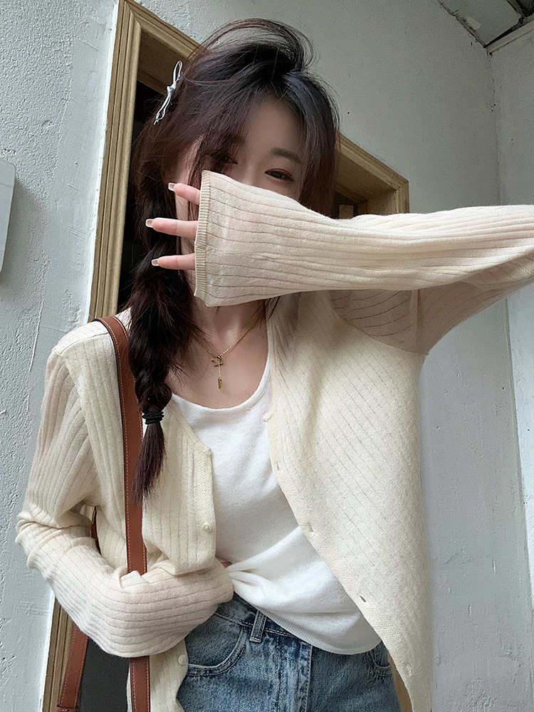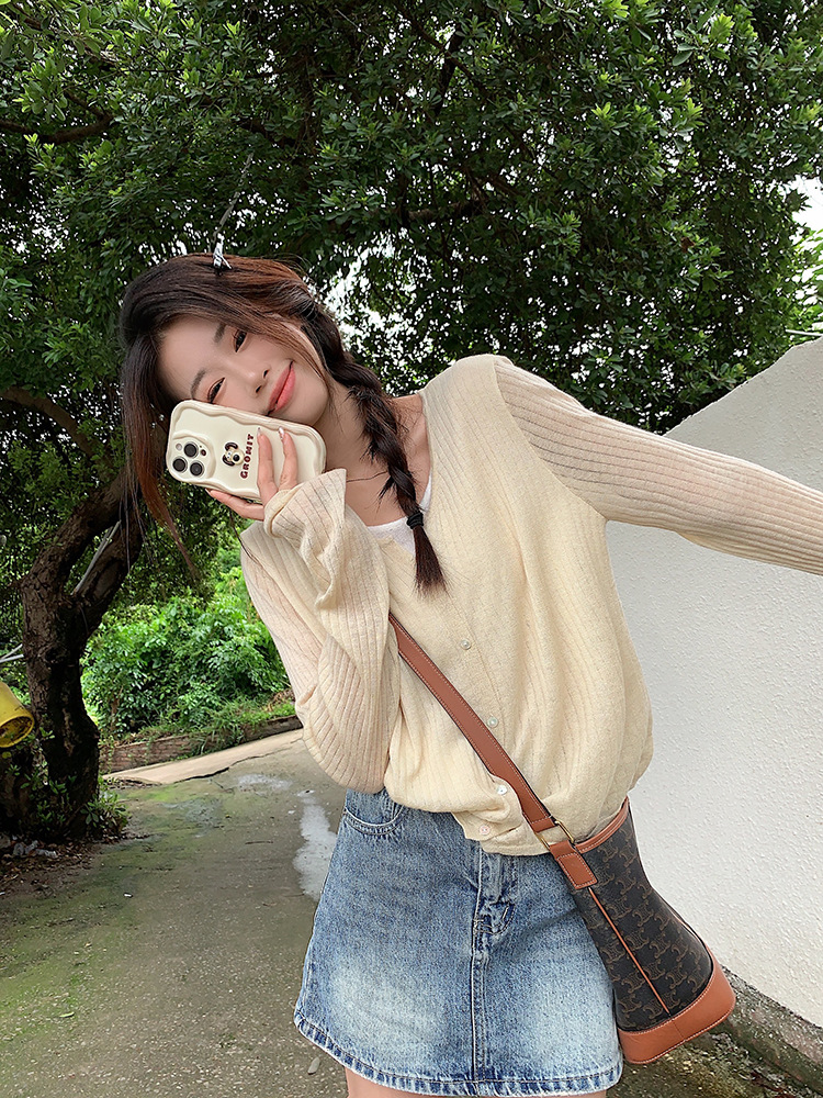 JMA-431 实拍 2023秋季新款韩版假两件拼接设计感针织开衫女叠穿长袖上衣