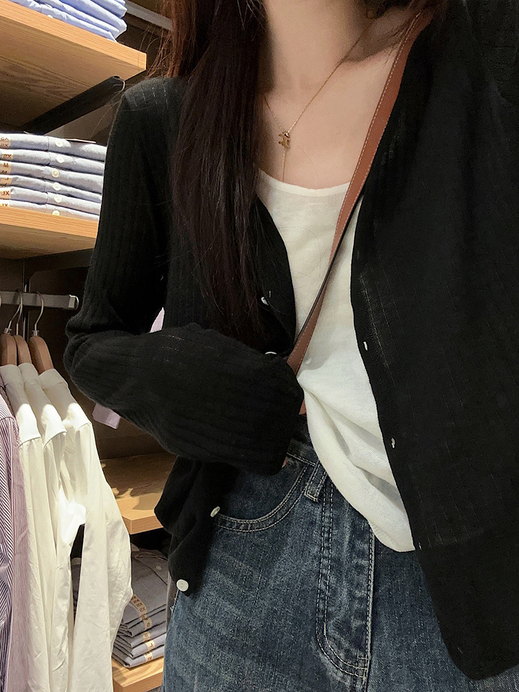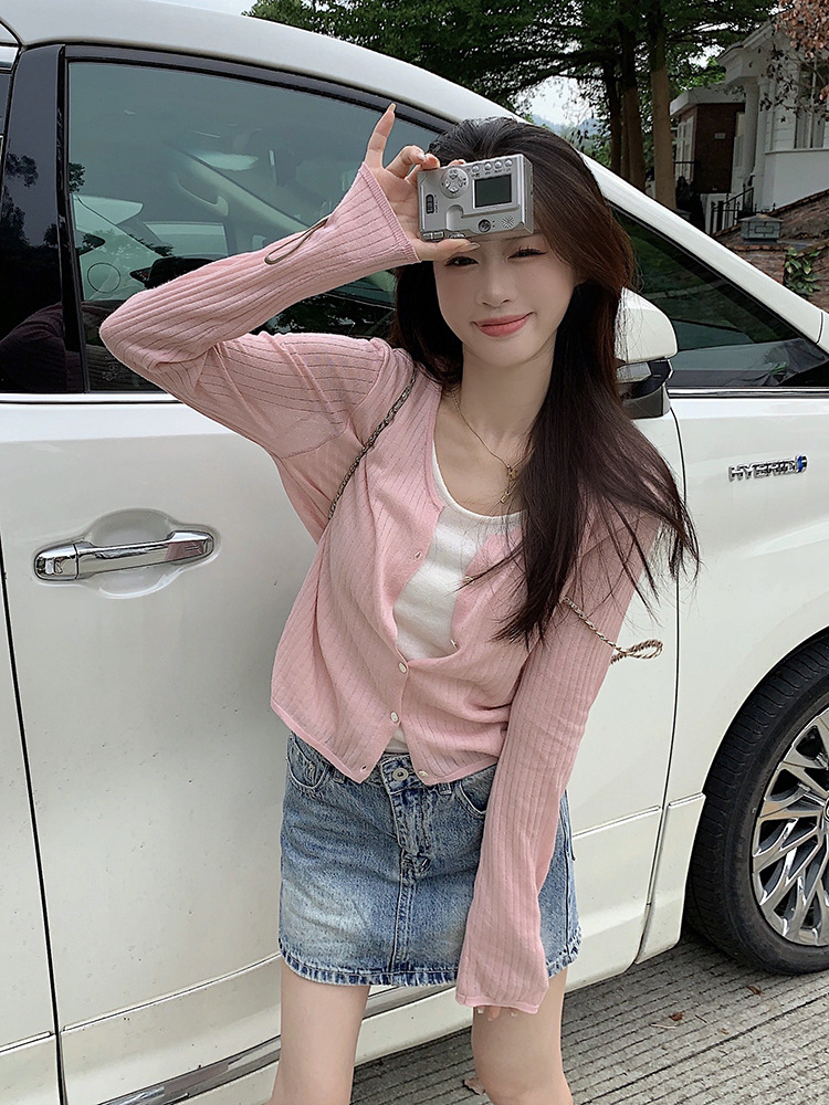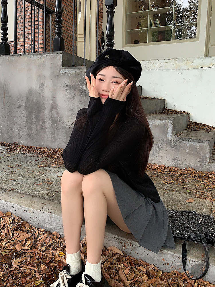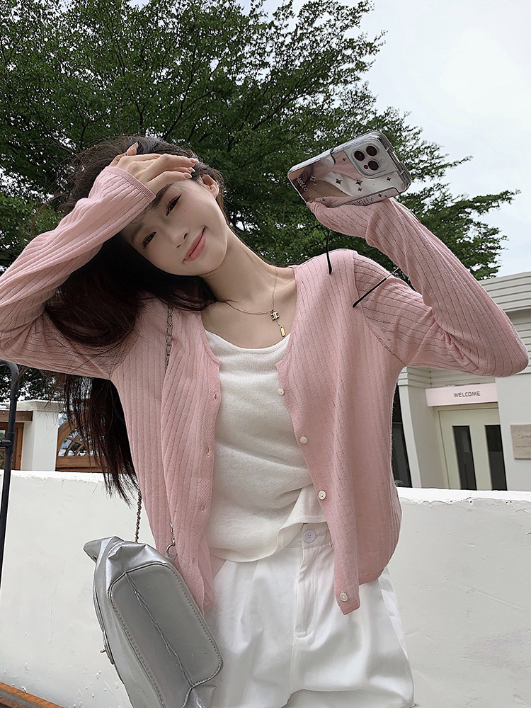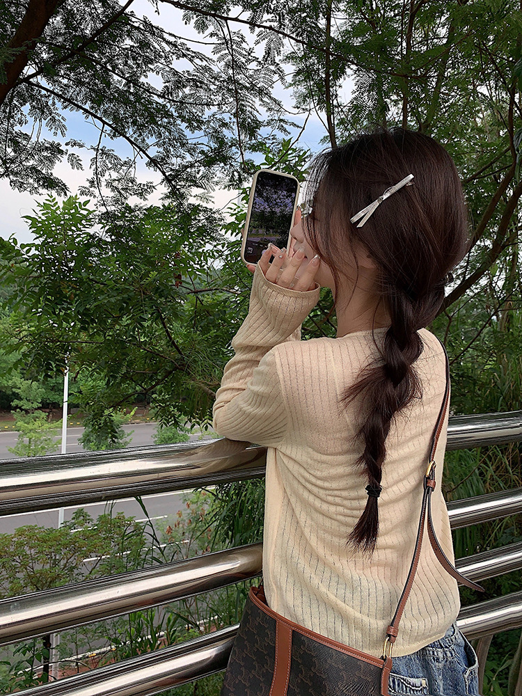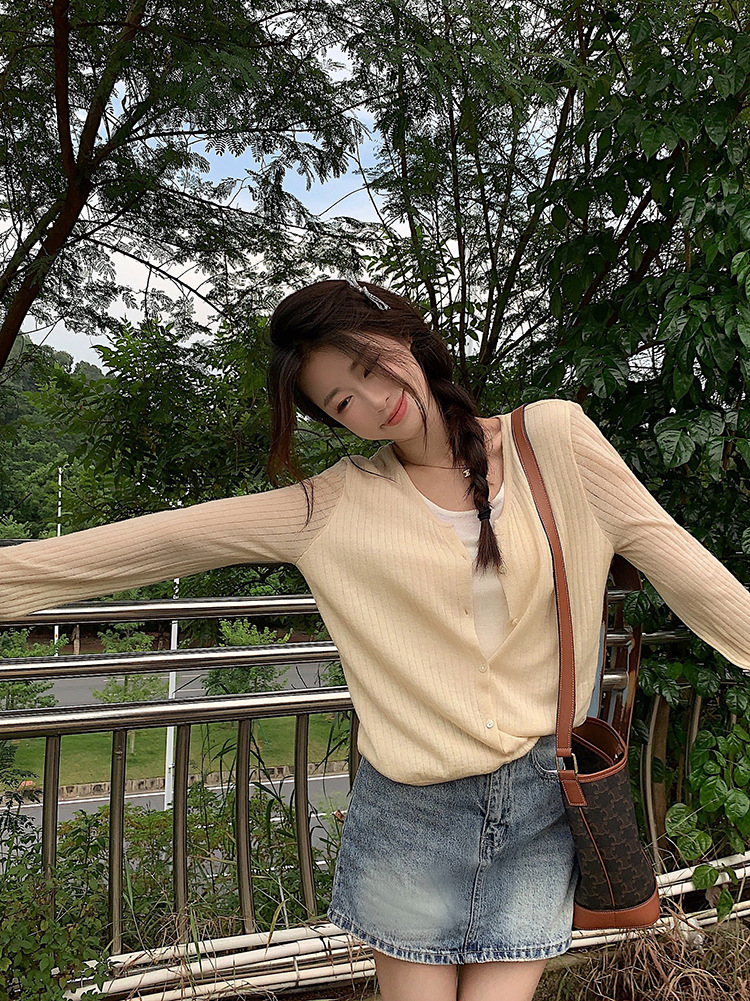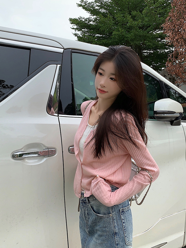 JMA-431 实拍 2023秋季新款韩版假两件拼接设计感针织开衫女叠穿长袖上衣