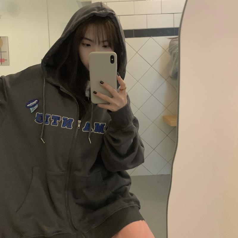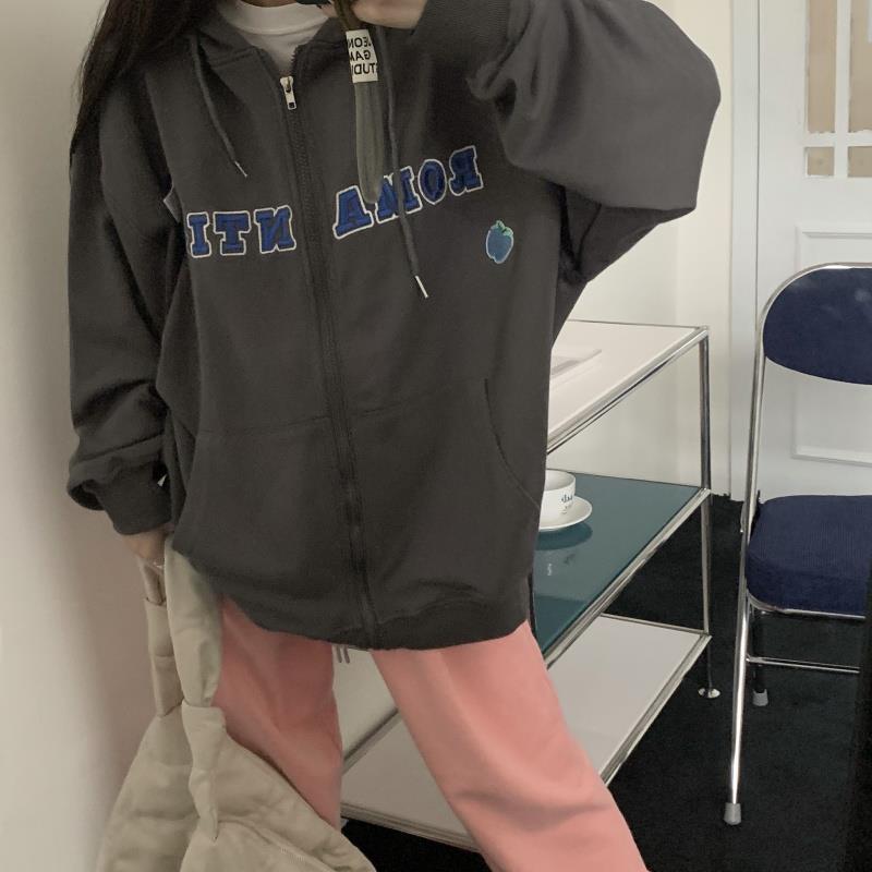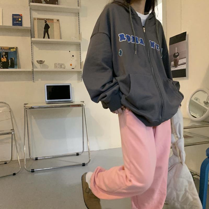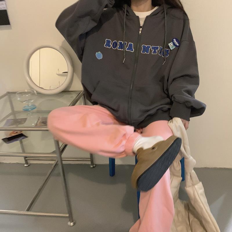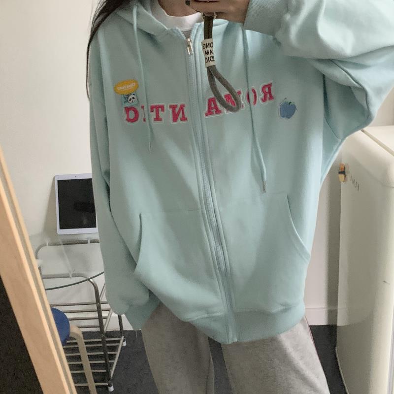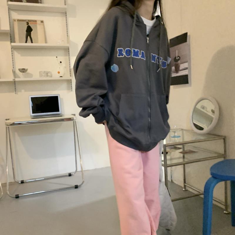 JMA-434 实拍初秋温柔风连帽卫衣外套女2023秋季新款宽松长袖拉链开衫上衣