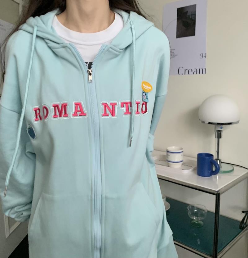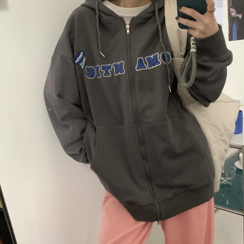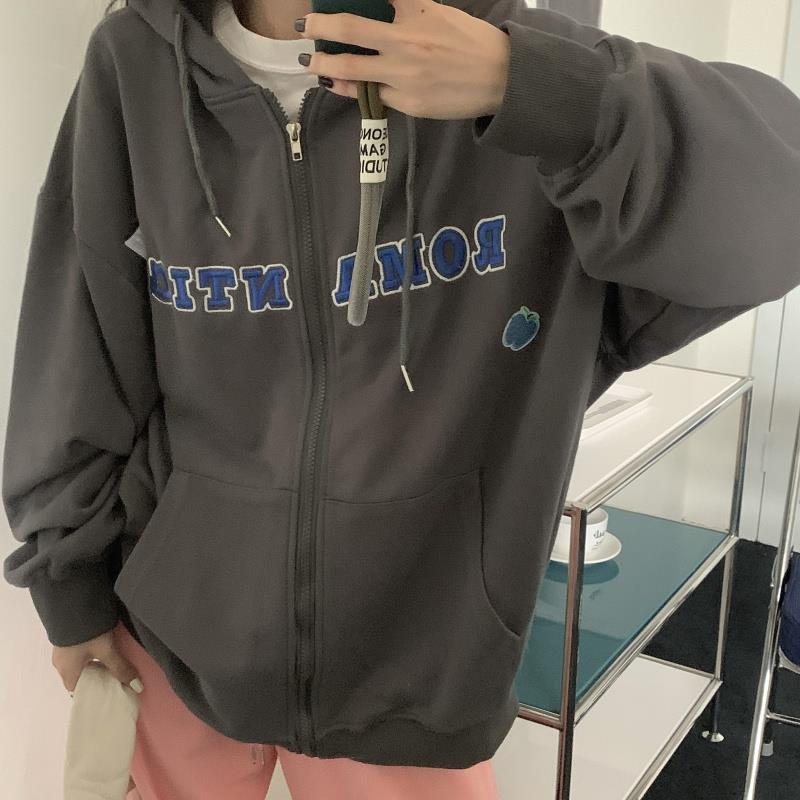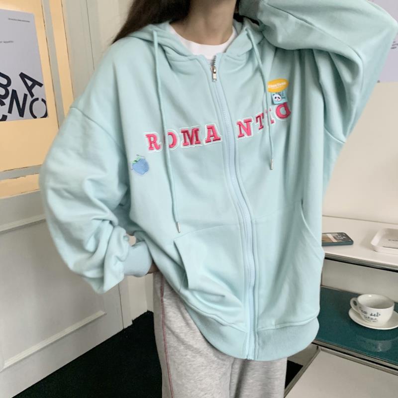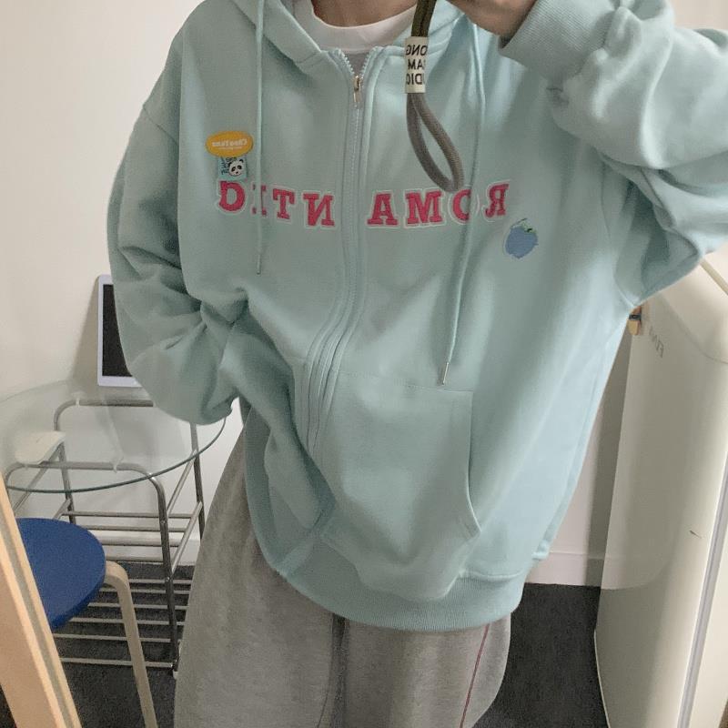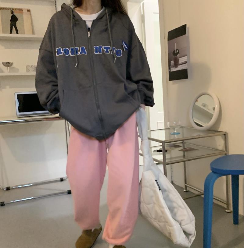 JMA-434 实拍初秋温柔风连帽卫衣外套女2023秋季新款宽松长袖拉链开衫上衣