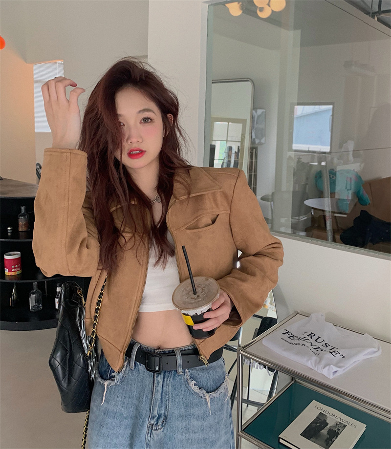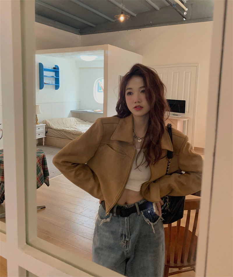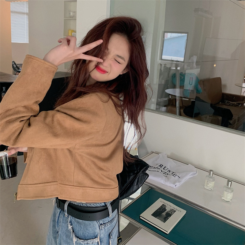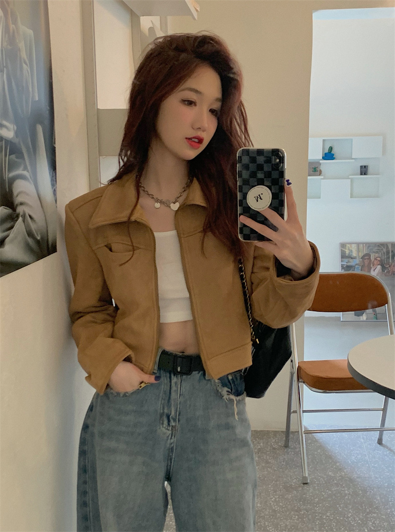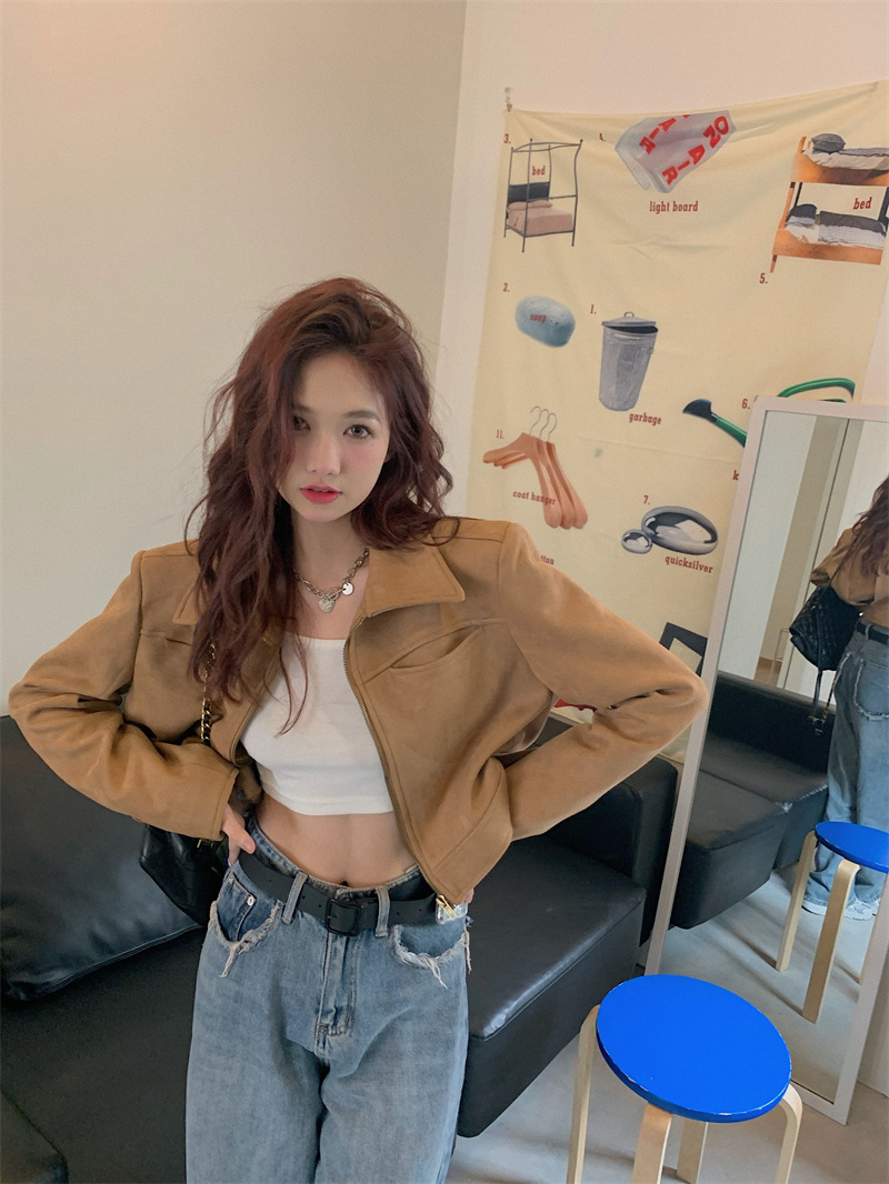 JMA-438 实拍 2023秋季新款韩版气质百搭修身短款翻领拉链夹克外套女上衣