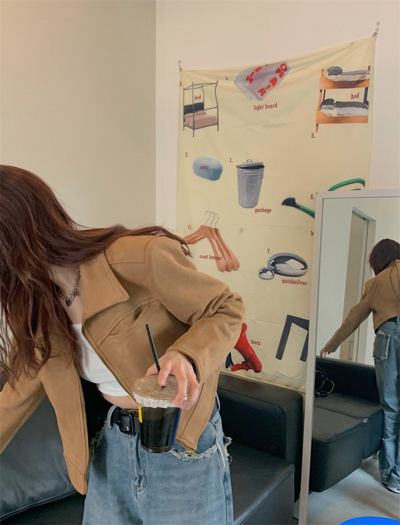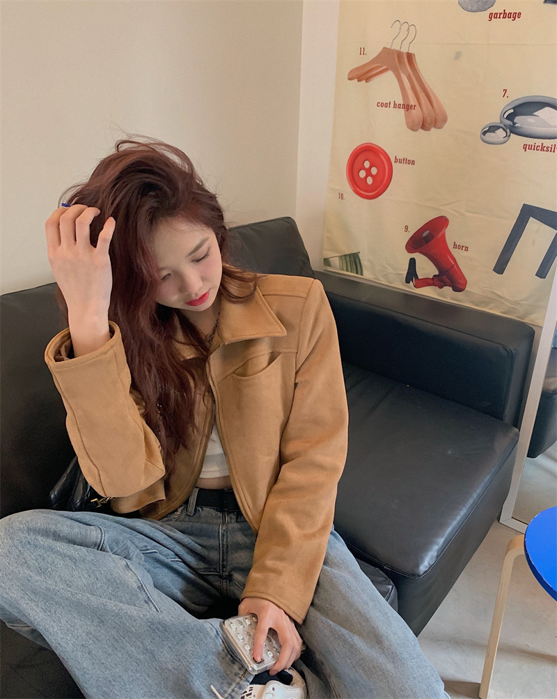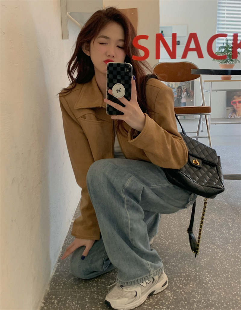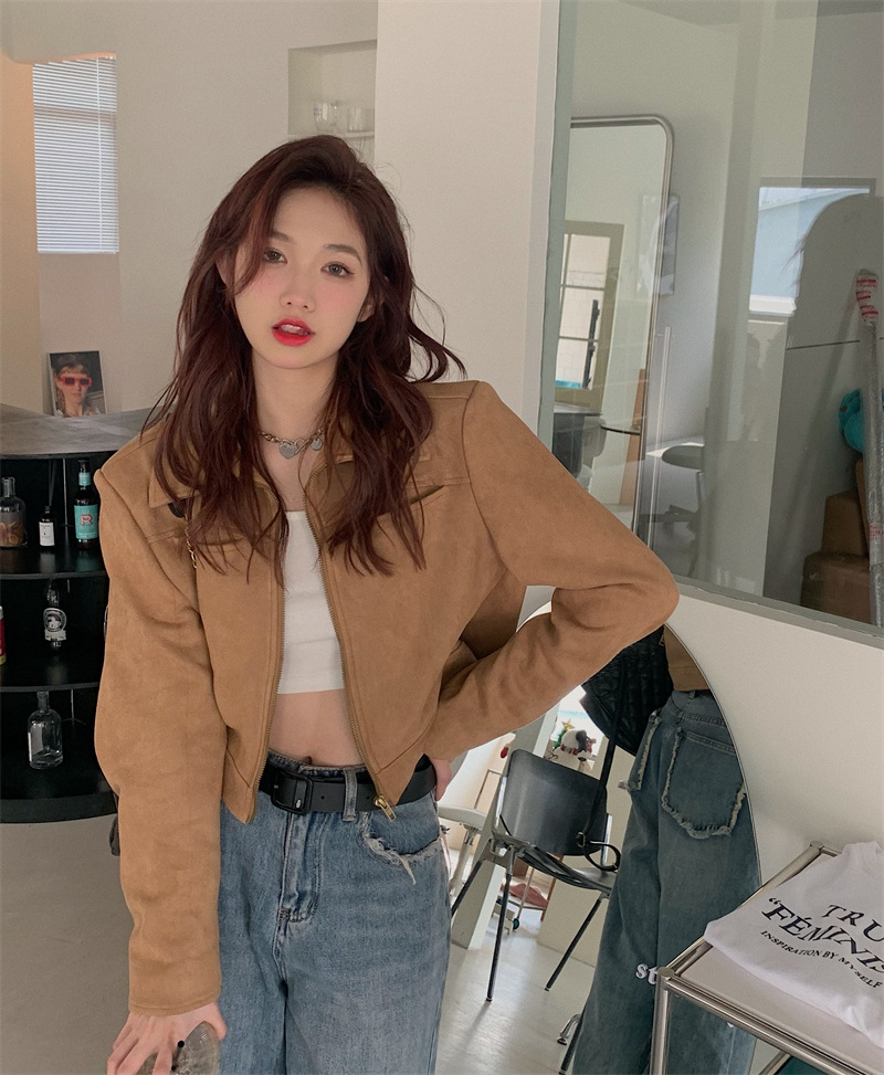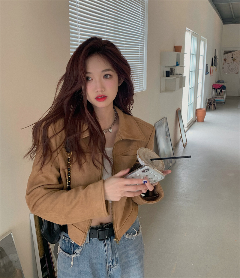 JMA-438 实拍 2023秋季新款韩版气质百搭修身短款翻领拉链夹克外套女上衣