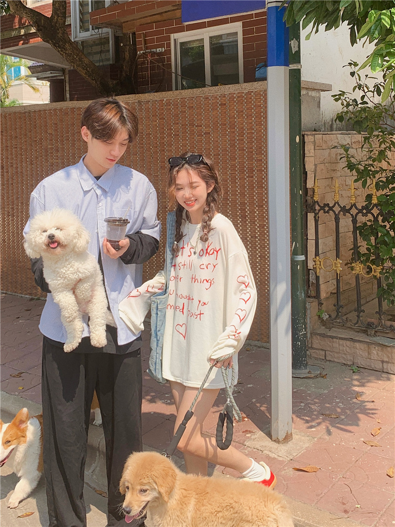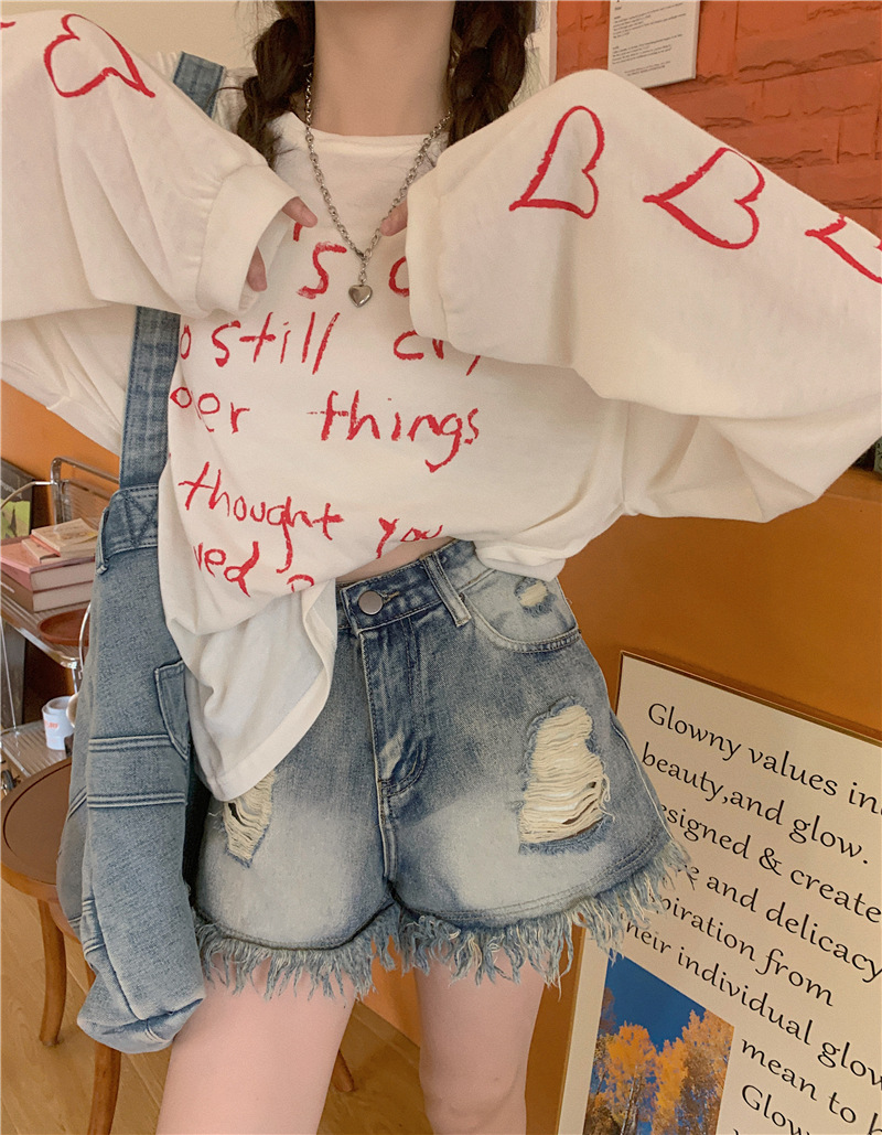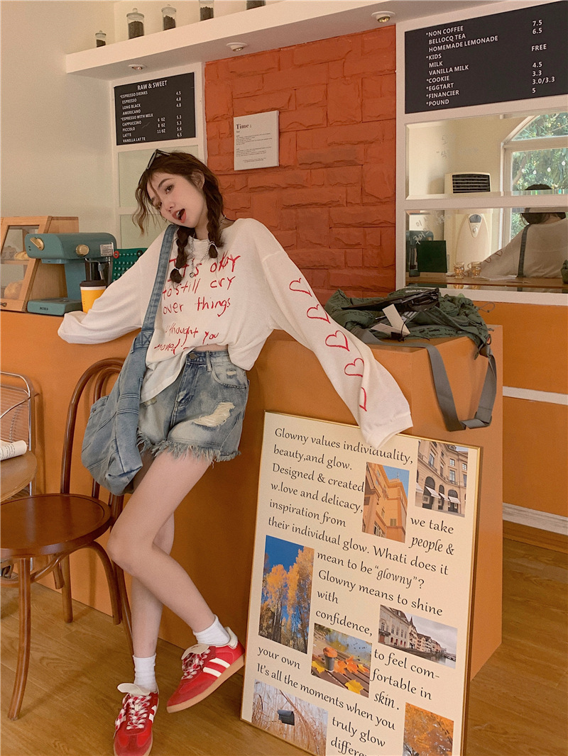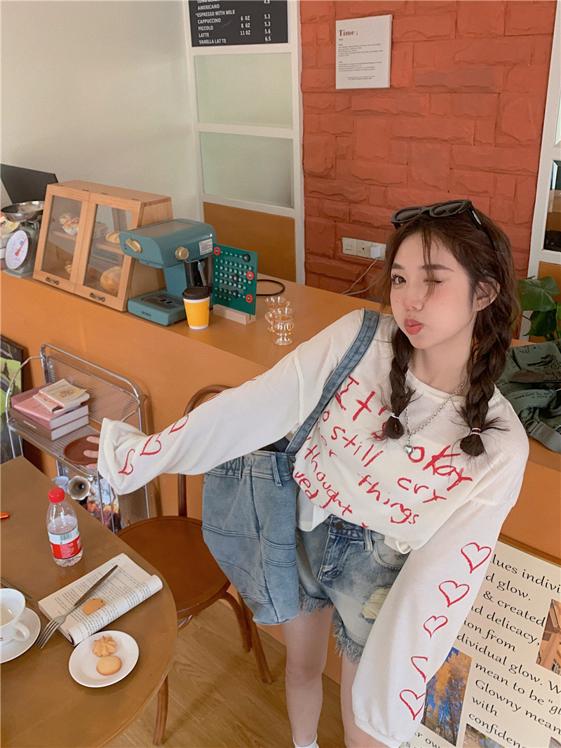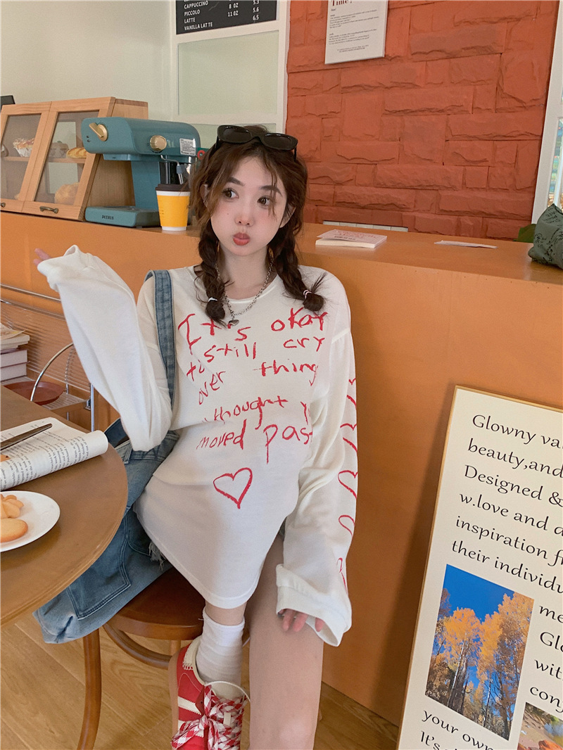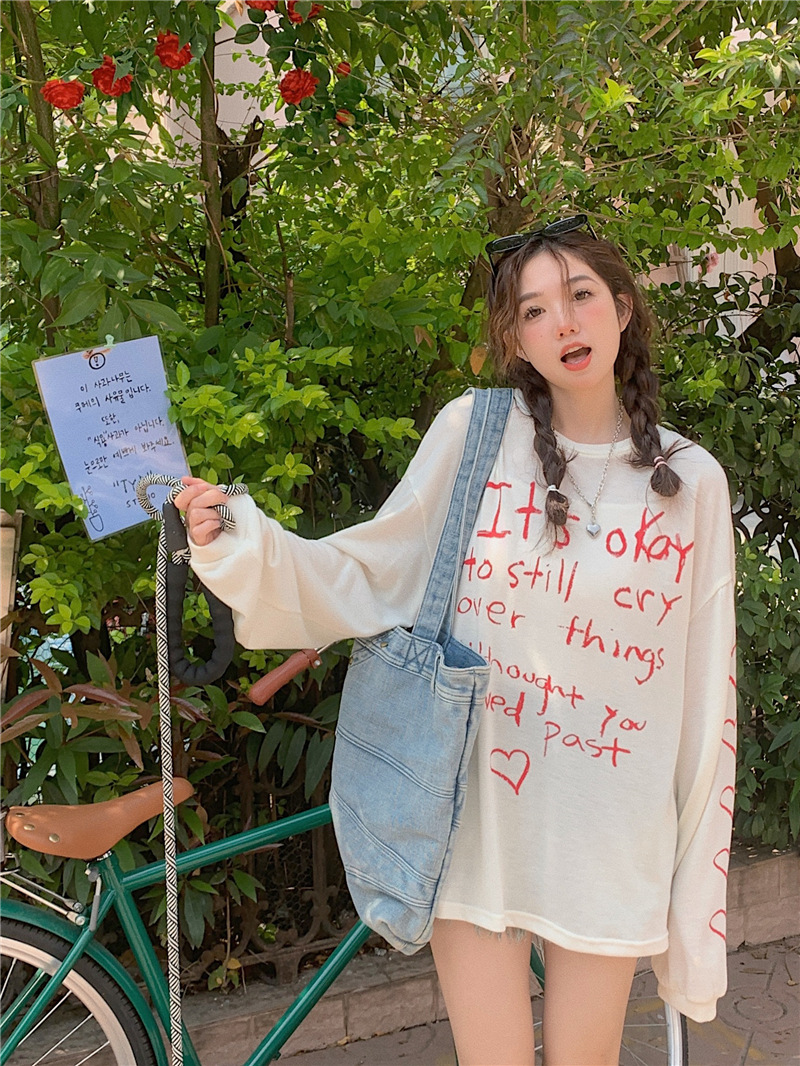 JMA-439 实拍 字母印花长袖T恤女2023春秋慵懒风宽松显瘦休闲百搭圆领上衣
