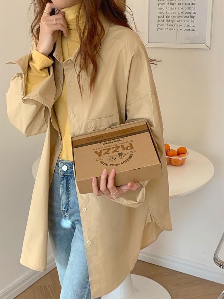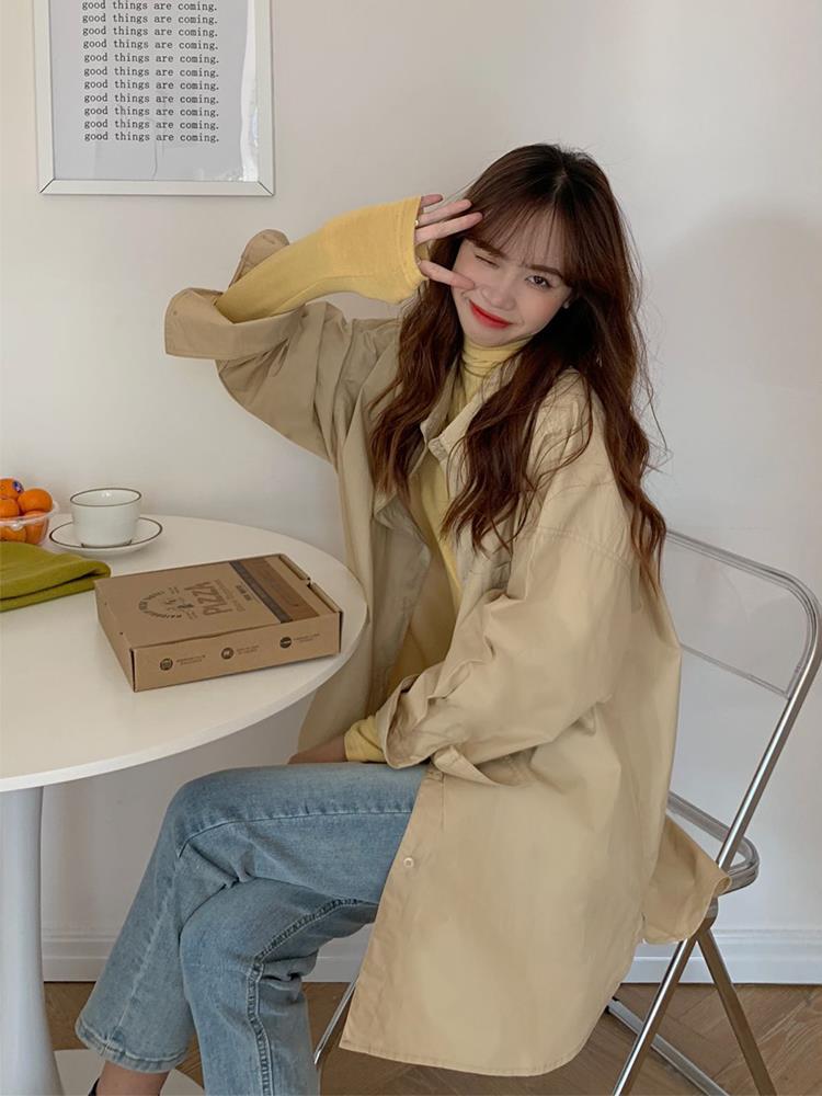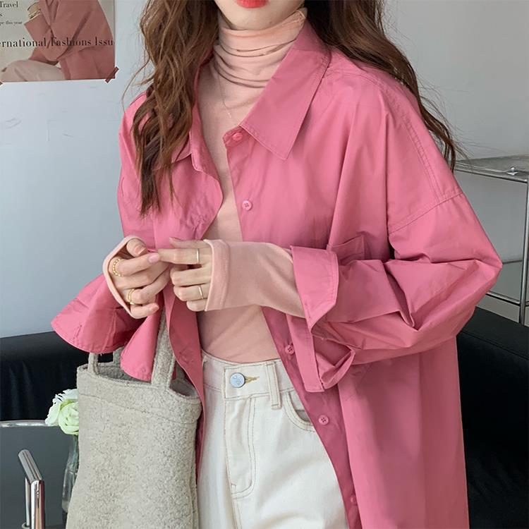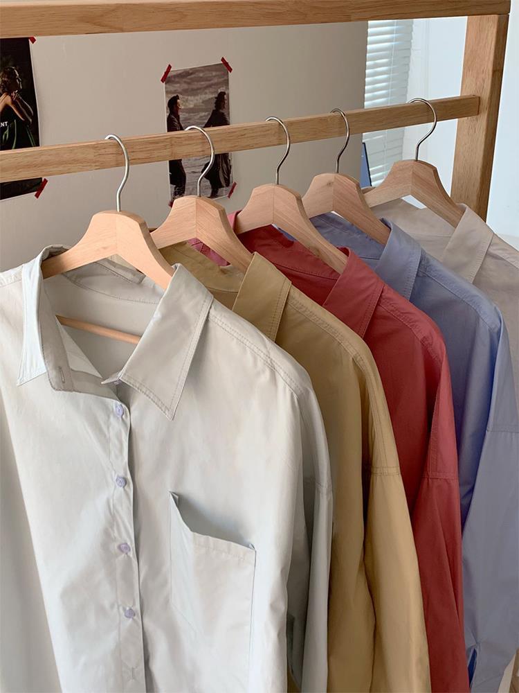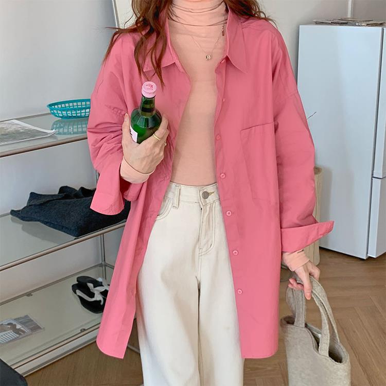 JMA-448 实拍 2023初秋季韩系列chic百搭多巴胺中长款休闲纯色长袖衬衫女