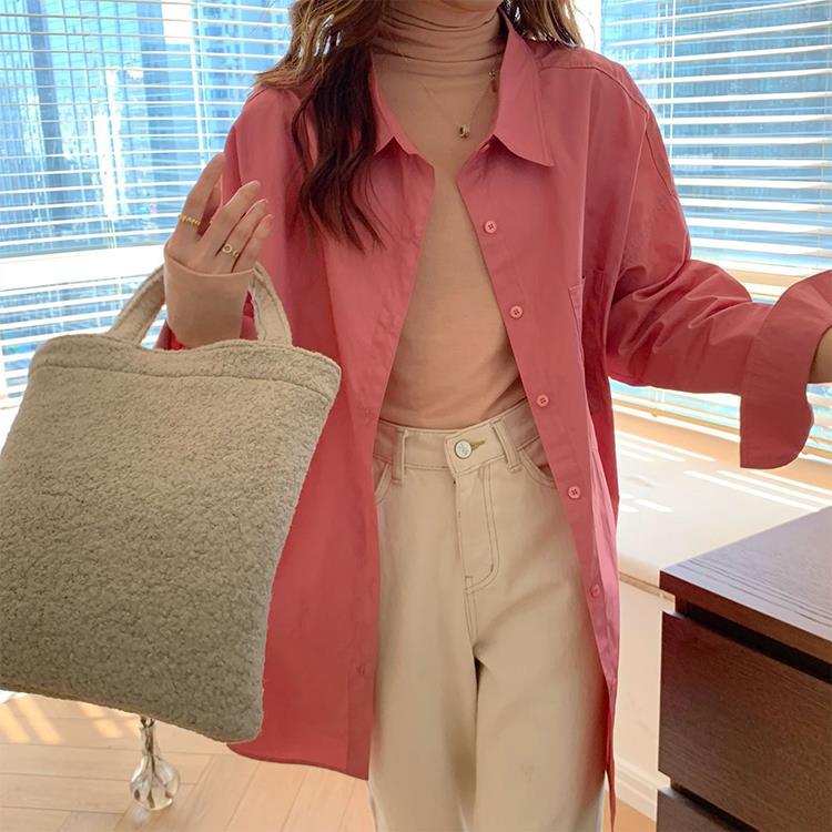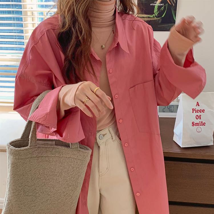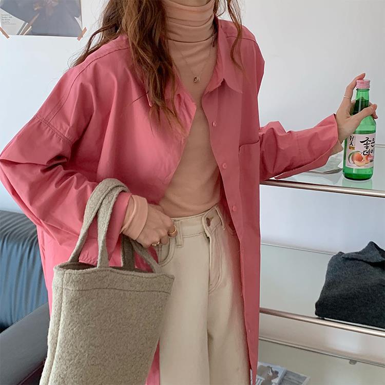 • 將圖片載入圖庫檢視器 JMA-448 实拍 2023初秋季韩系列chic百搭多巴胺中长款休闲纯色长袖衬衫女