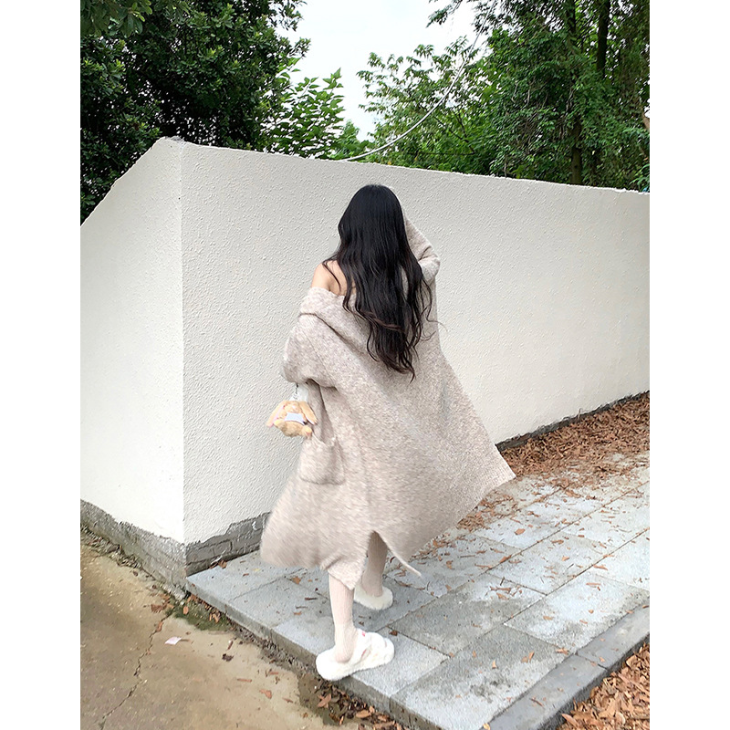 JMA-449 实拍 秋中长款软糯针织开衫宽松慵懒毛衣外套风衣+显瘦吊带连衣裙