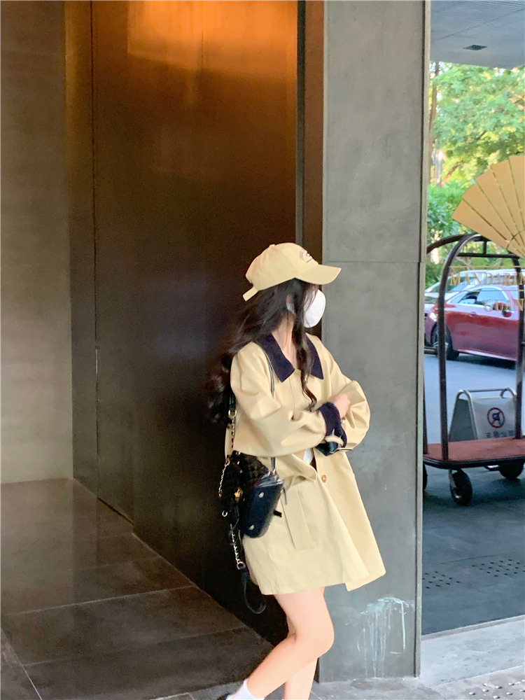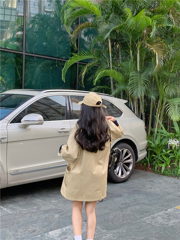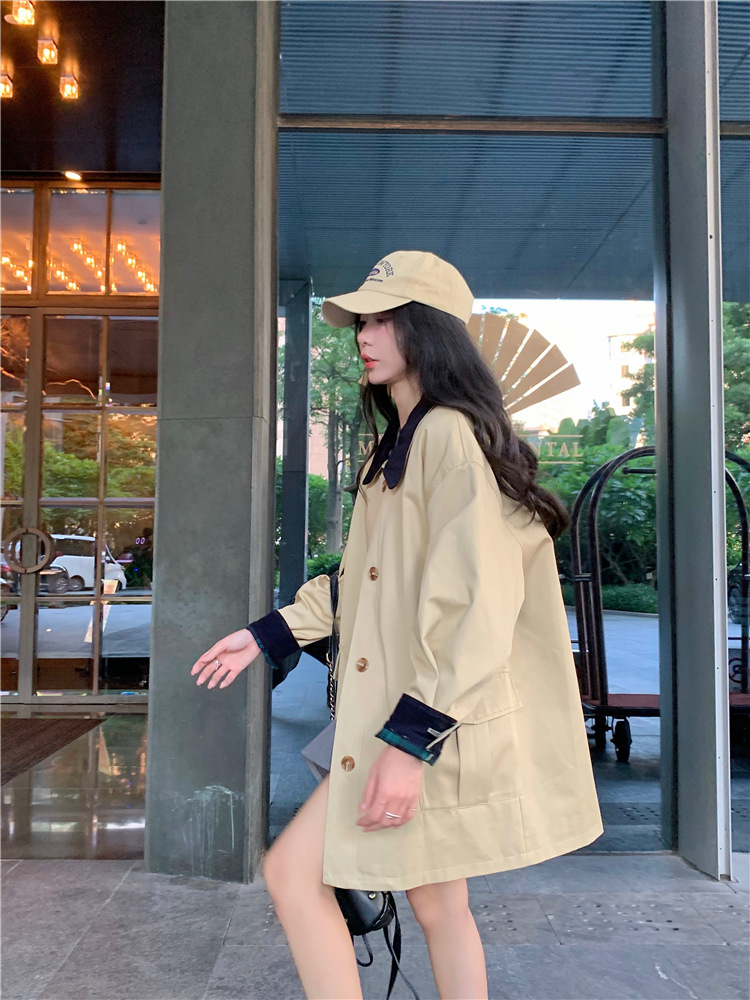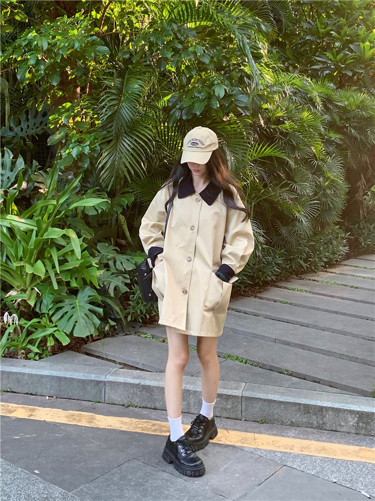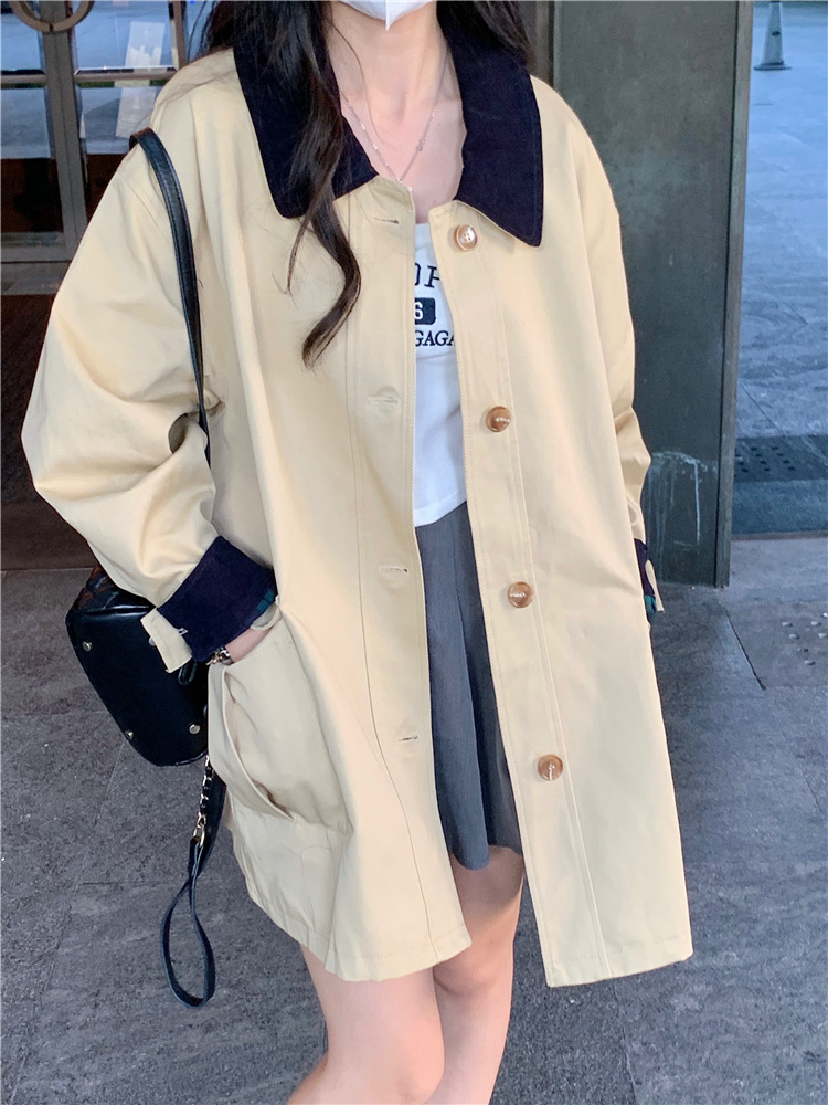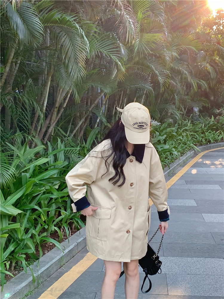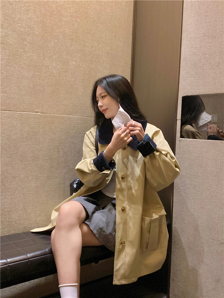JMA-456 实拍小个子浅卡其风衣女秋季拼接撞色百搭宽松中长款休闲风衣外套