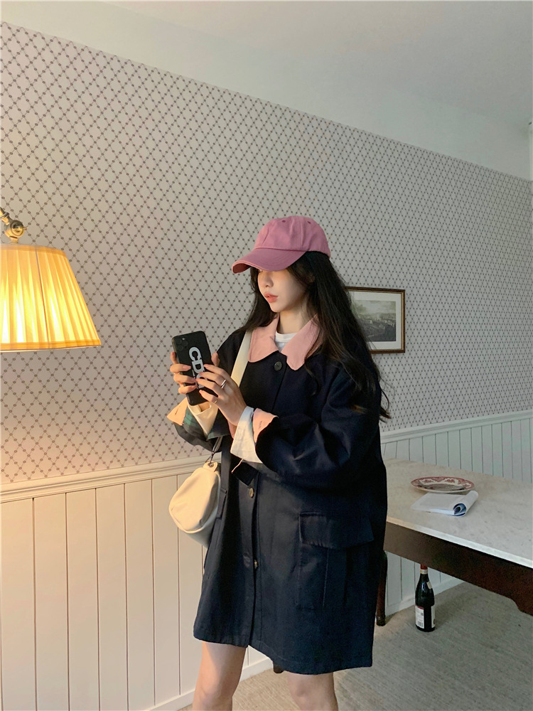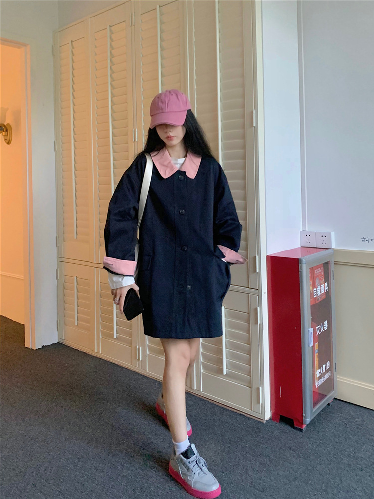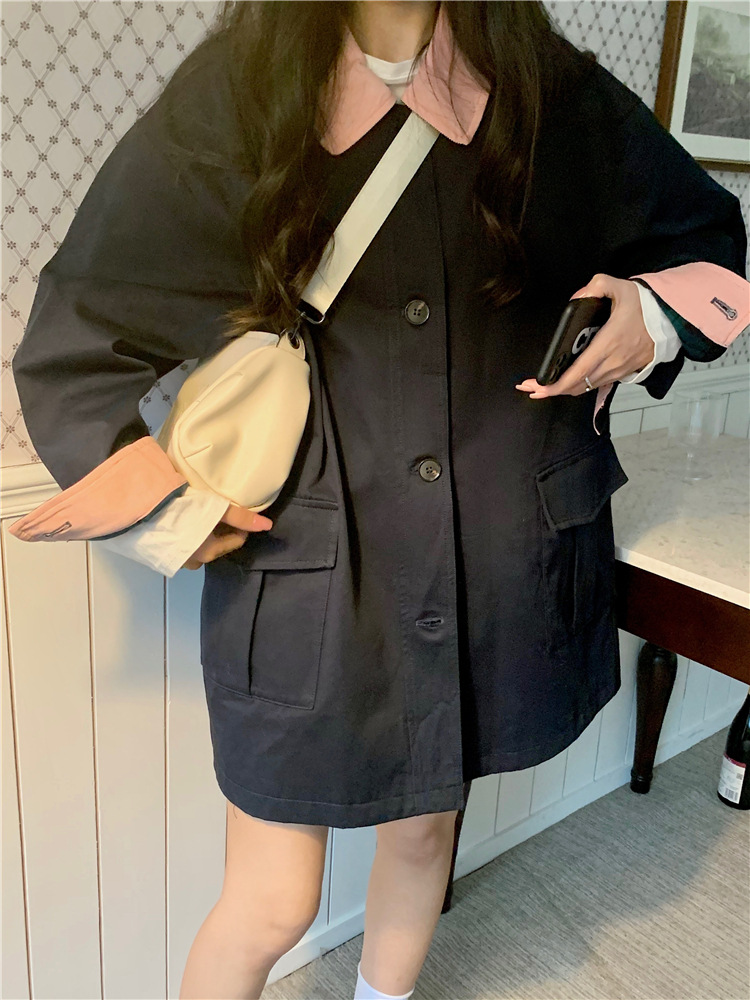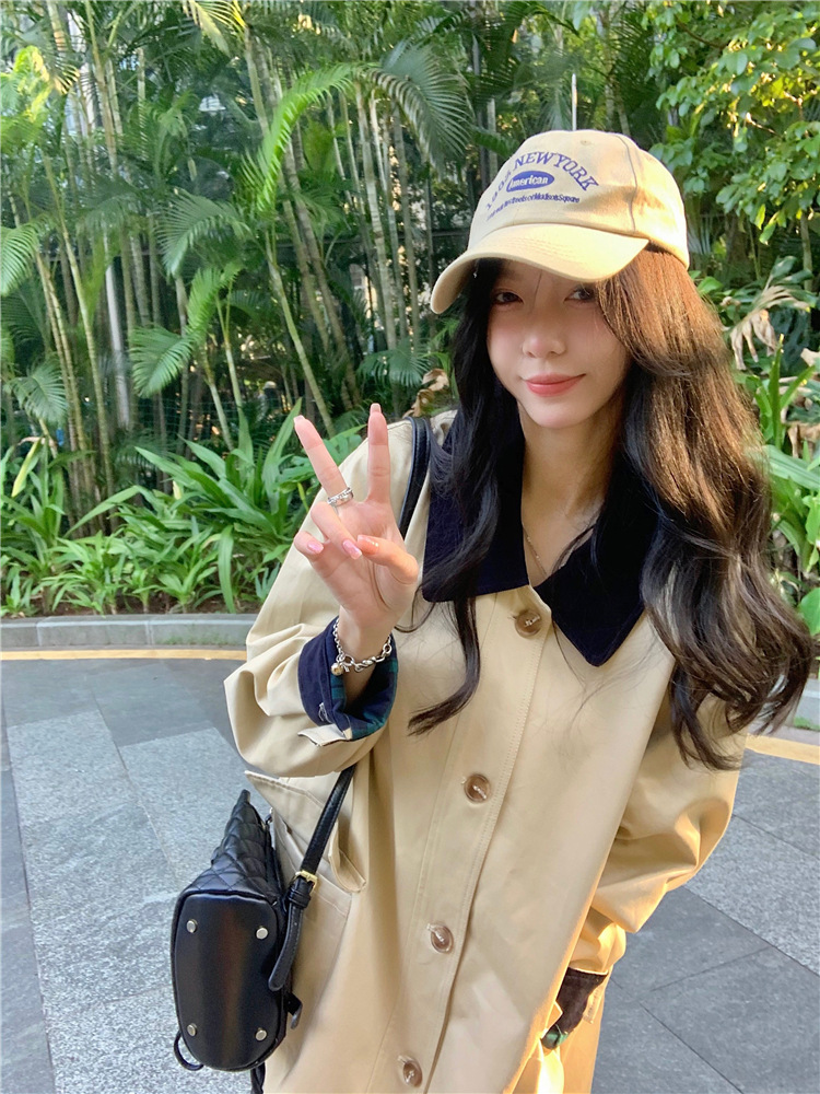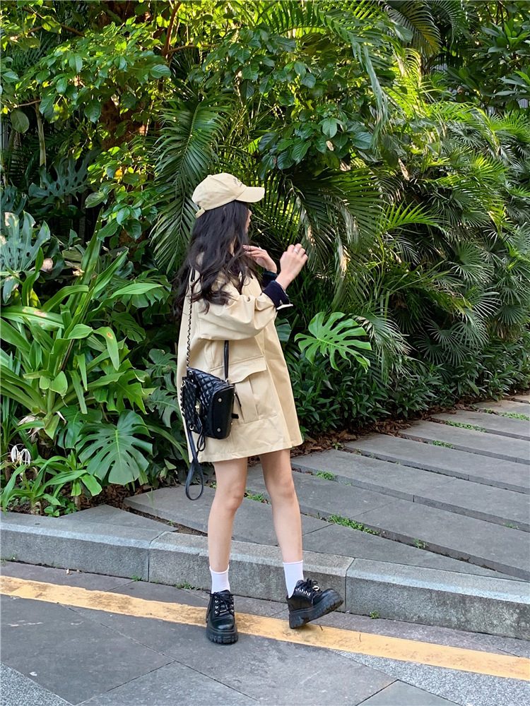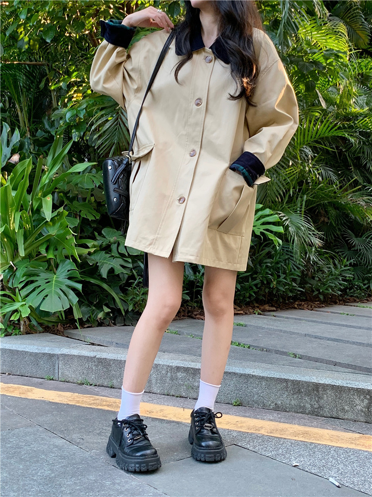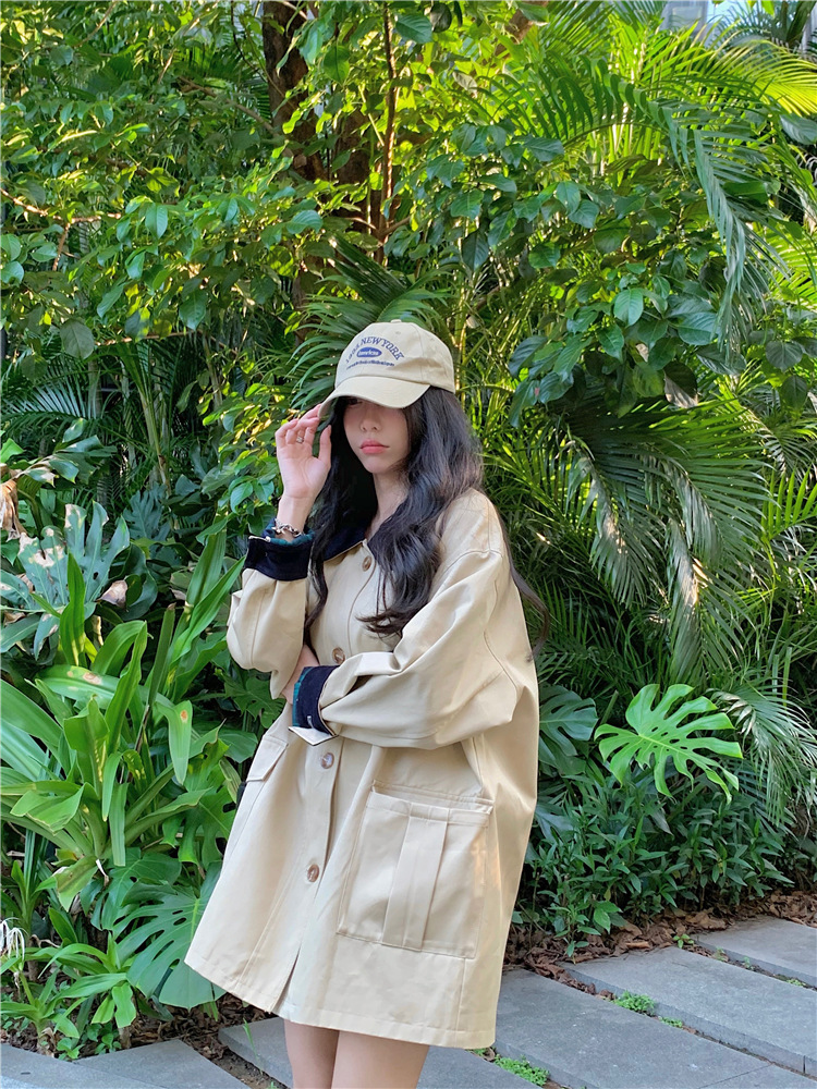JMA-456 实拍小个子浅卡其风衣女秋季拼接撞色百搭宽松中长款休闲风衣外套