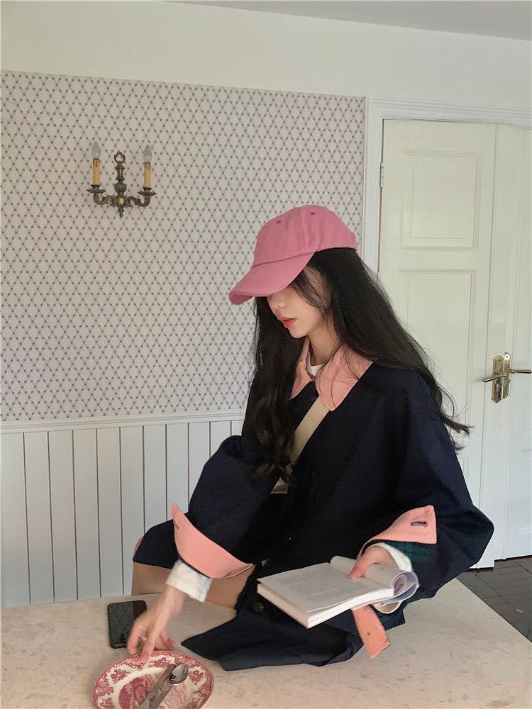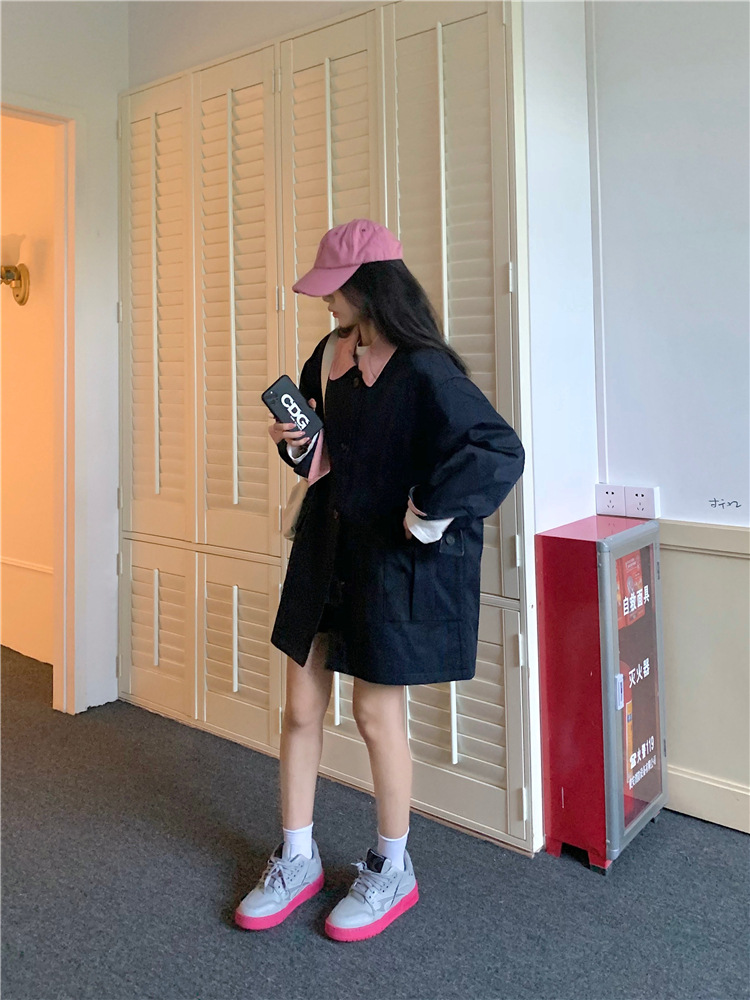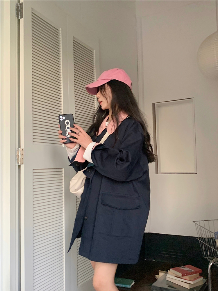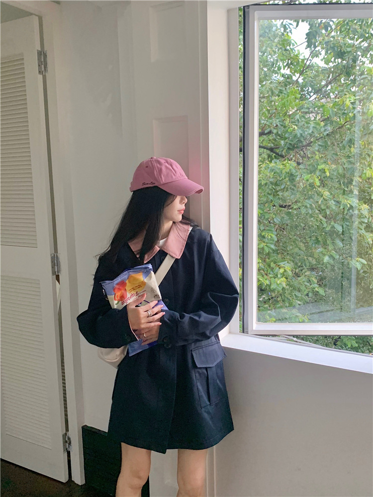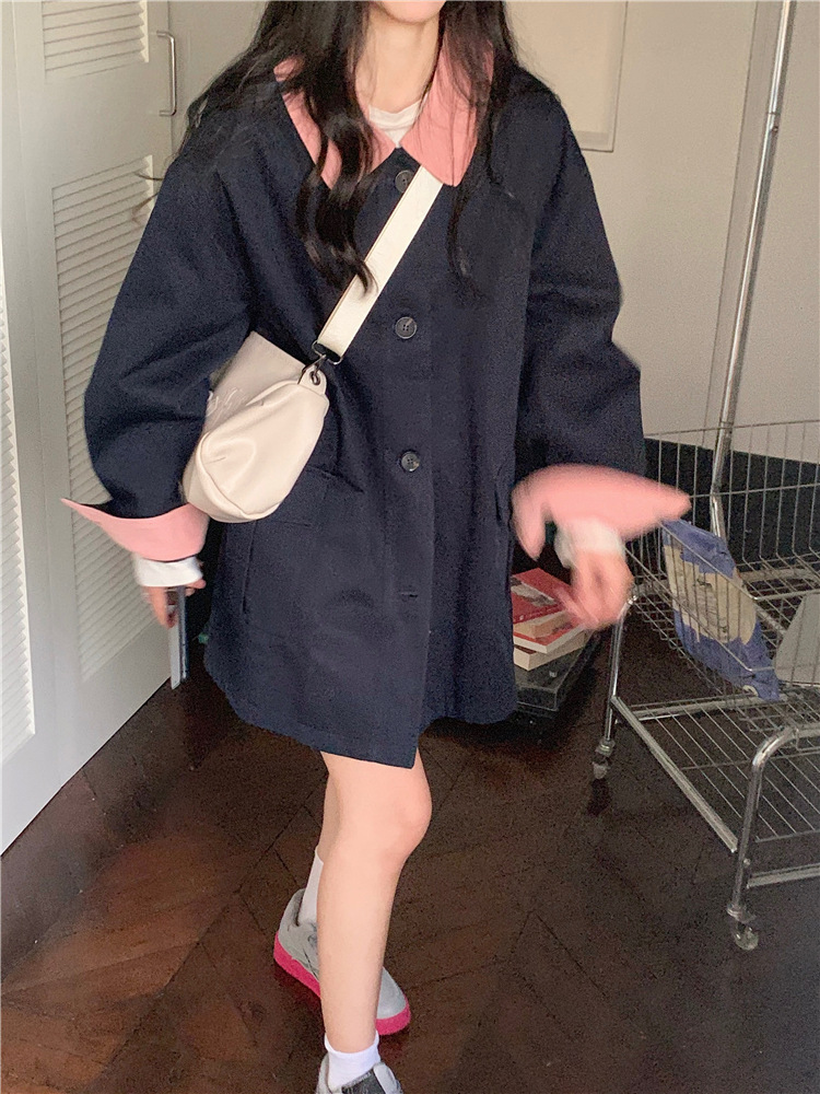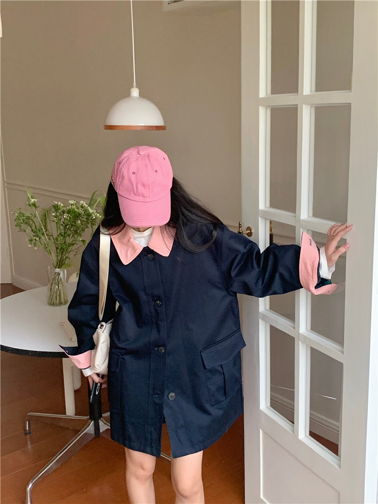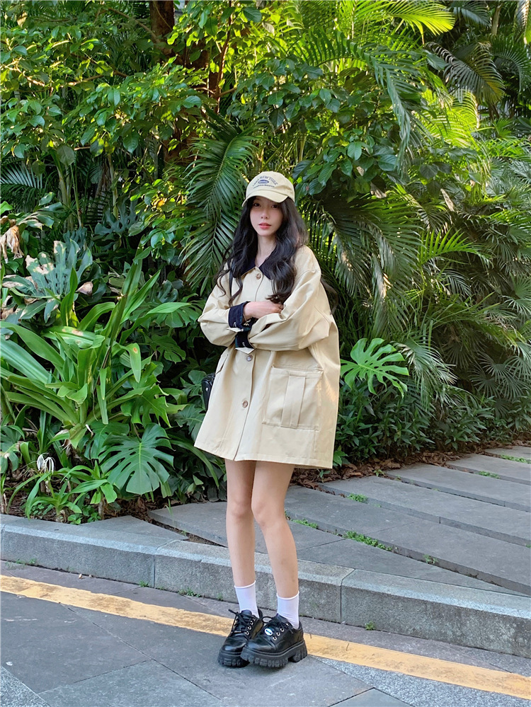 JMA-456 实拍小个子浅卡其风衣女秋季拼接撞色百搭宽松中长款休闲风衣外套