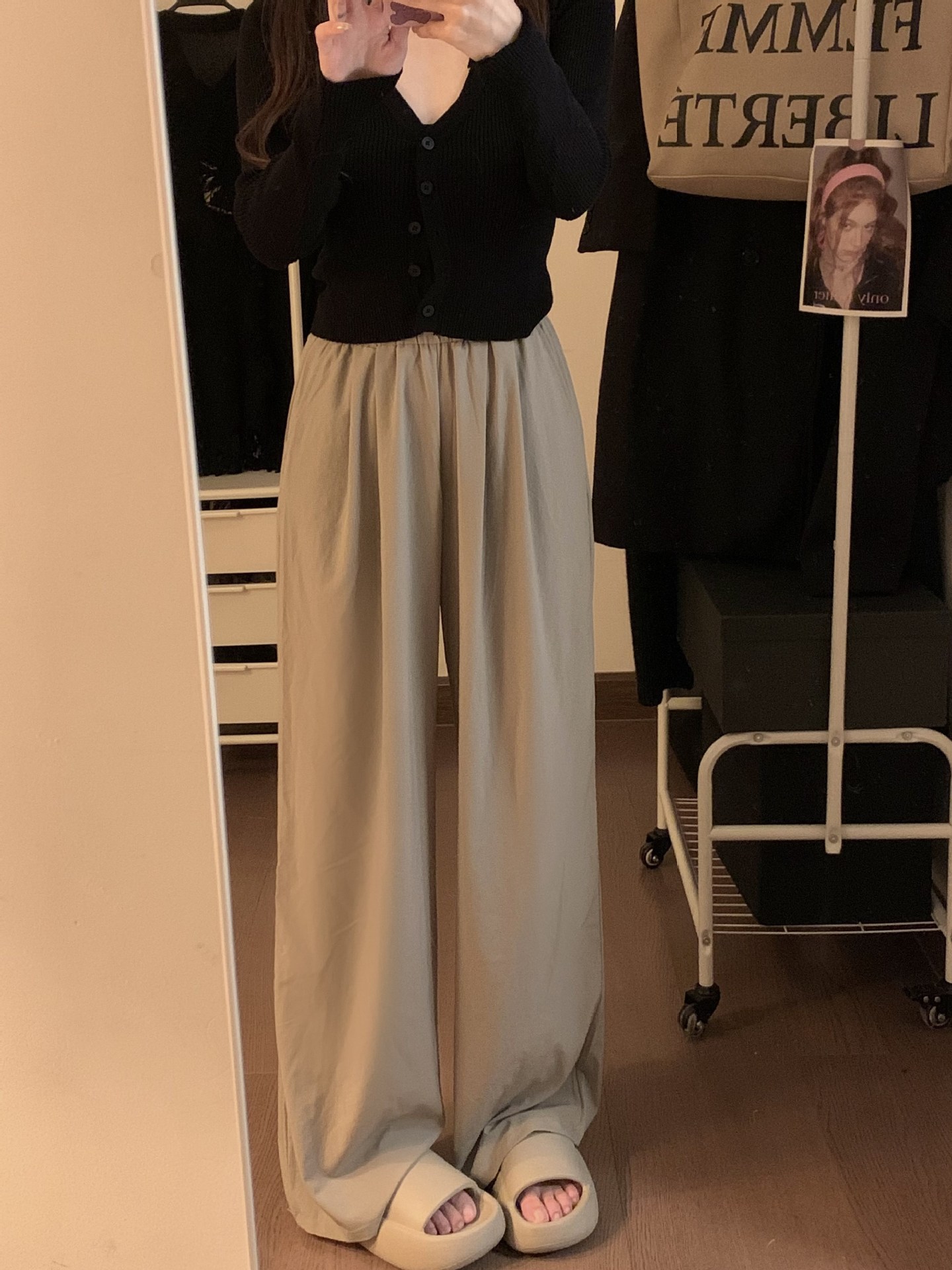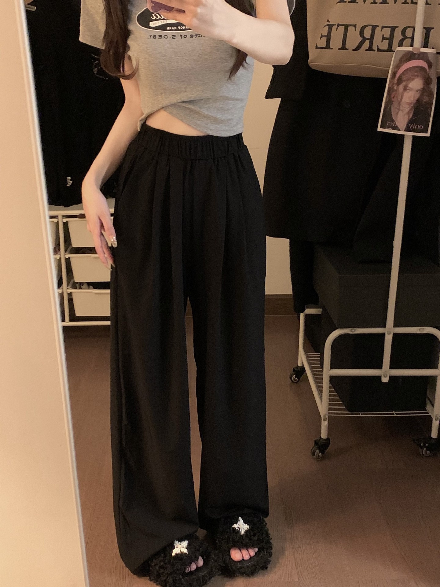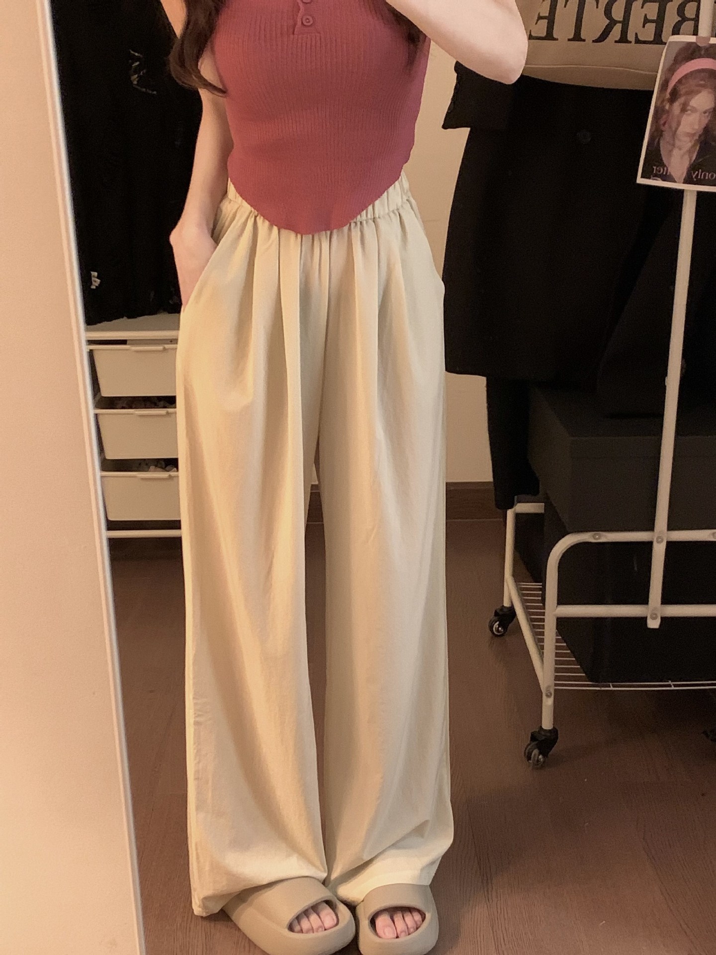JMA-461 实拍2023夏季薄款面膜裤休闲宽松阔腿裤女松紧腰高腰显瘦直筒长裤