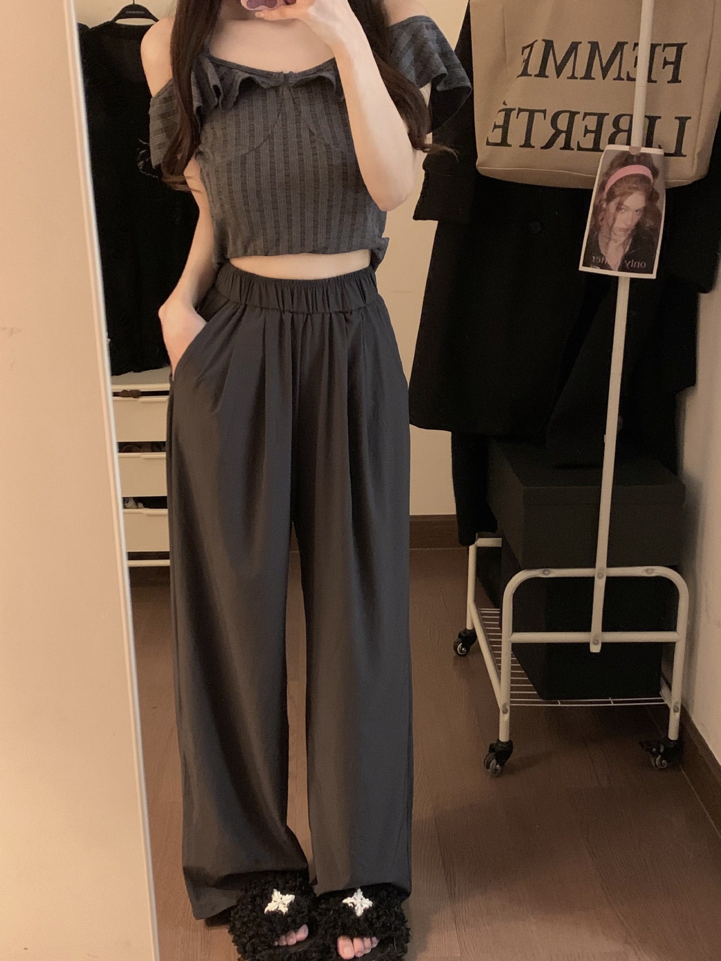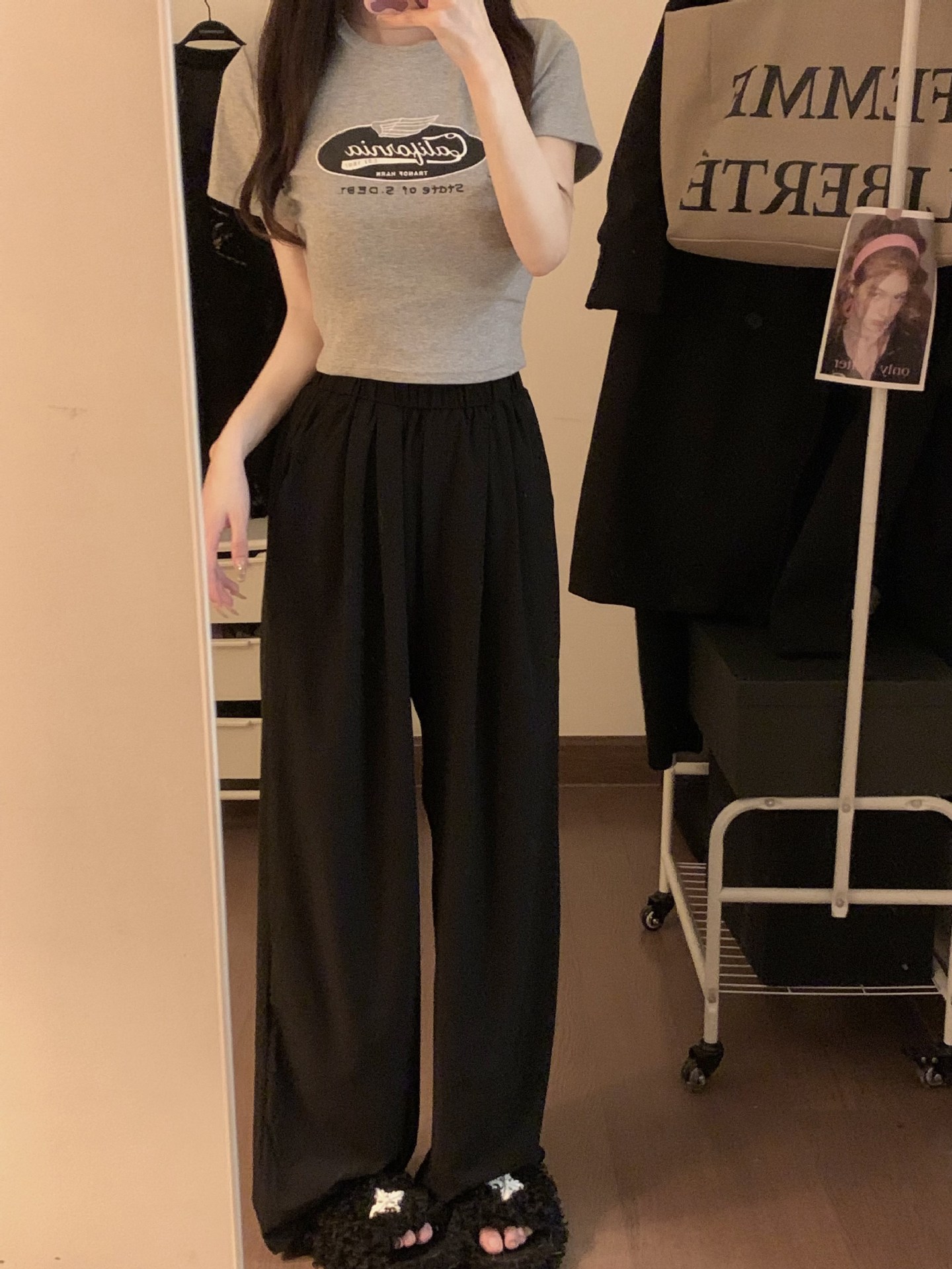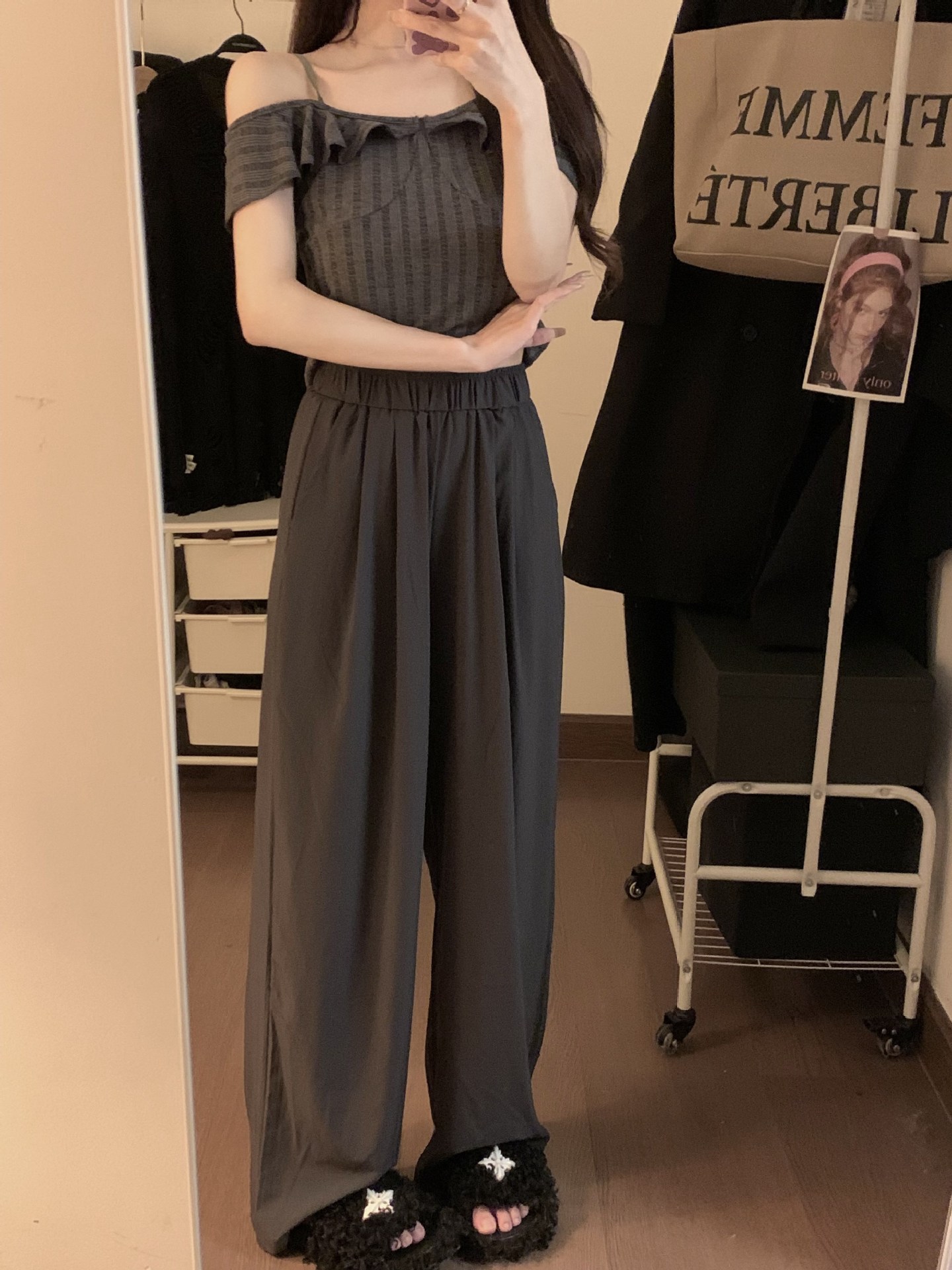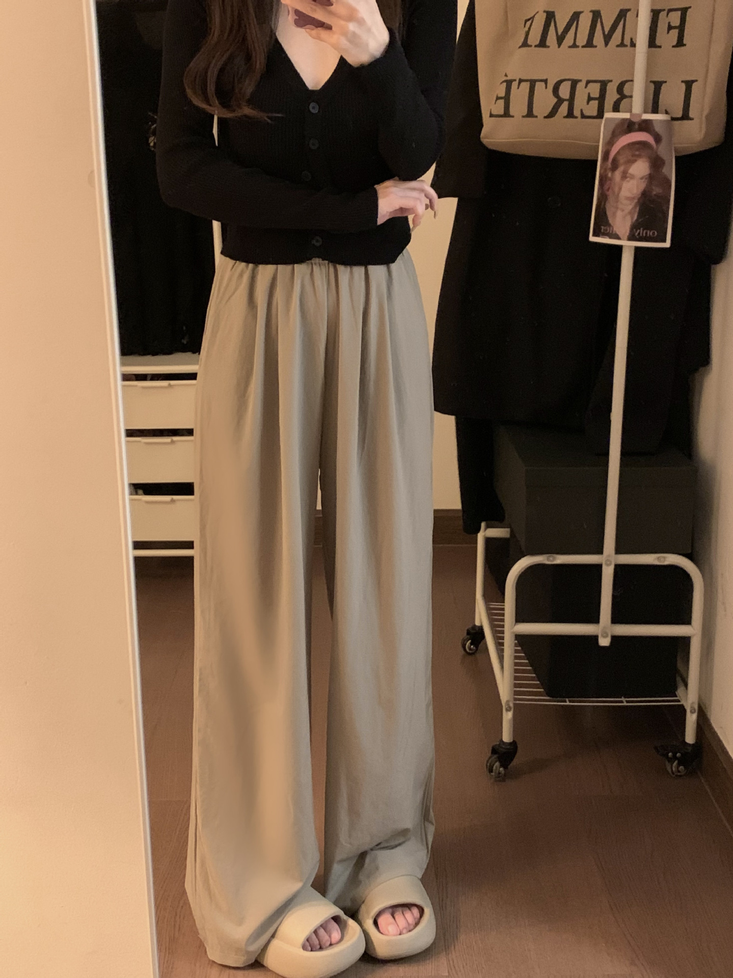 JMA-461 实拍2023夏季薄款面膜裤休闲宽松阔腿裤女松紧腰高腰显瘦直筒长裤