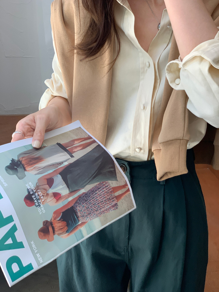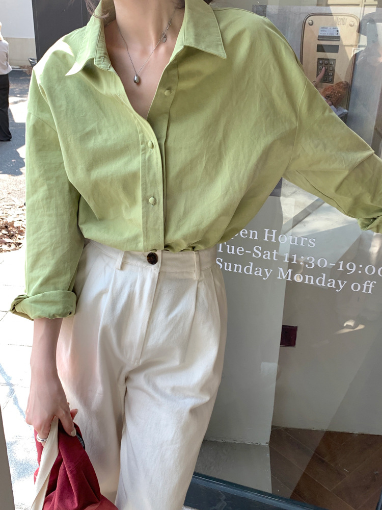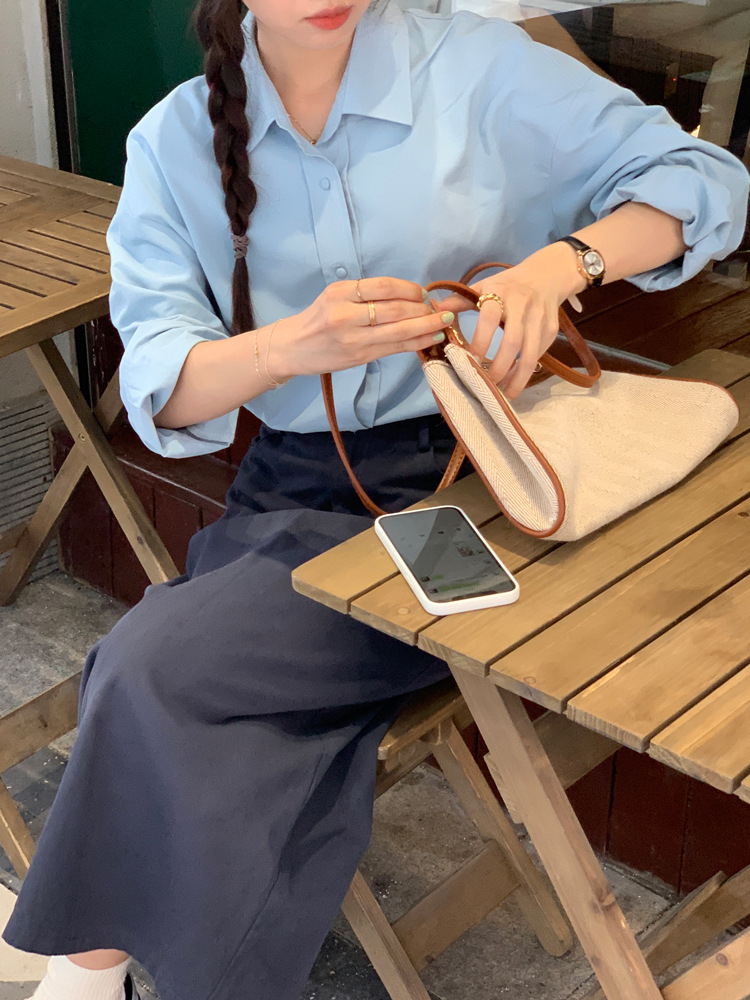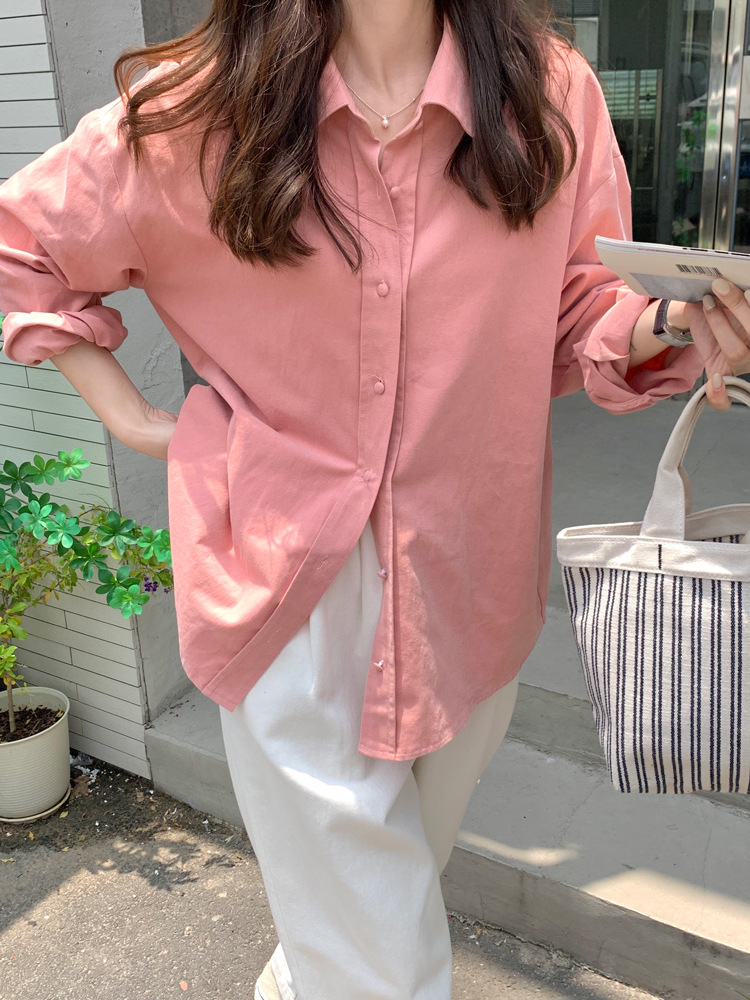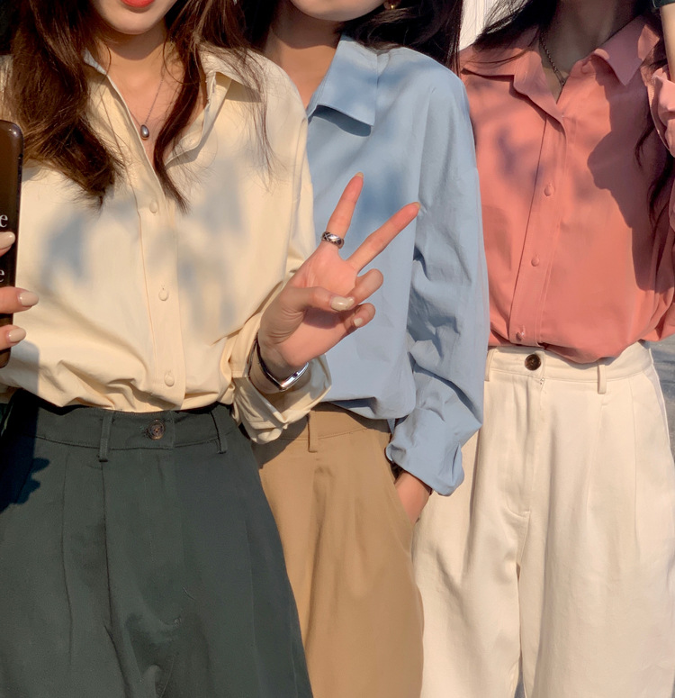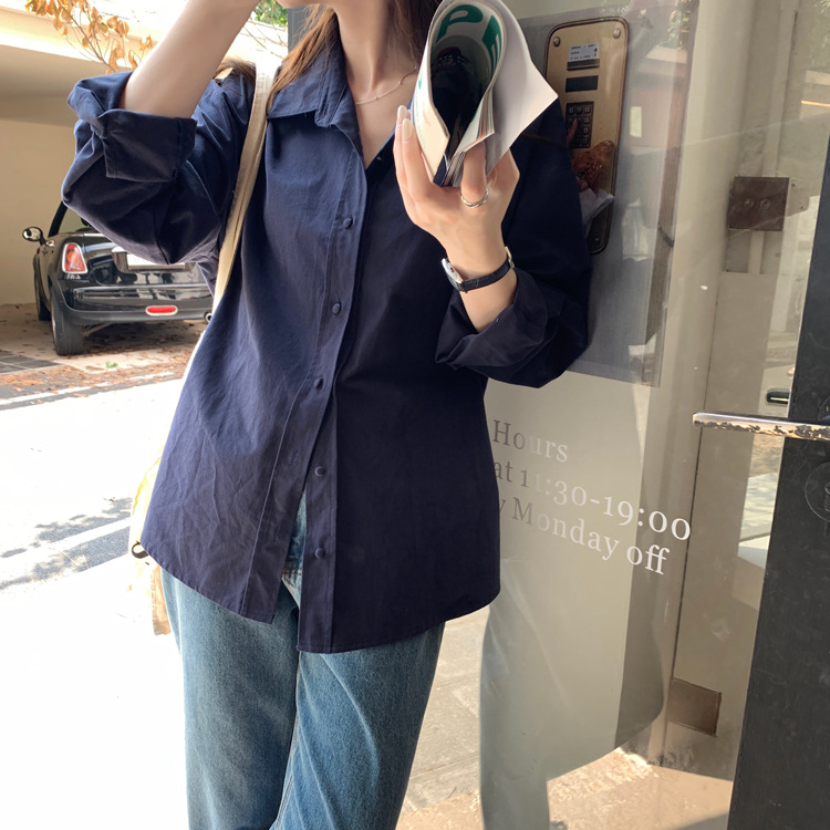 JMA-468 实拍长袖衬衫女2023春季纯色百搭宽松衬衣设计感小众chic休闲上衣