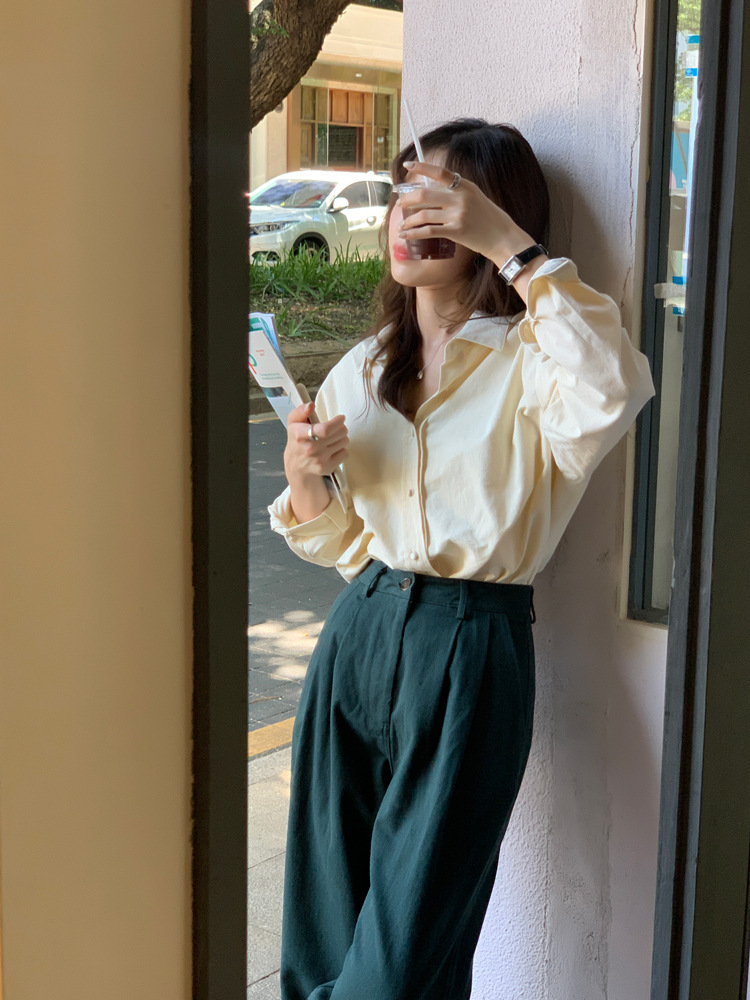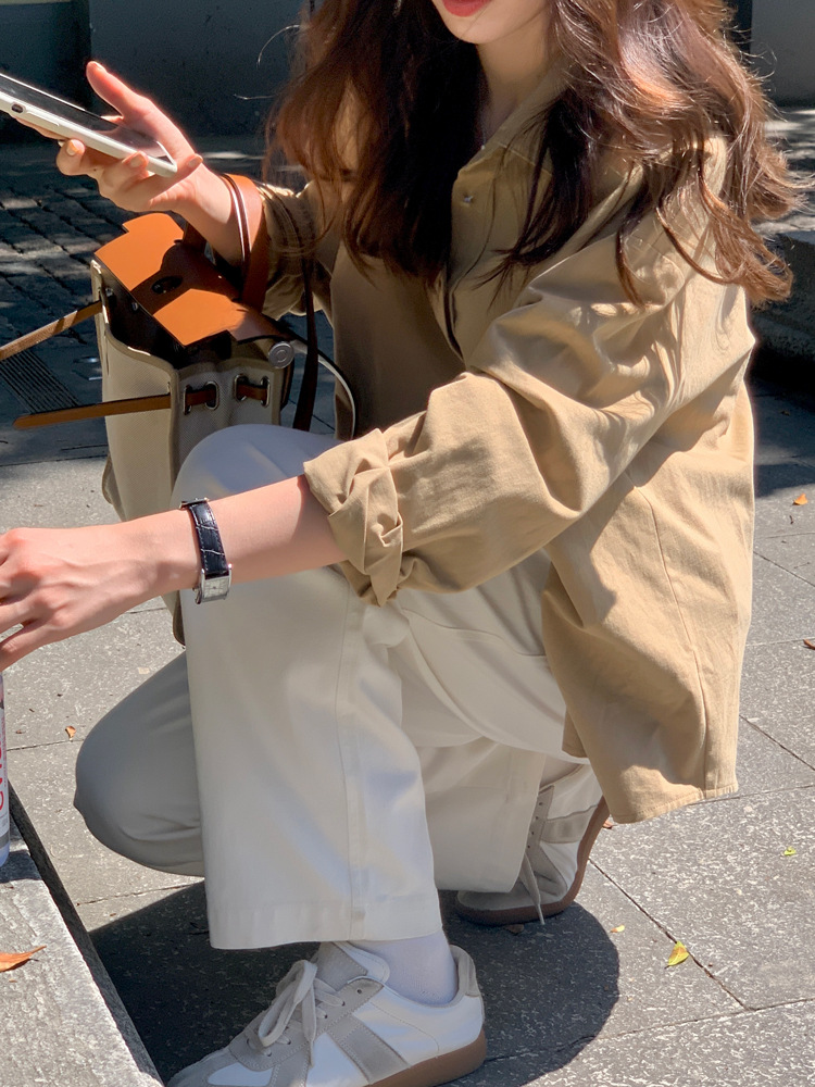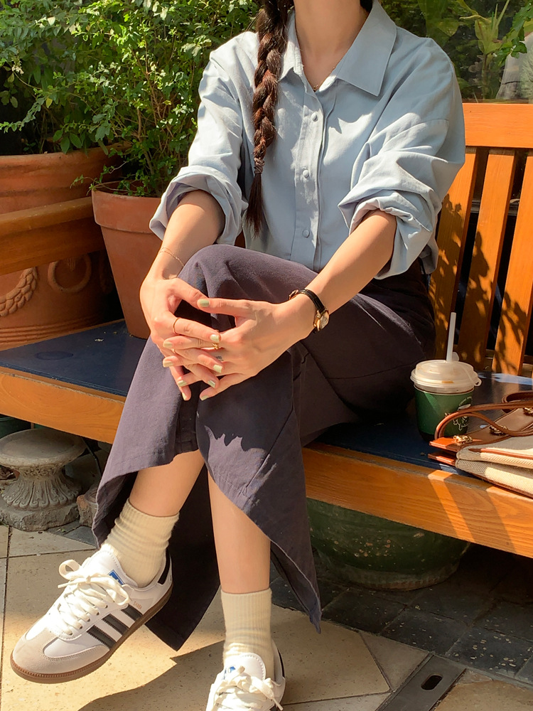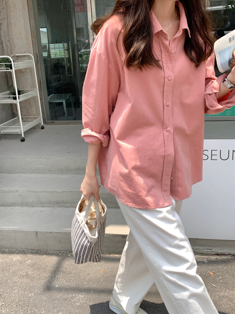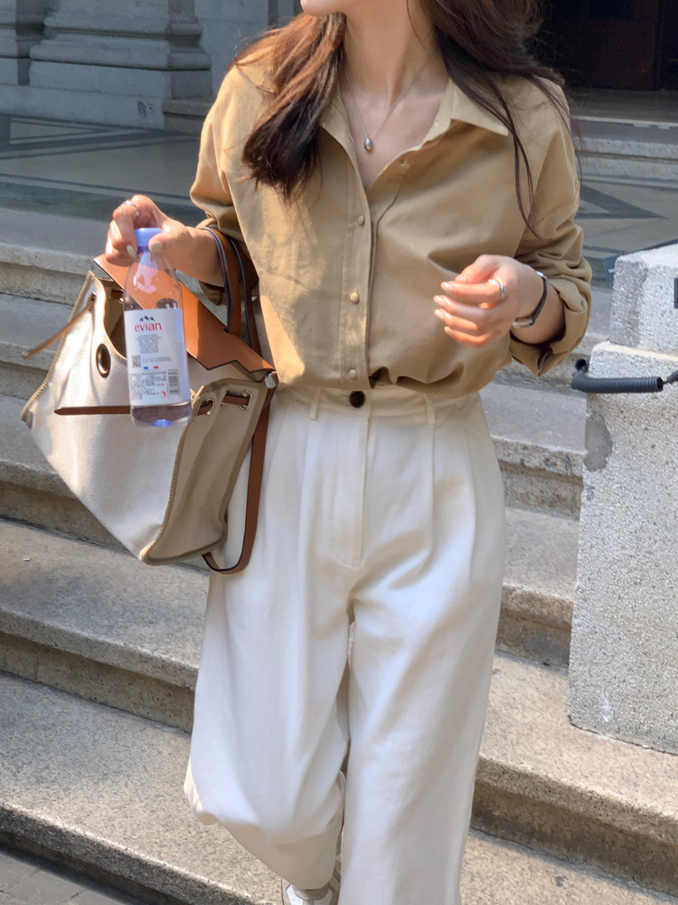 JMA-468 实拍长袖衬衫女2023春季纯色百搭宽松衬衣设计感小众chic休闲上衣