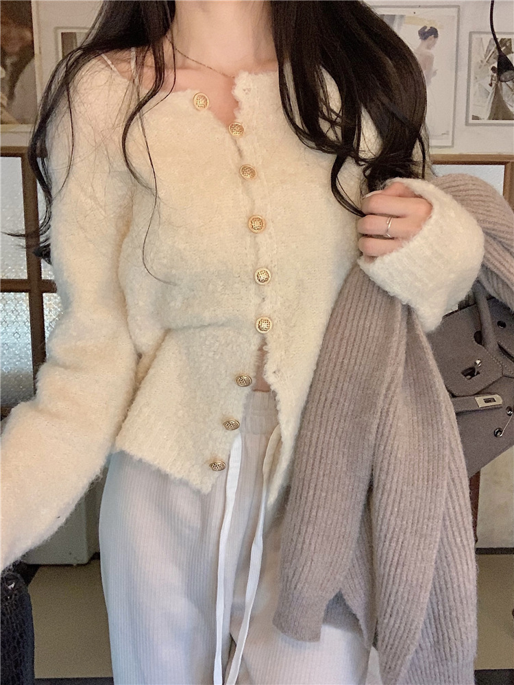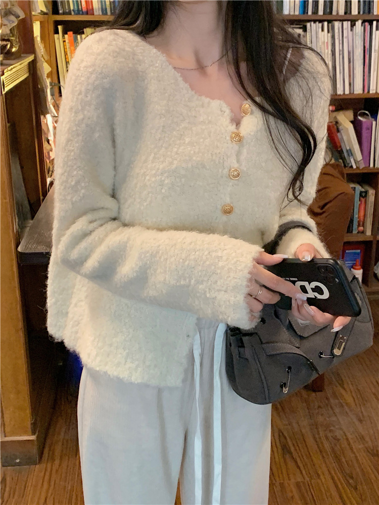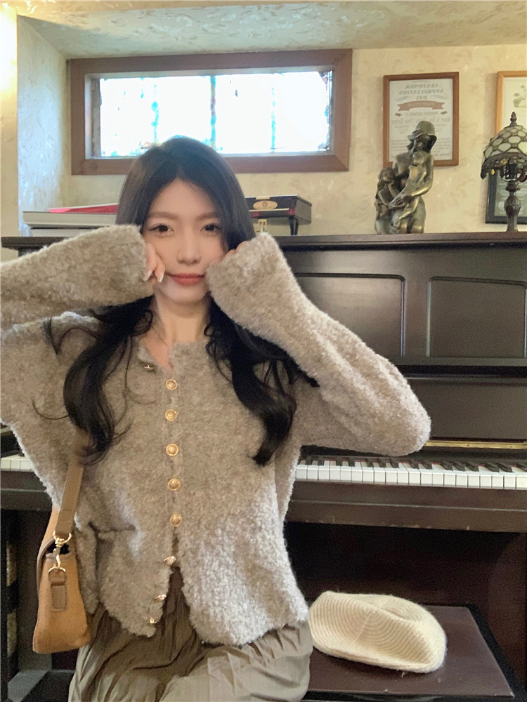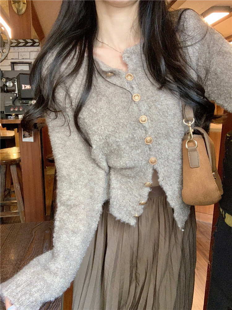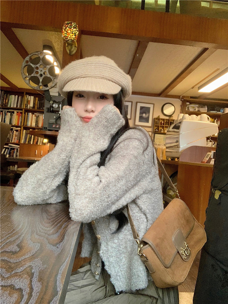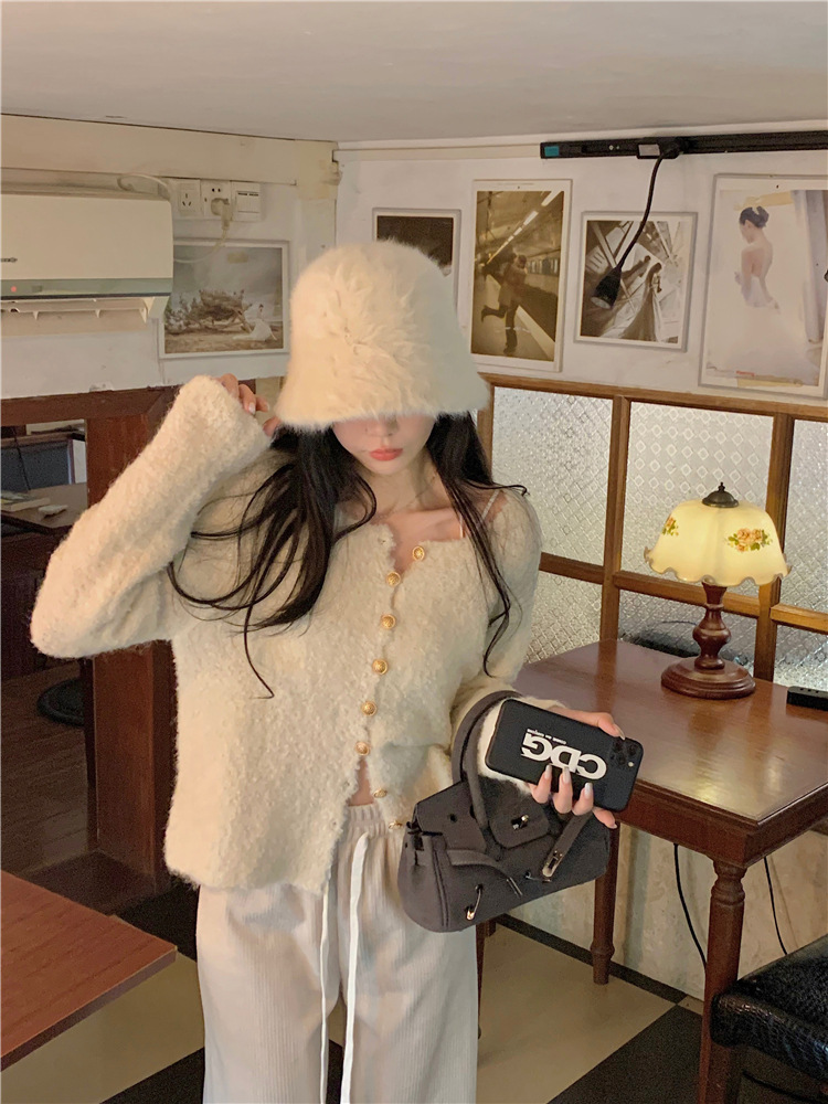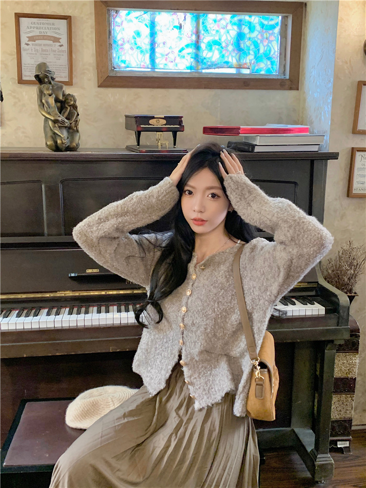 JMA-472 实拍 软糯风羊毛毛衣开衫外套女2023秋冬韩版慵懒风宽松圆领上衣