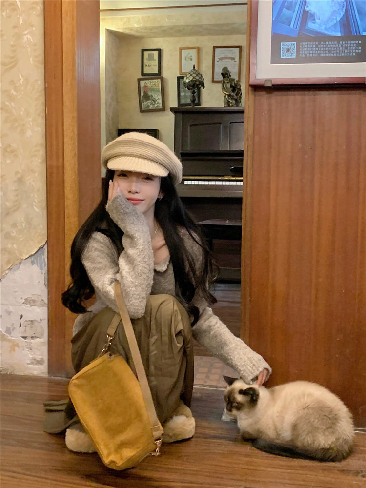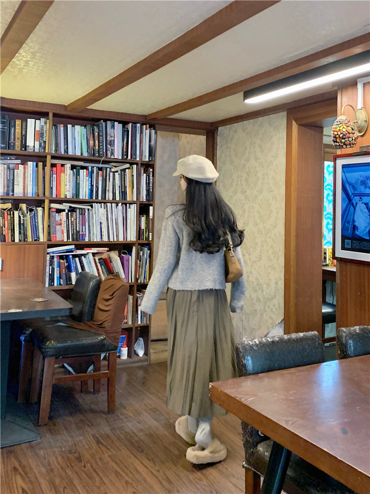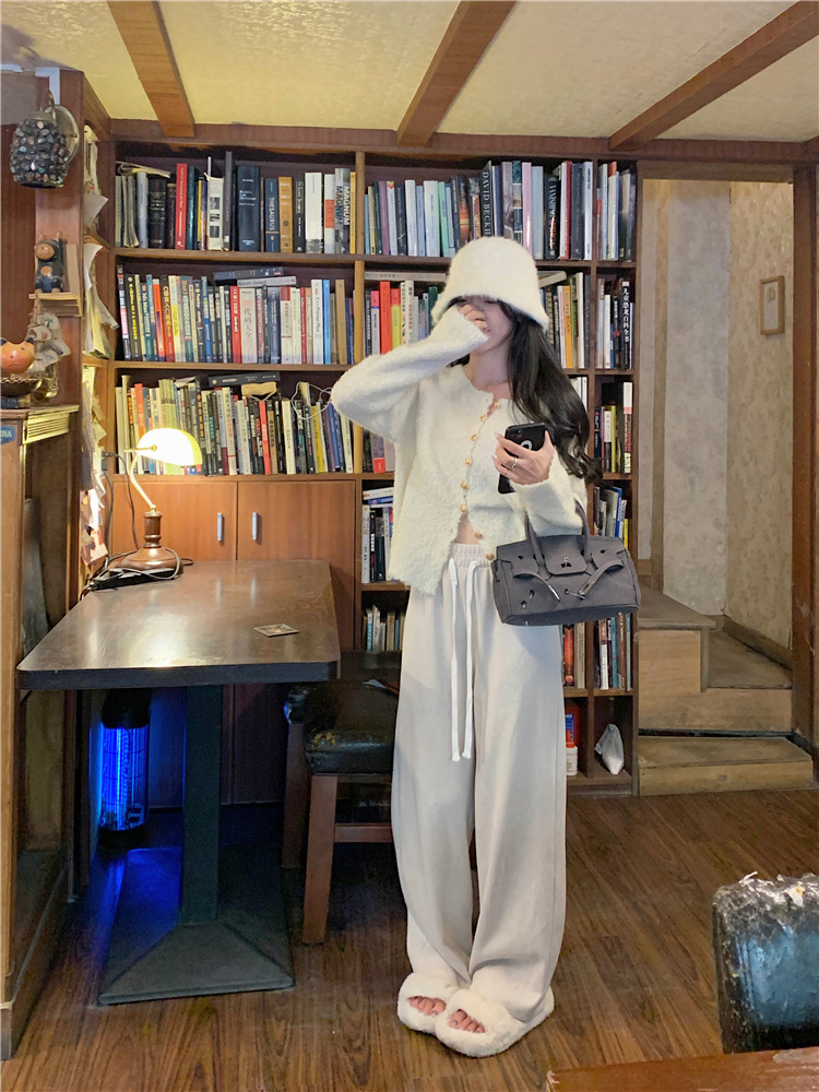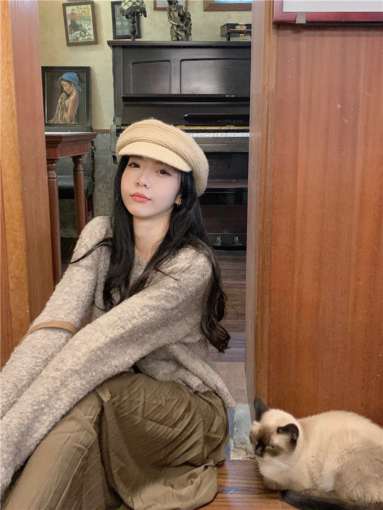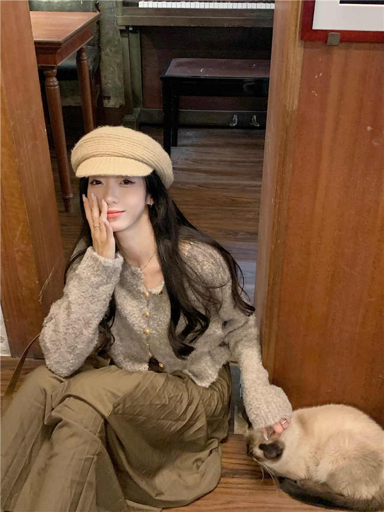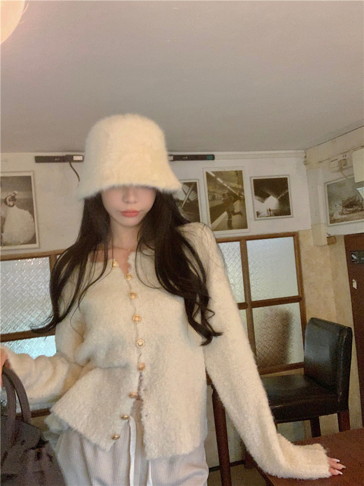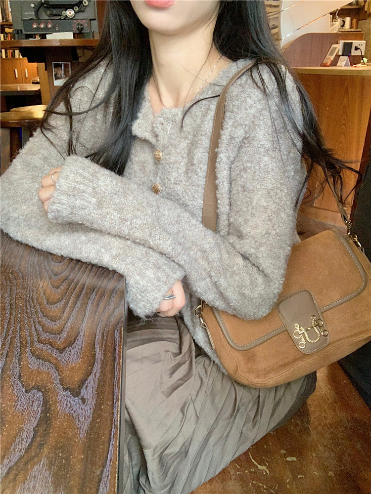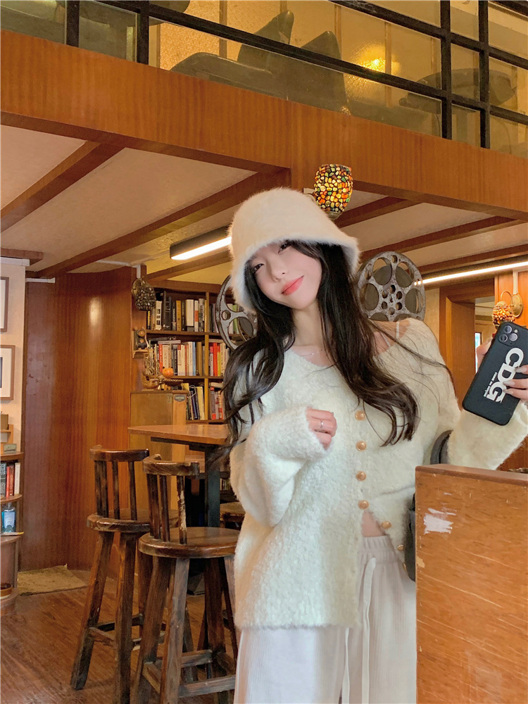 JMA-472 实拍 软糯风羊毛毛衣开衫外套女2023秋冬韩版慵懒风宽松圆领上衣