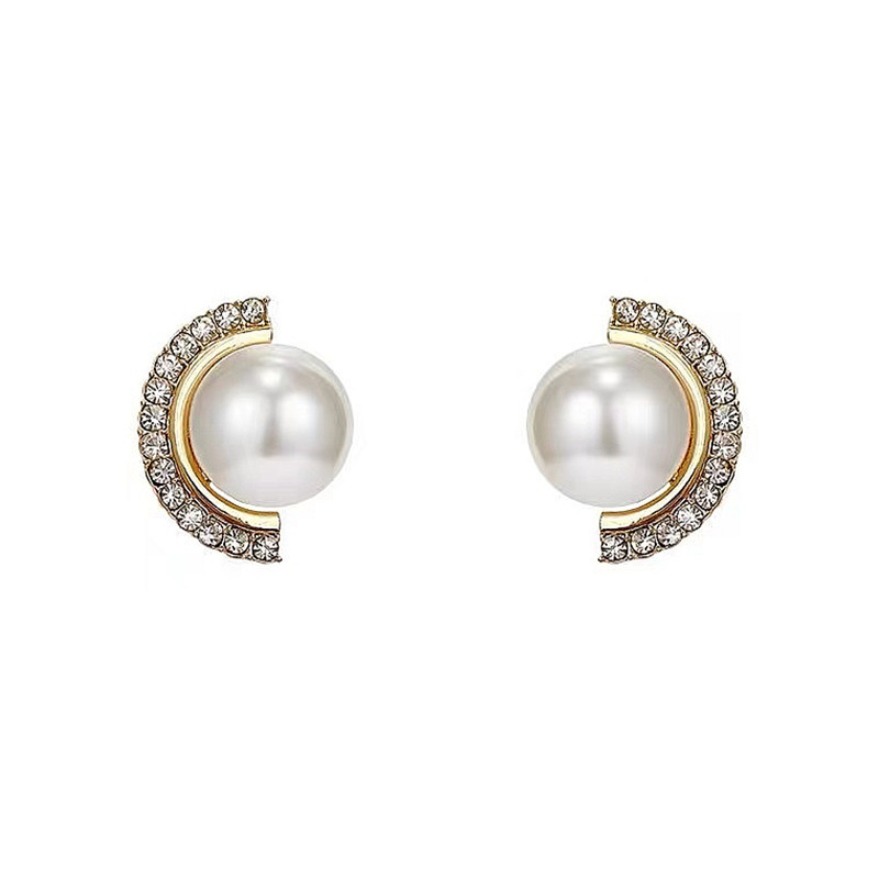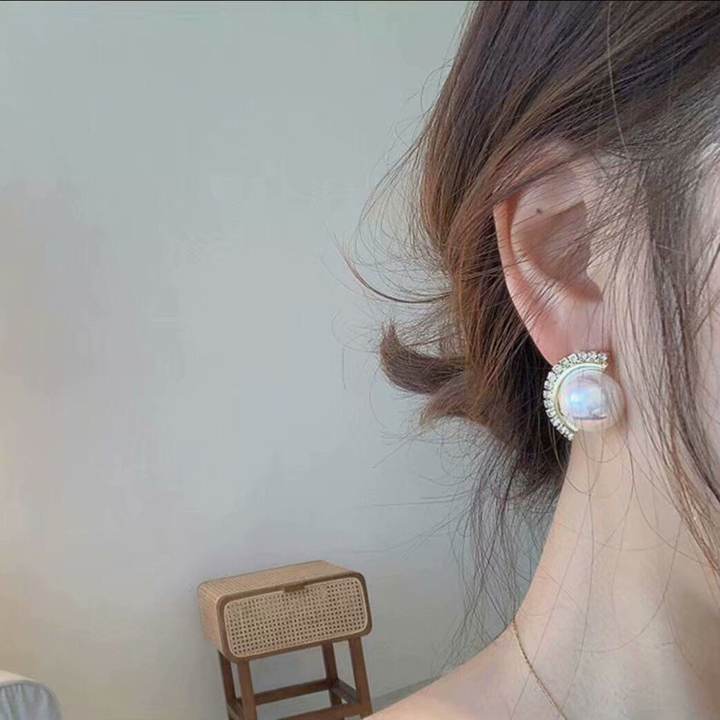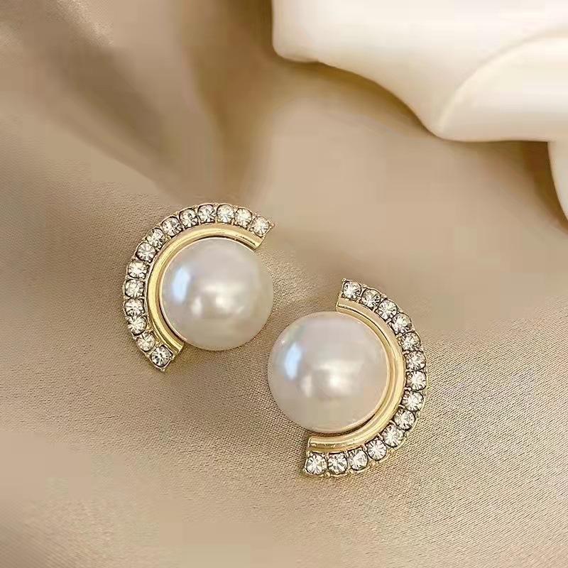 JME-456 镶钻珍珠耳钉2023年新款冷淡风气质耳环春夏季时尚设计感简约耳饰