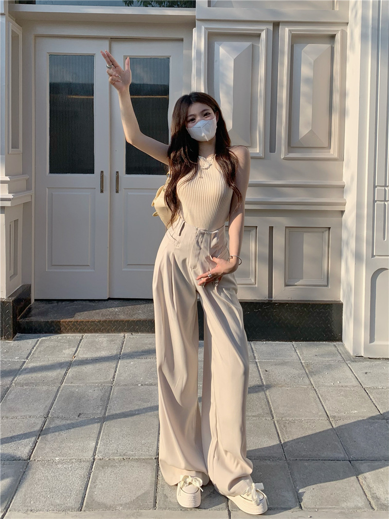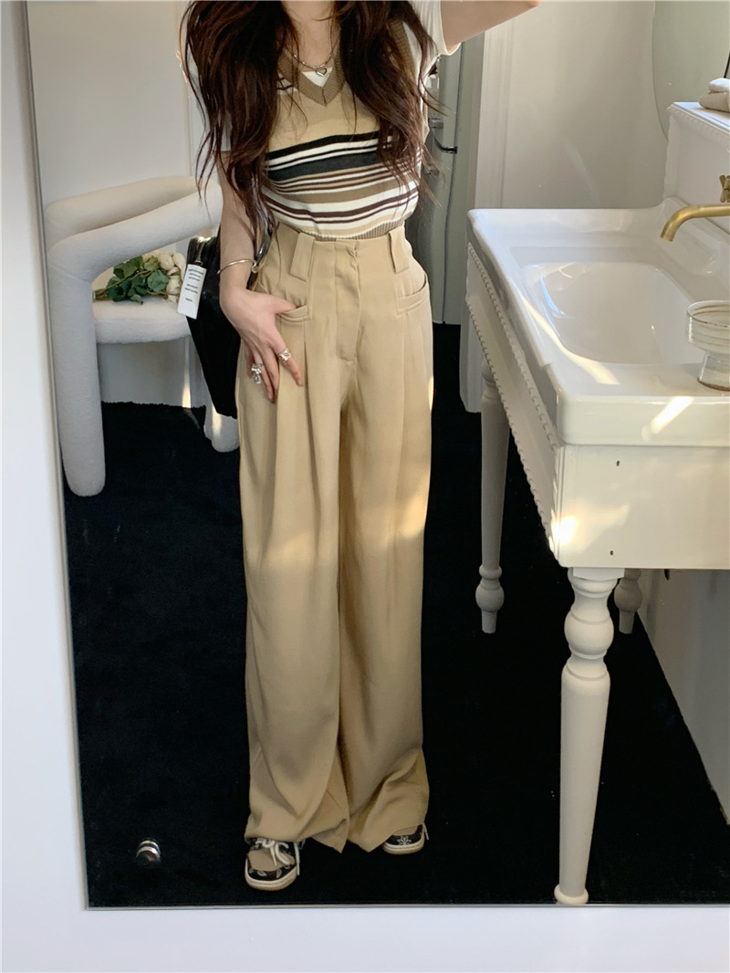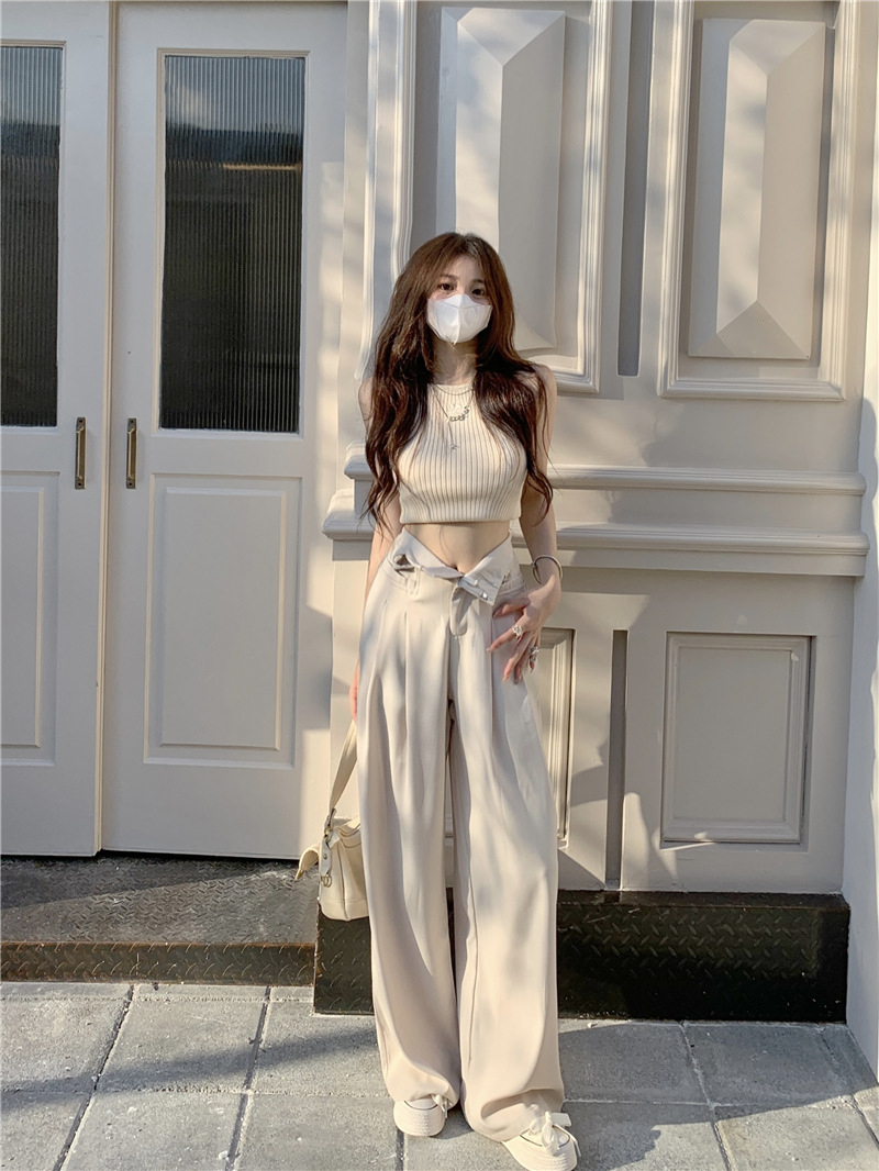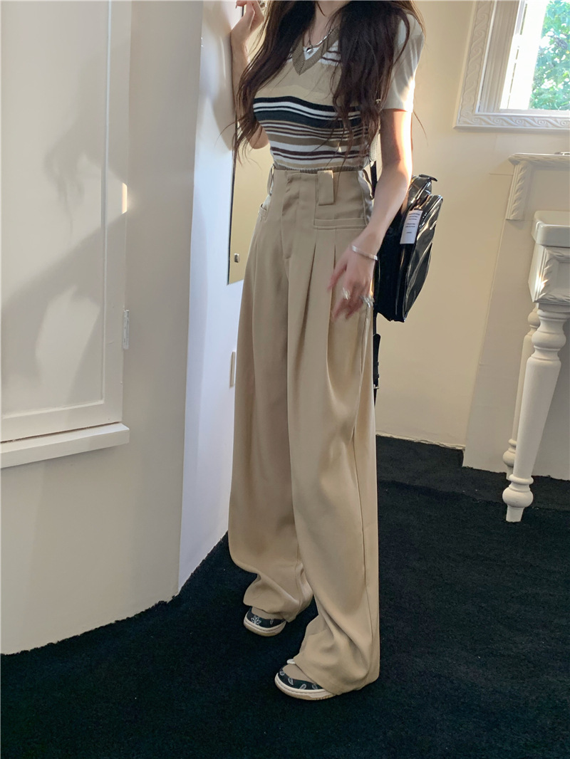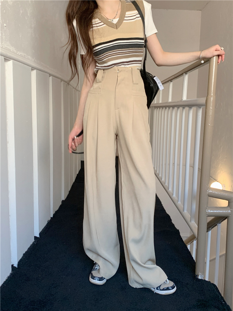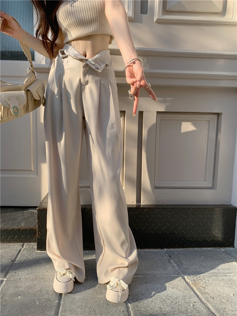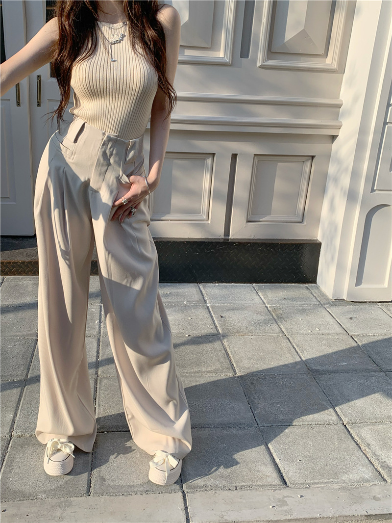 JMA-482 米白色高级感高腰西装裤女装直筒裤夏季拖地裤显瘦阔腿裤垂感裤子