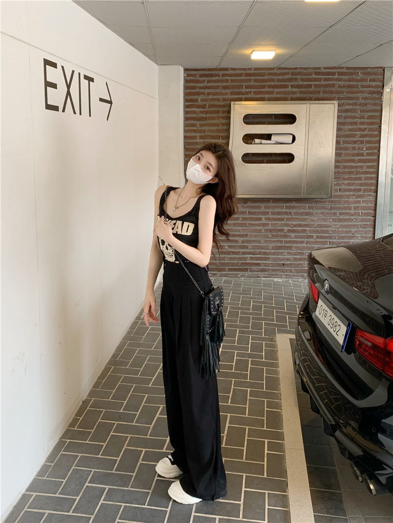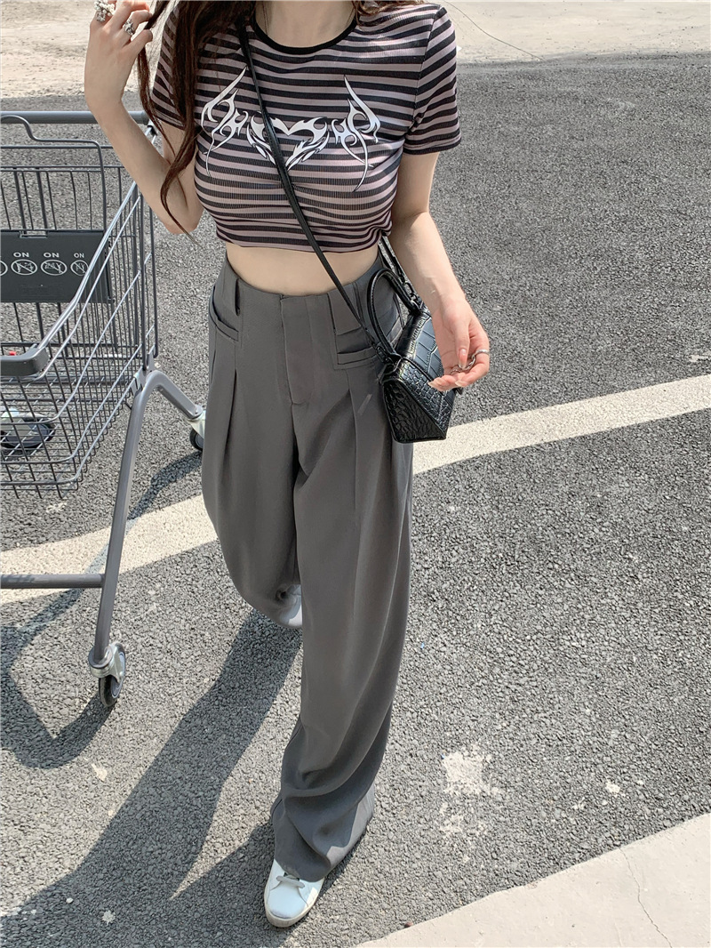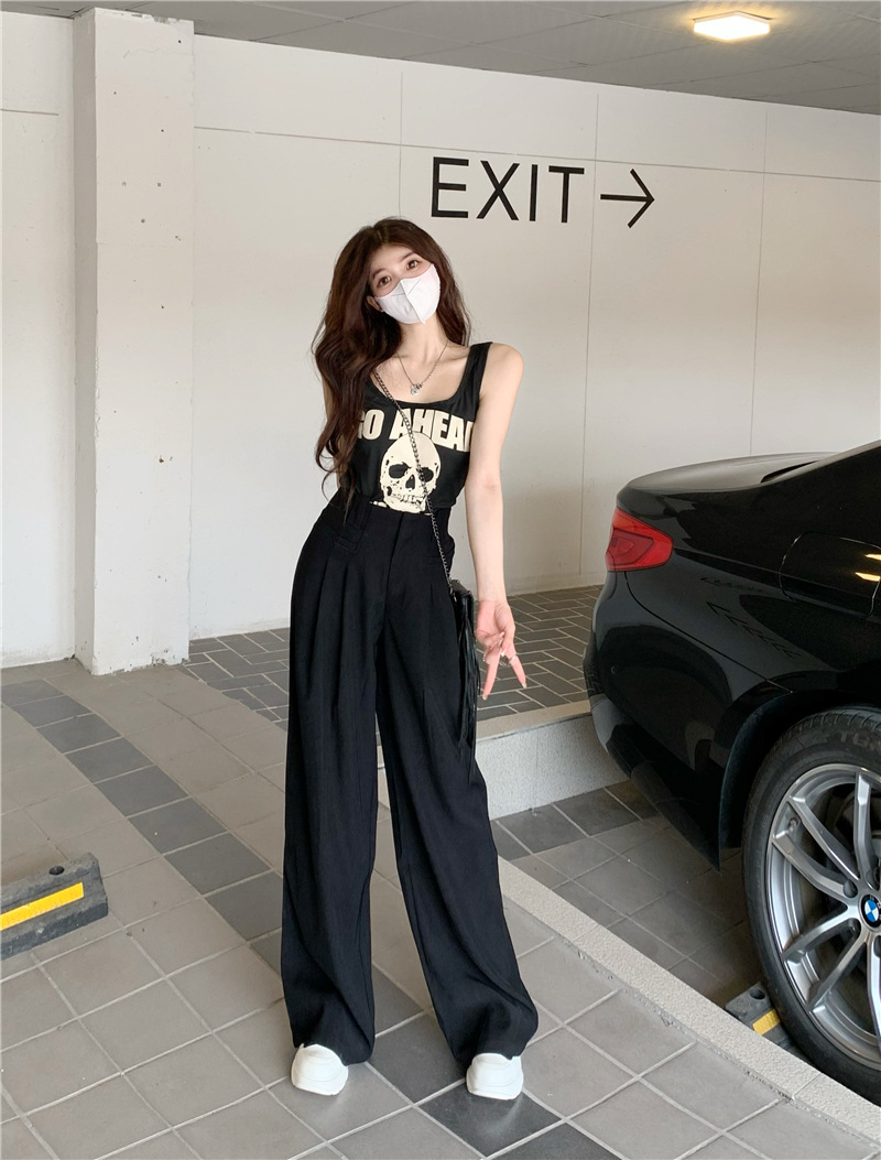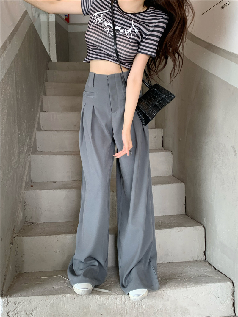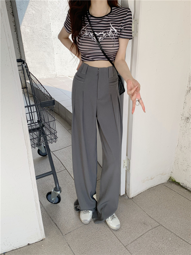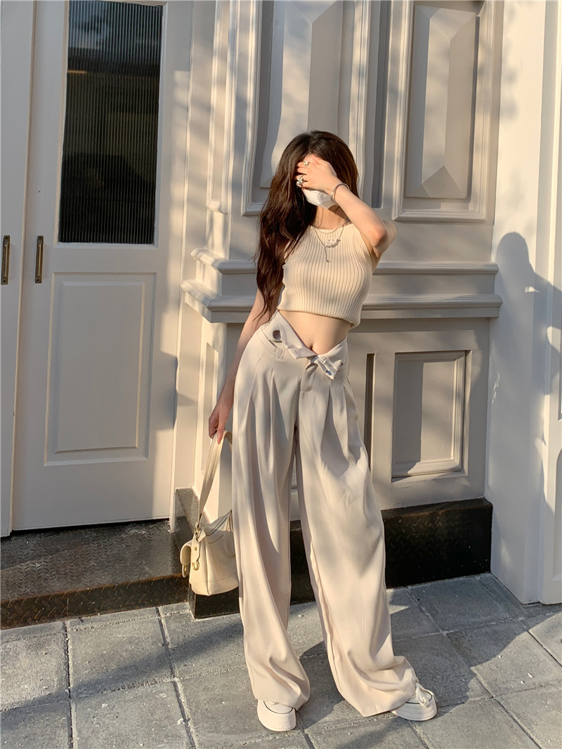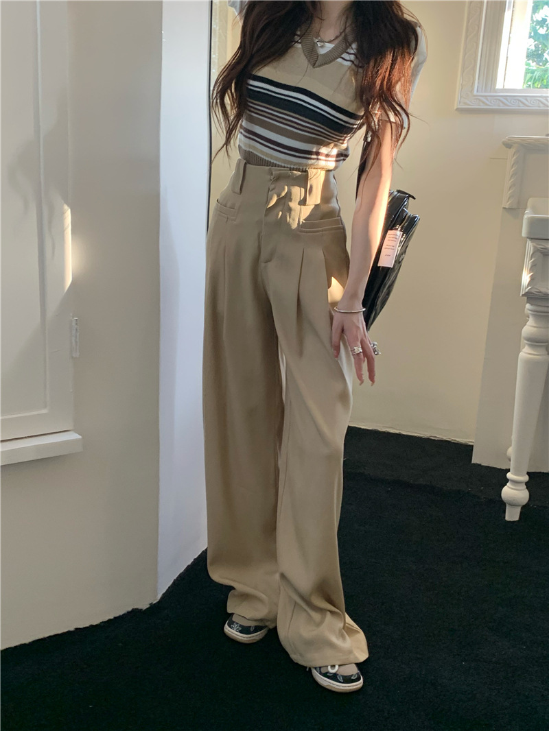 JMA-482 米白色高级感高腰西装裤女装直筒裤夏季拖地裤显瘦阔腿裤垂感裤子