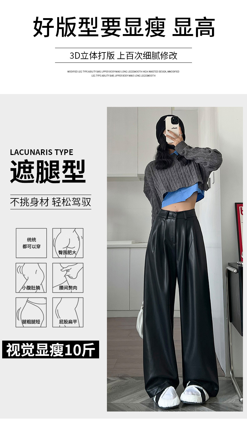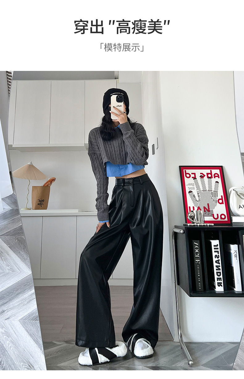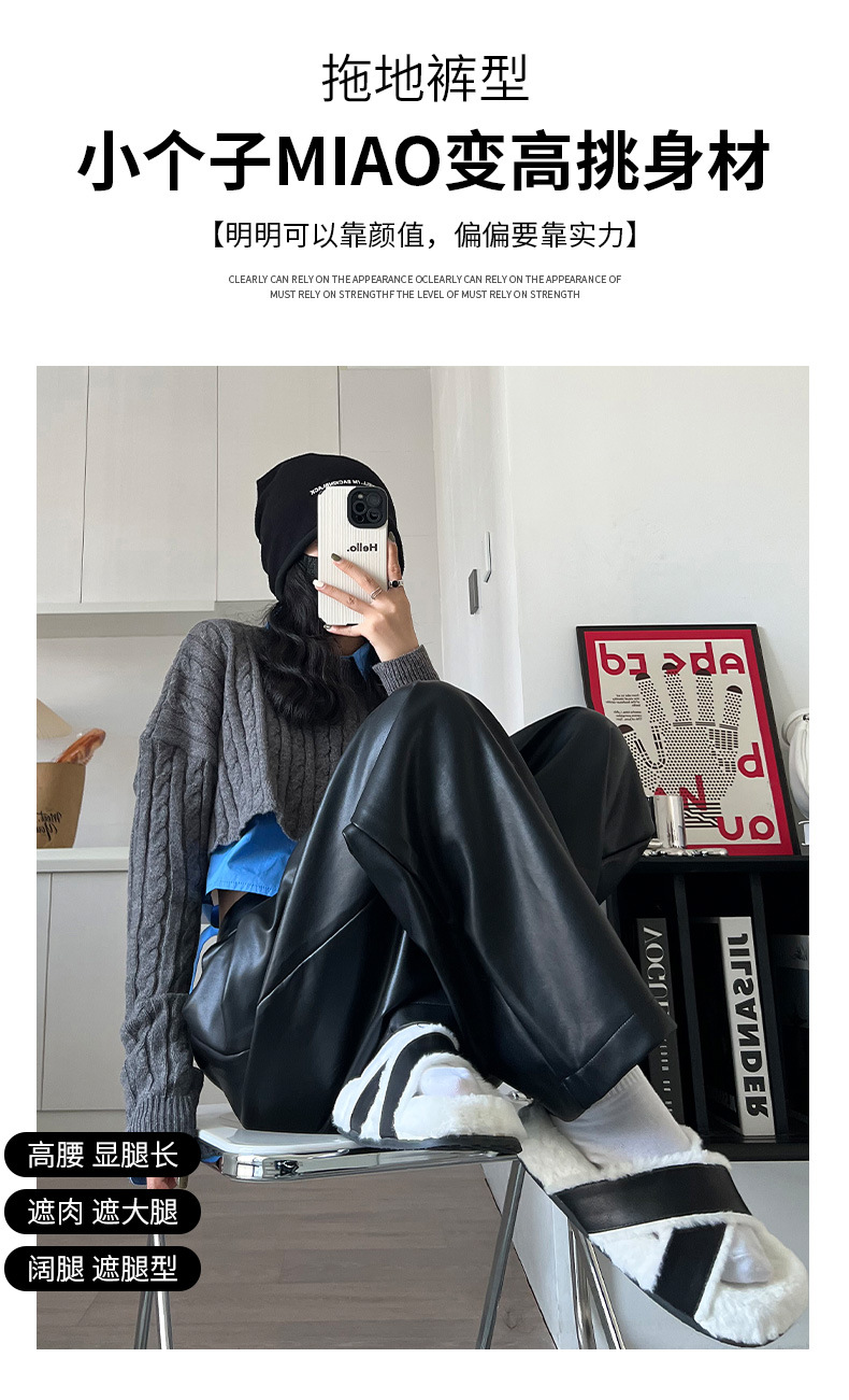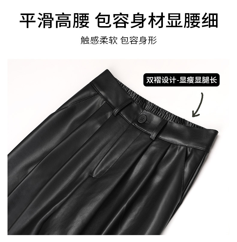 JMA-484 实拍 2023秋冬韩版直筒显瘦休闲裤软软PU皮个性宽松阔腿裤皮裤子