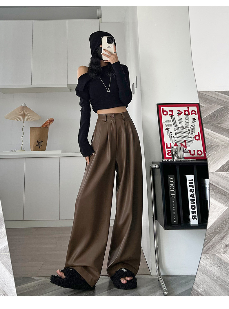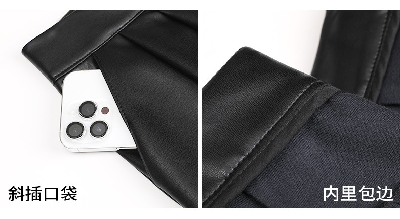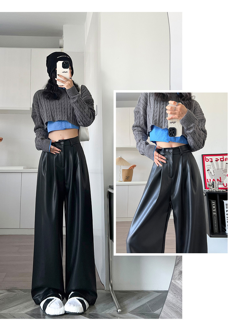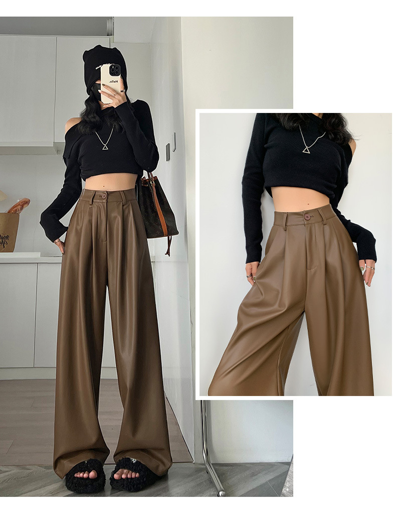 JMA-484 实拍 2023秋冬韩版直筒显瘦休闲裤软软PU皮个性宽松阔腿裤皮裤子