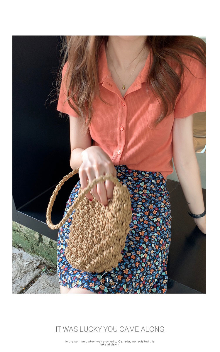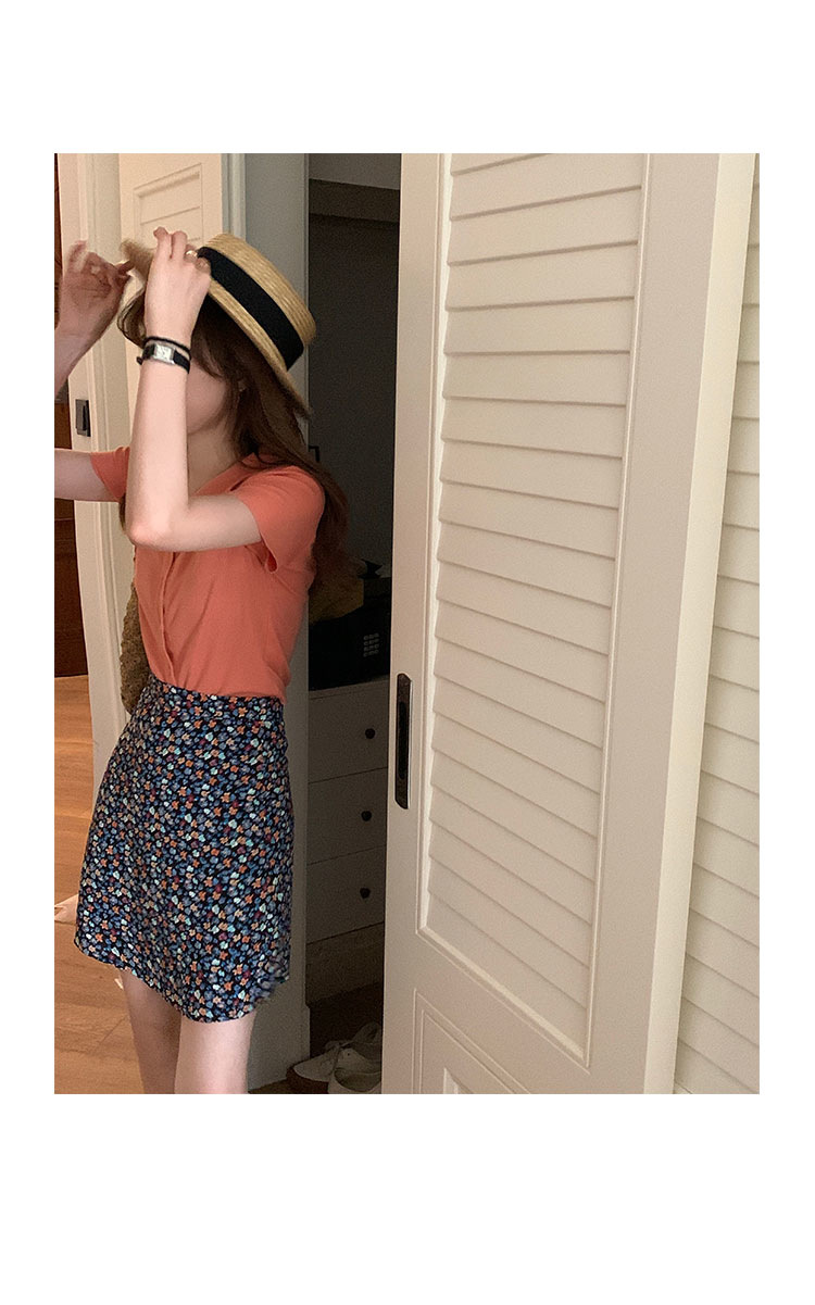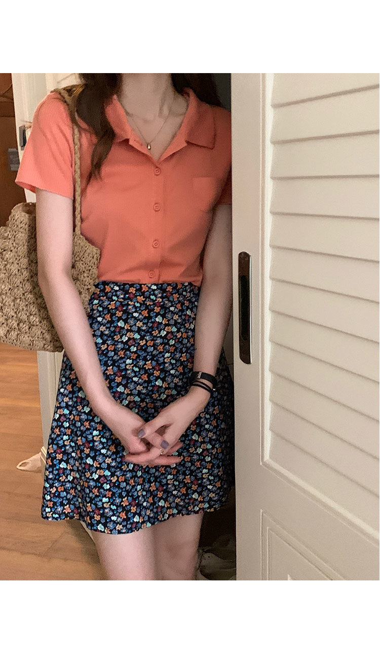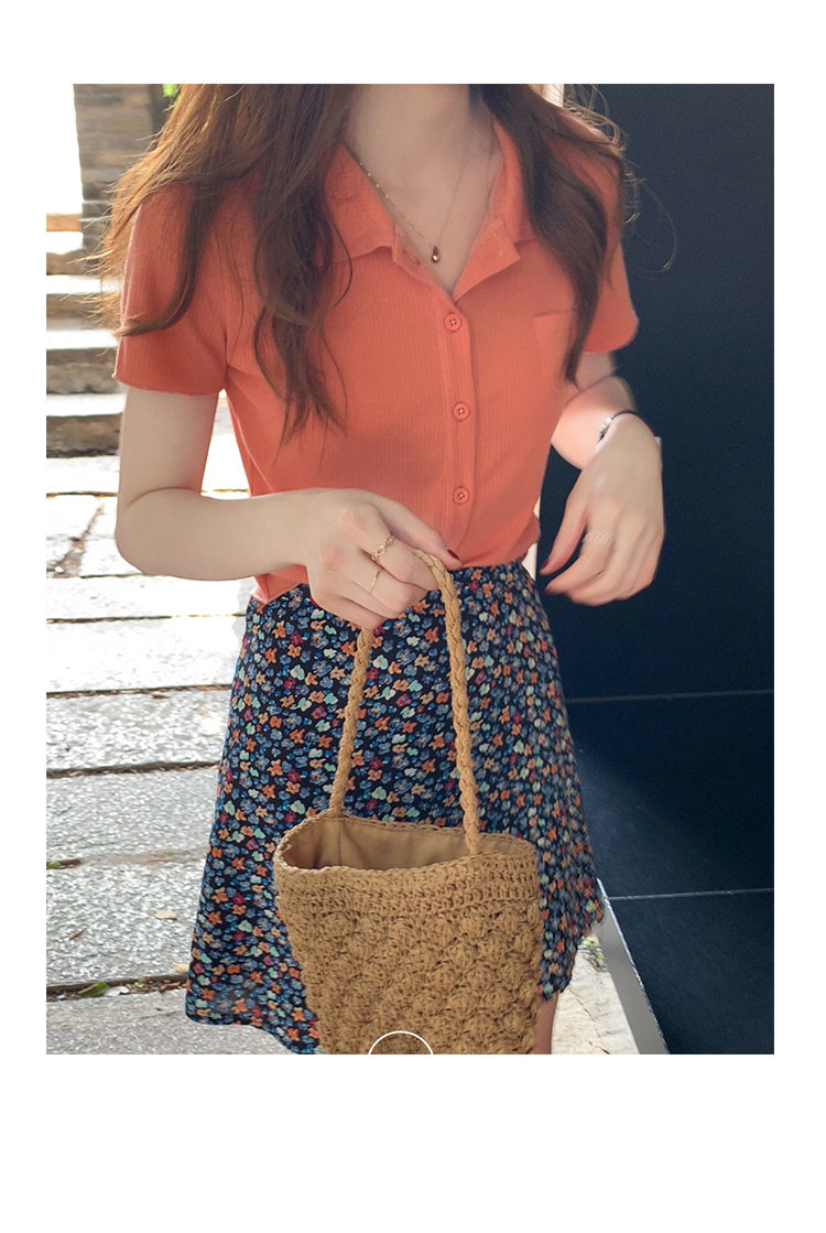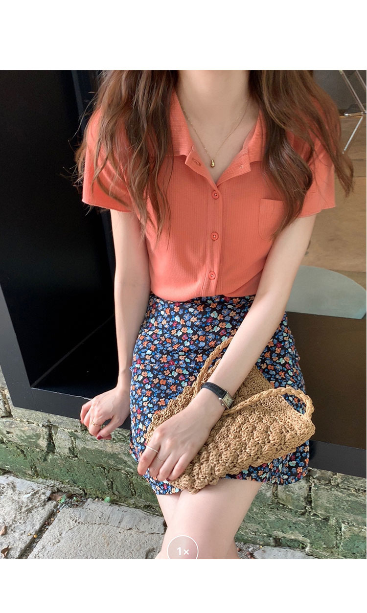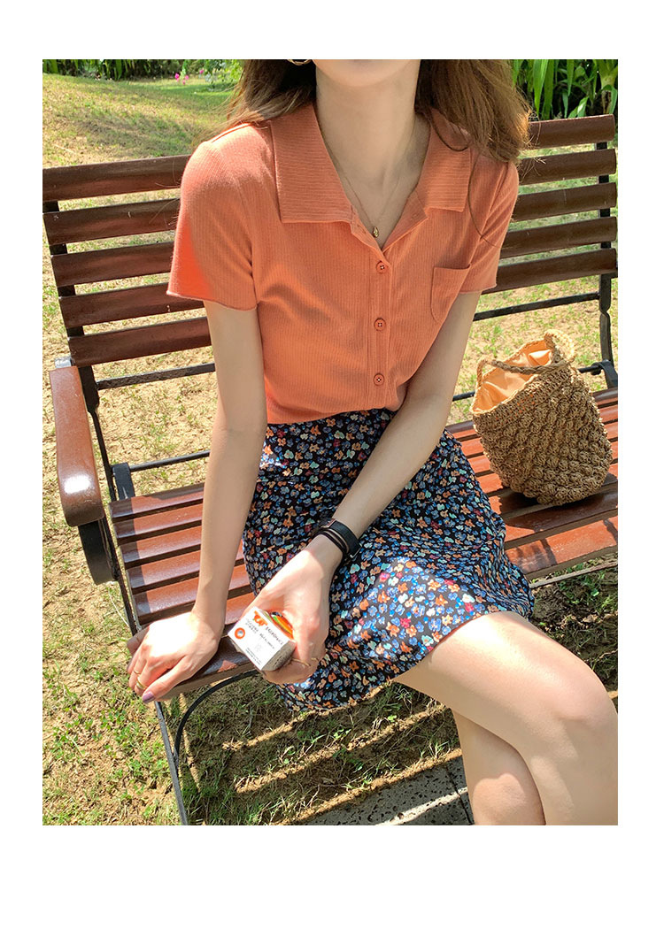 JMA-501 实拍 紫色翻领短袖T恤女2024夏季小众设计感修身显瘦百搭短款上衣