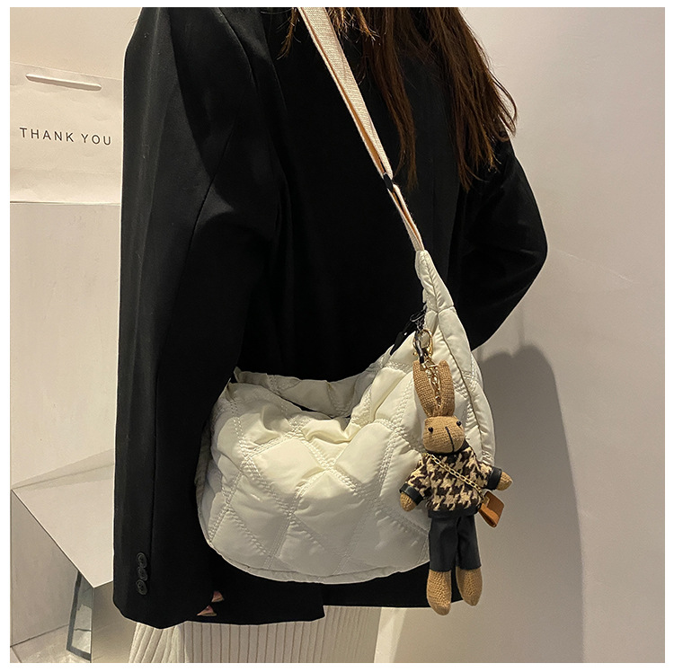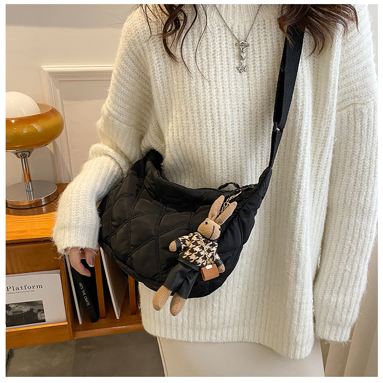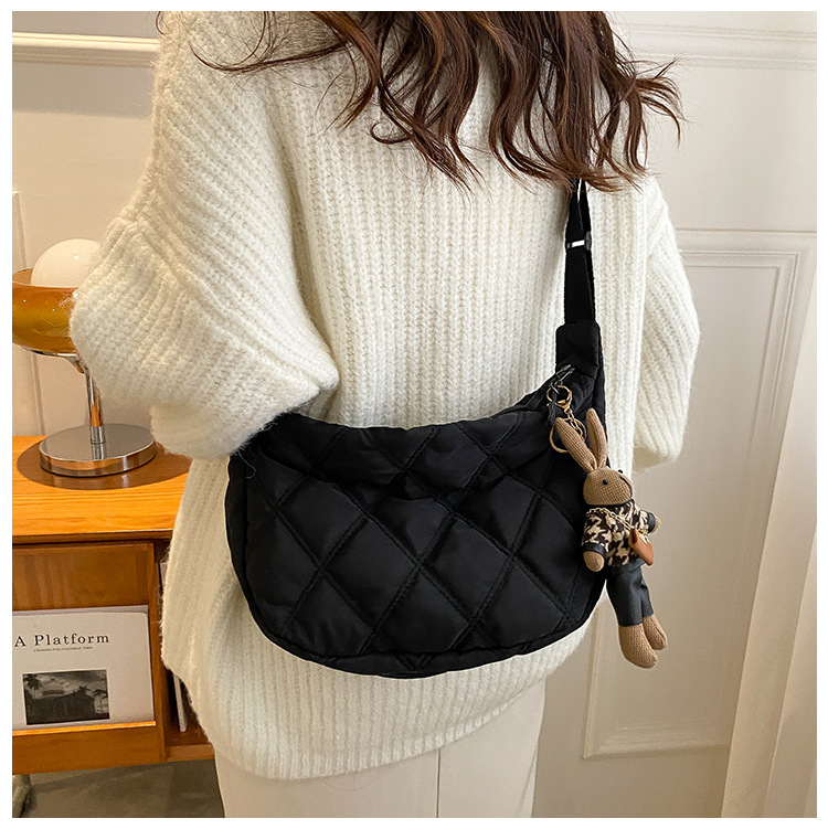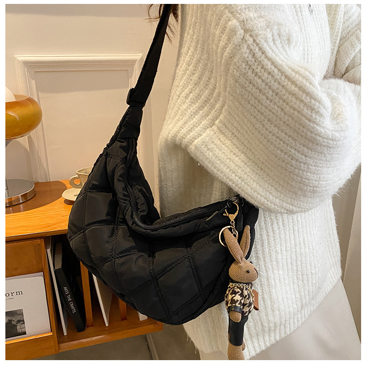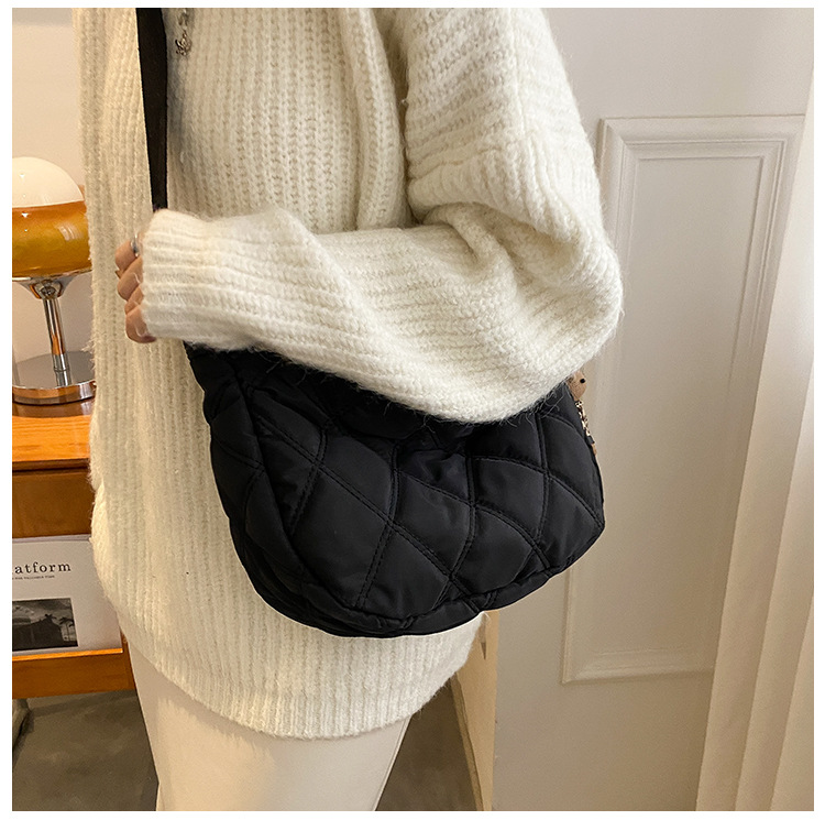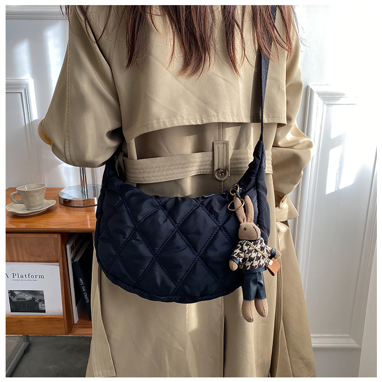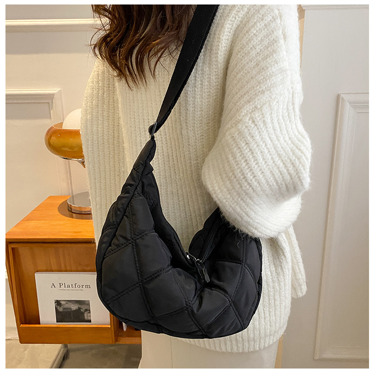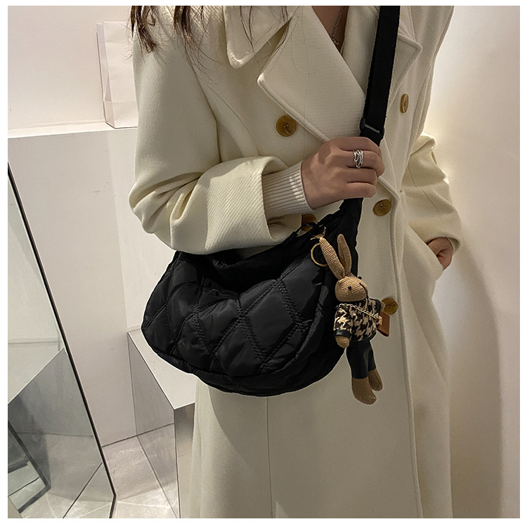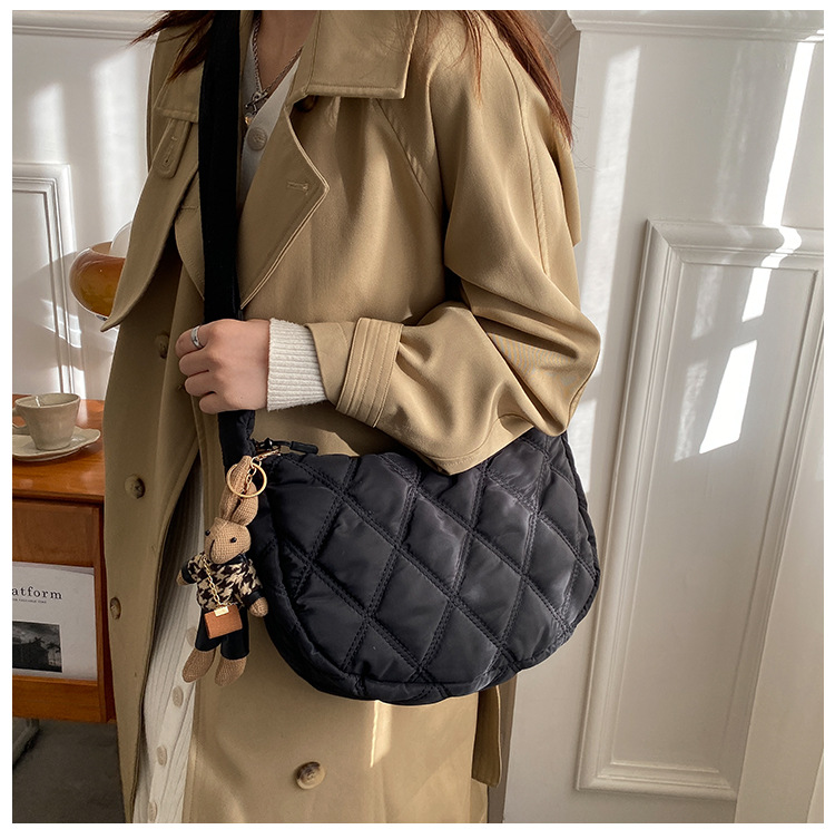 JM-901 2024流行新款潮时尚单肩斜挎包网红饺子包菱格绣线大容量大包包女
