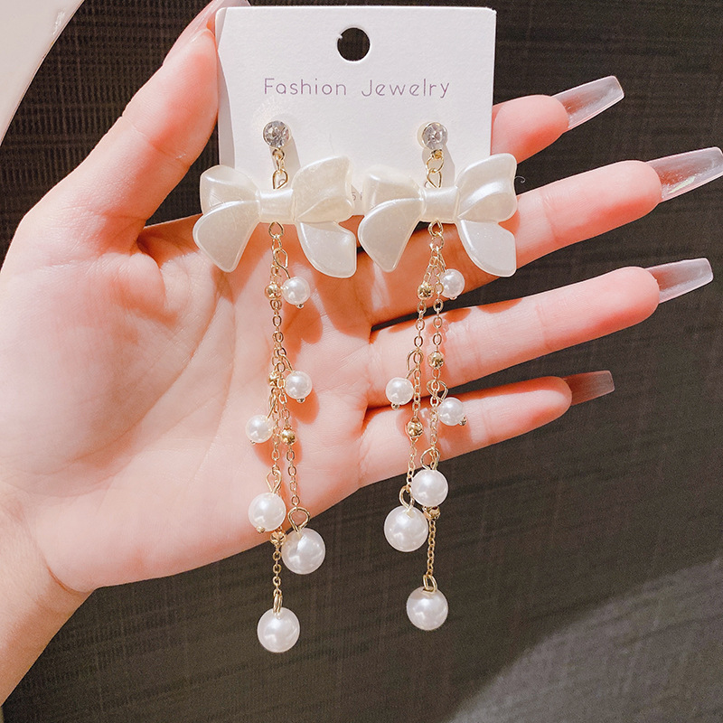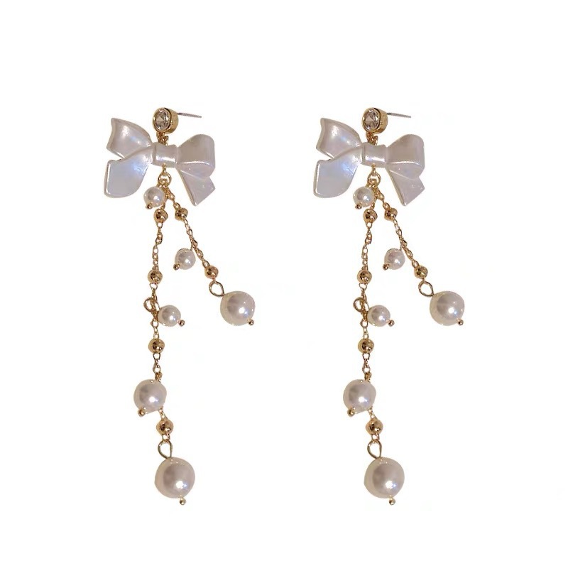 JME-486 法式长款蝴蝶结流苏精致耳环女高级感名媛耳坠气质百搭耳饰潮批发
