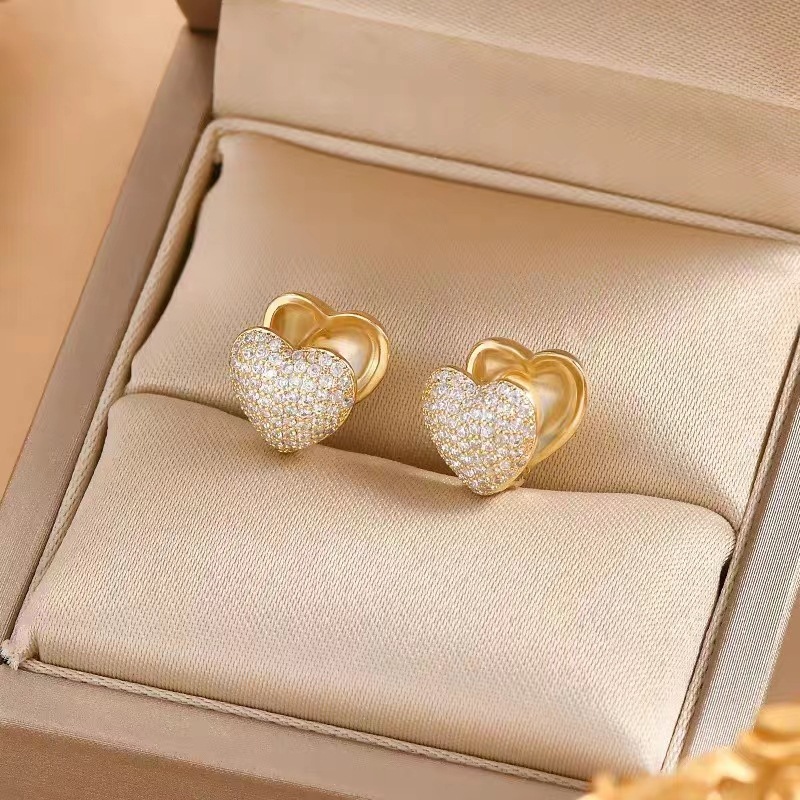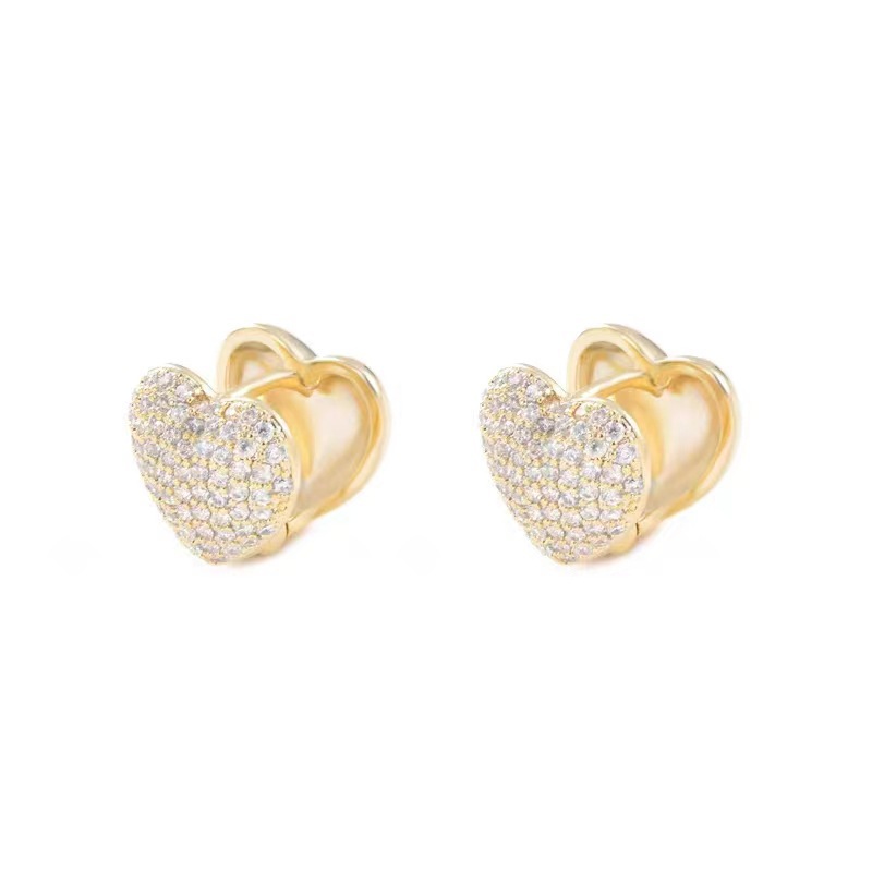 JME-505 双面爱心满钻锆石精致百搭气质冷淡风耳环超闪小众轻奢耳饰女批发