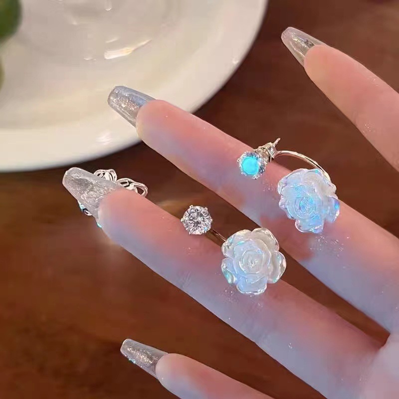 JME-506 法式复古锆石亚克力花朵耳钉女韩国小众个性简约气质百搭耳环耳饰