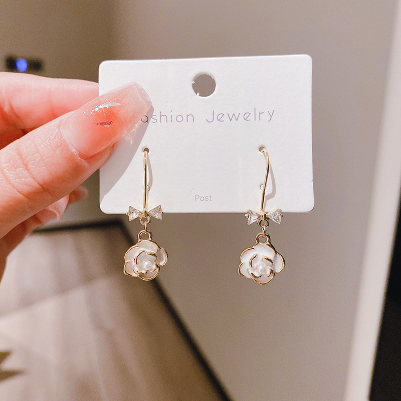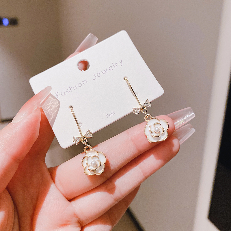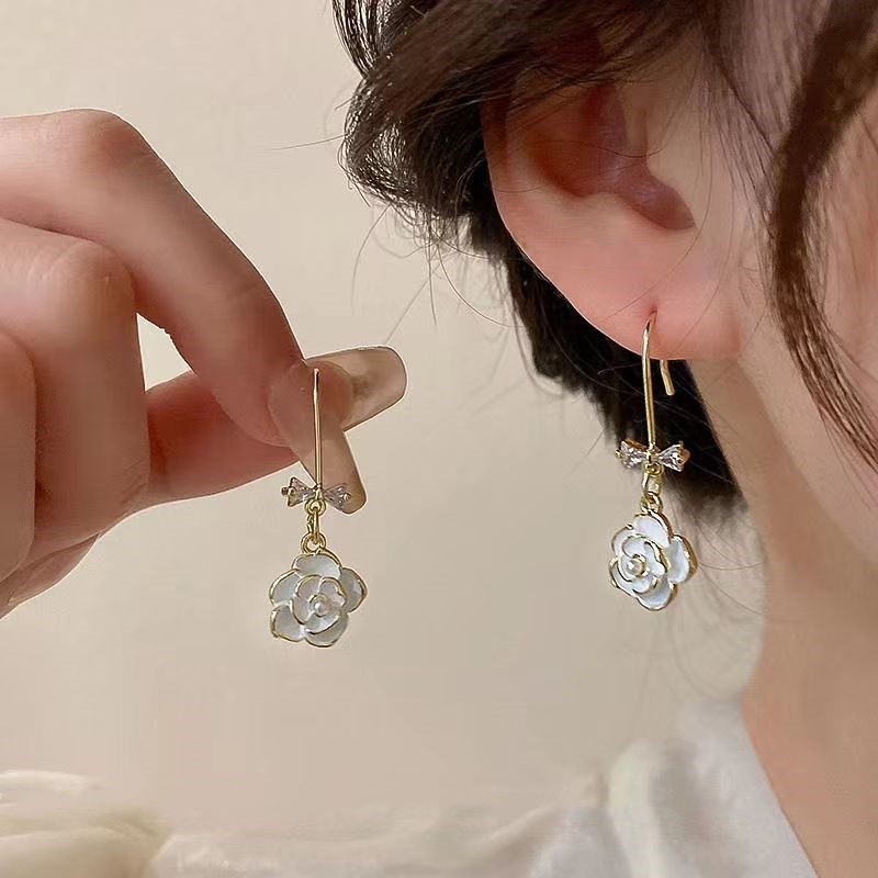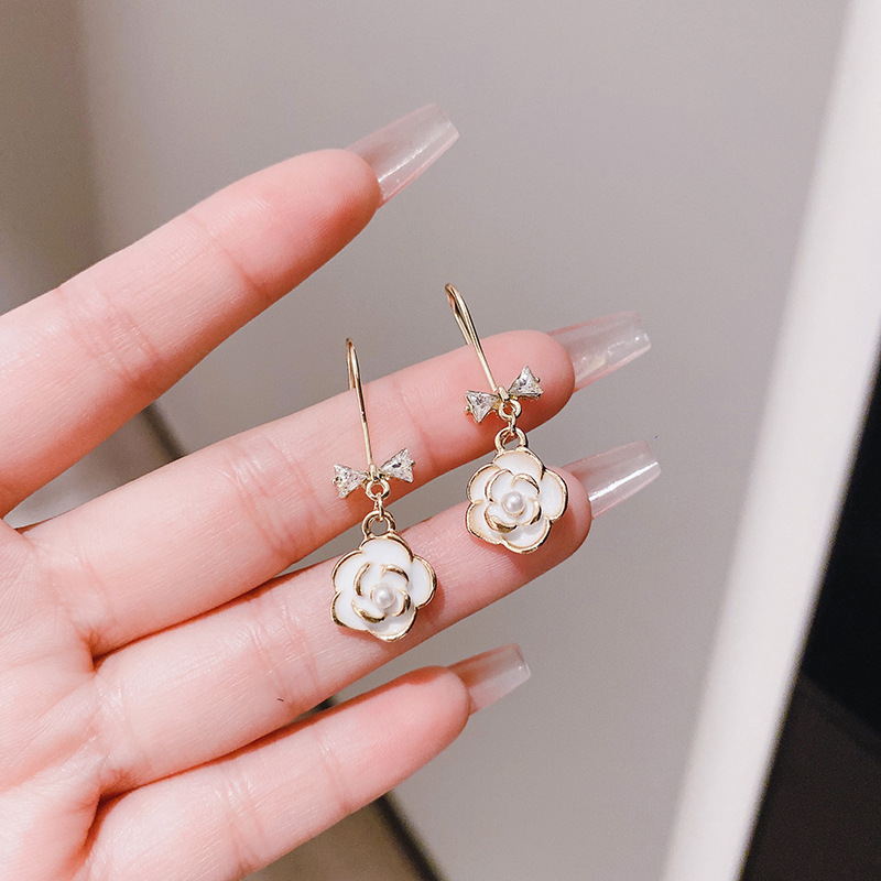JME-507 法式小香风山茶花耳钉耳坠女蝴蝶结珍珠小众设计高级感耳环耳饰品