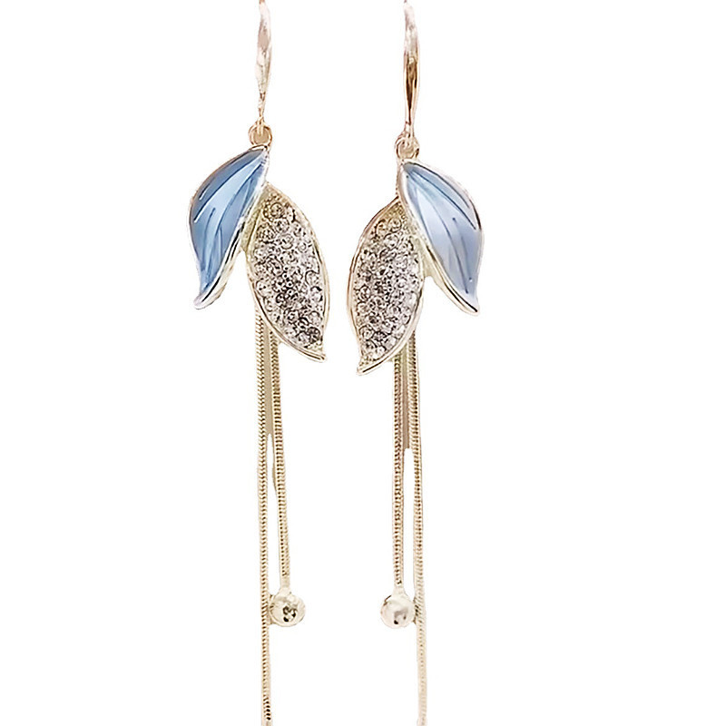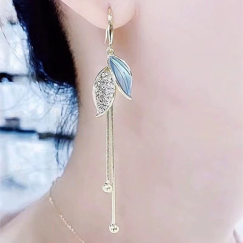 JME-509 韩国气质长款树叶耳环2023年新款潮高级感轻奢小众设计感网红耳饰
