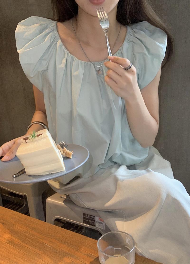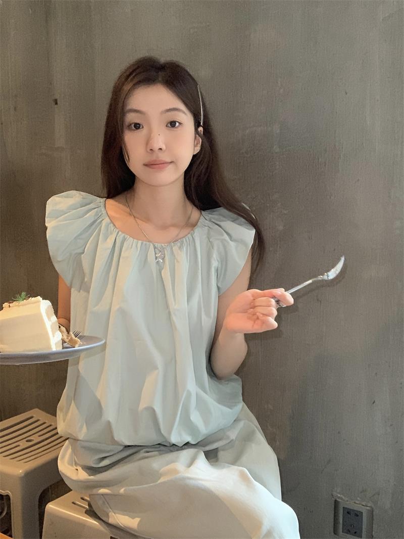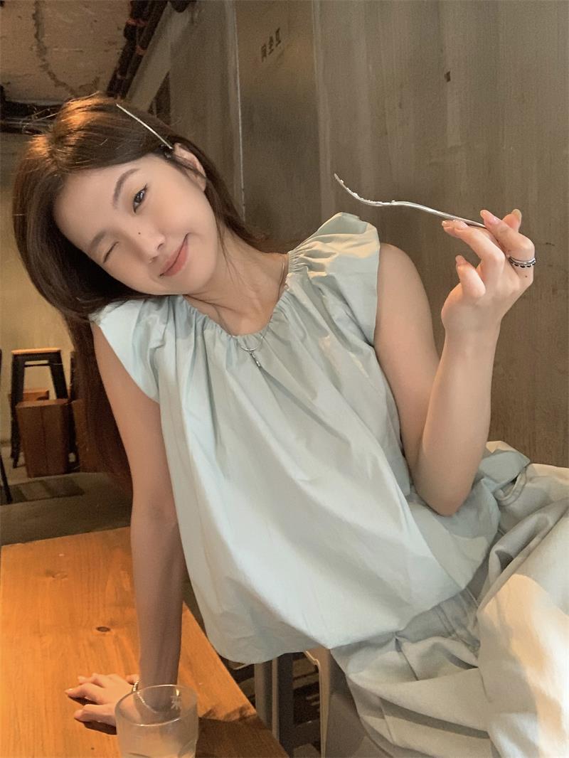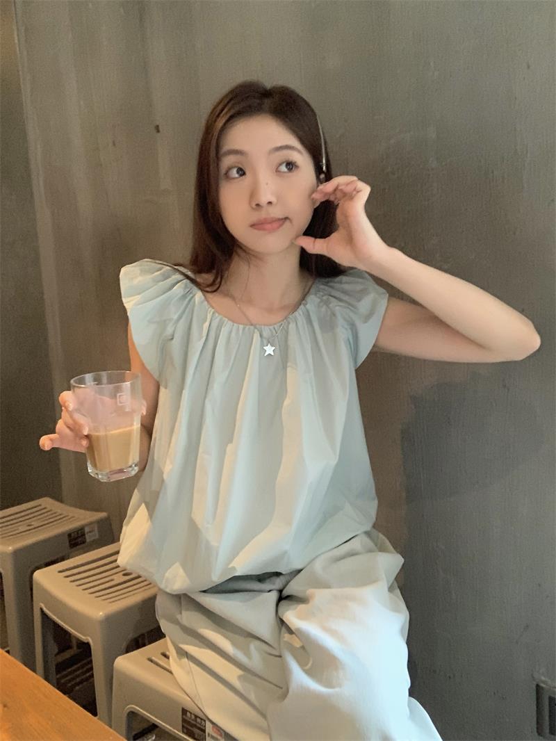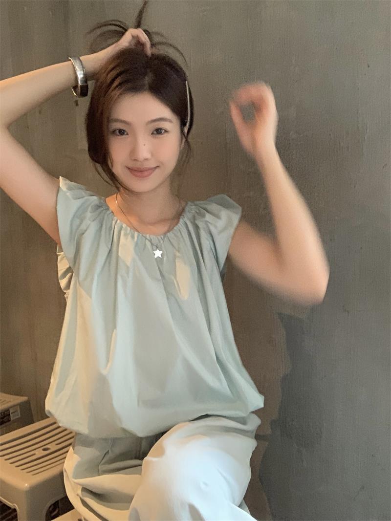 JMA-536 实拍 小飞袖系带衬衫女2023夏季新款韩版小个子短款甜美气质小衫