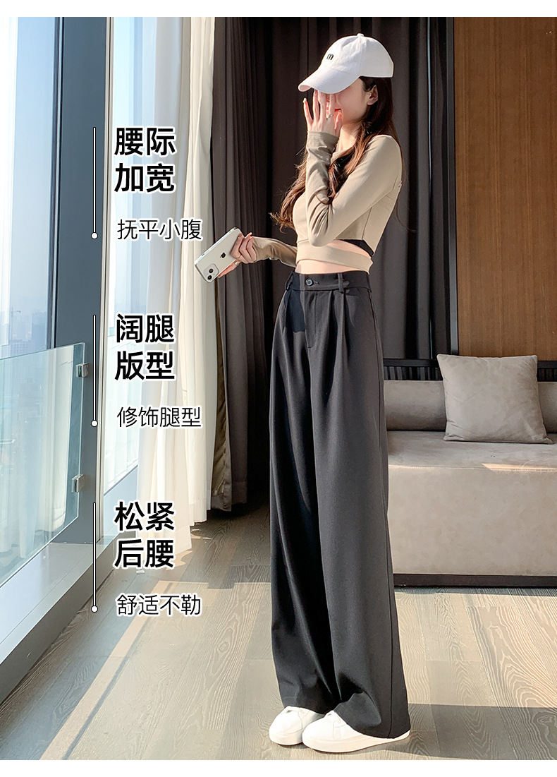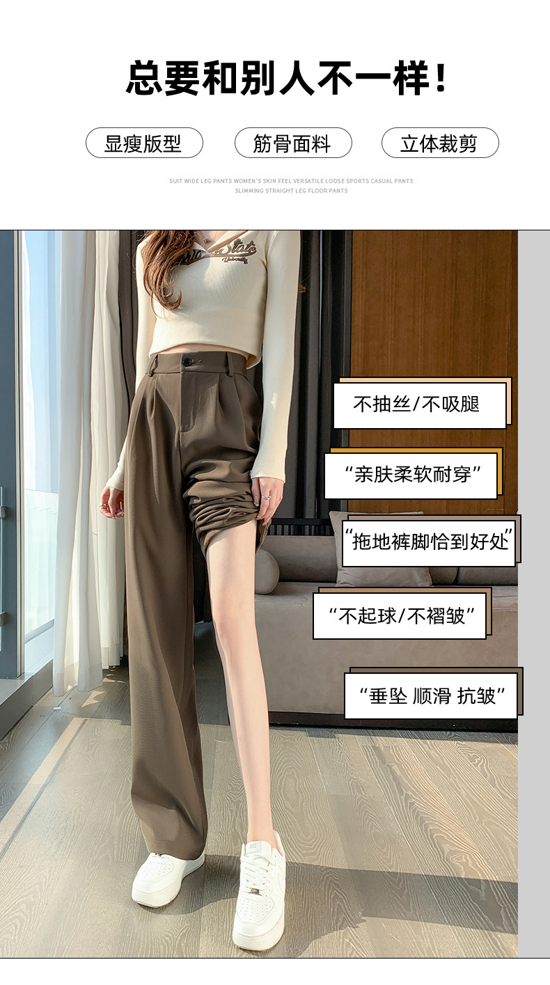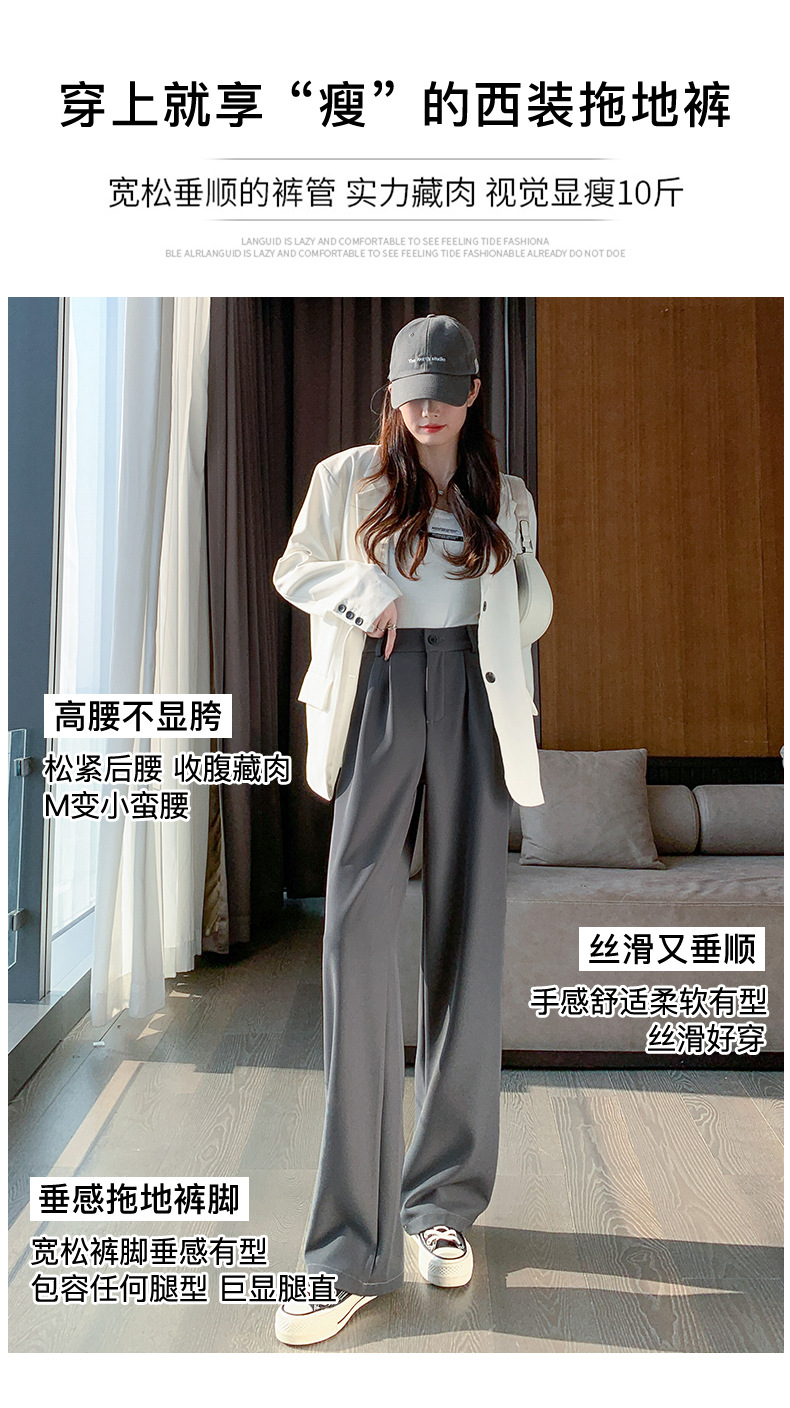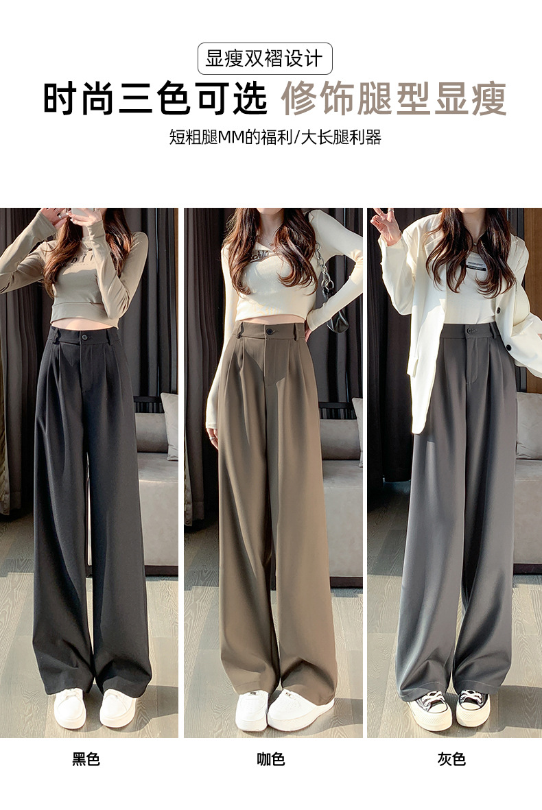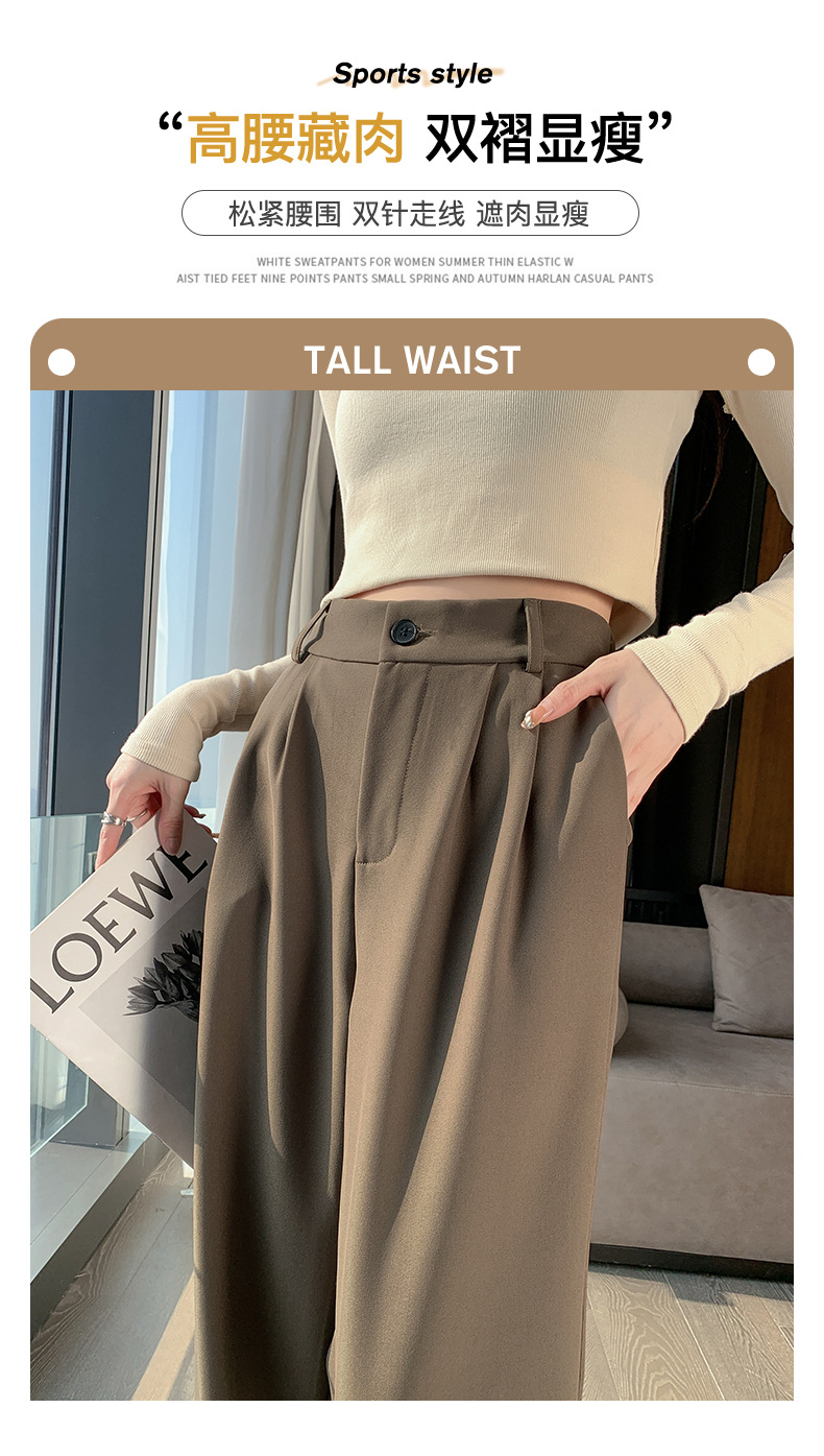JMA-542 实拍2024初秋新款韩版垂感窄版直筒休闲裤女小个子西装裤阔腿长裤