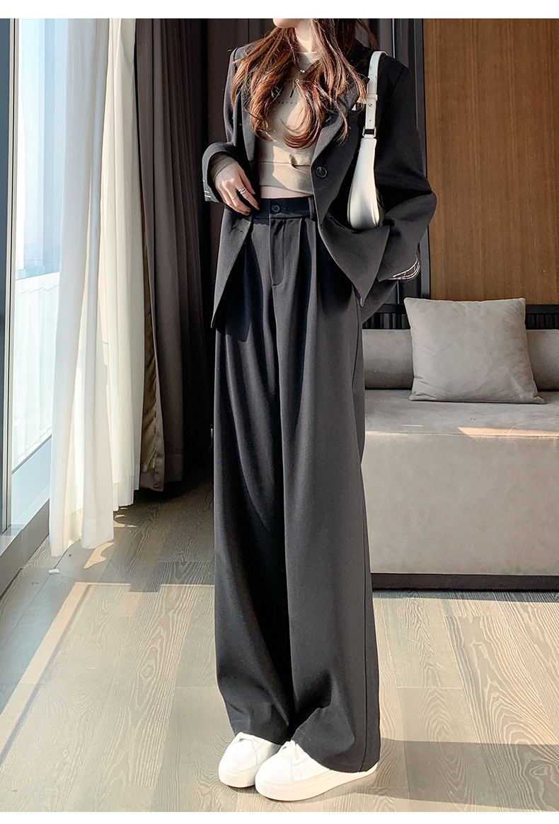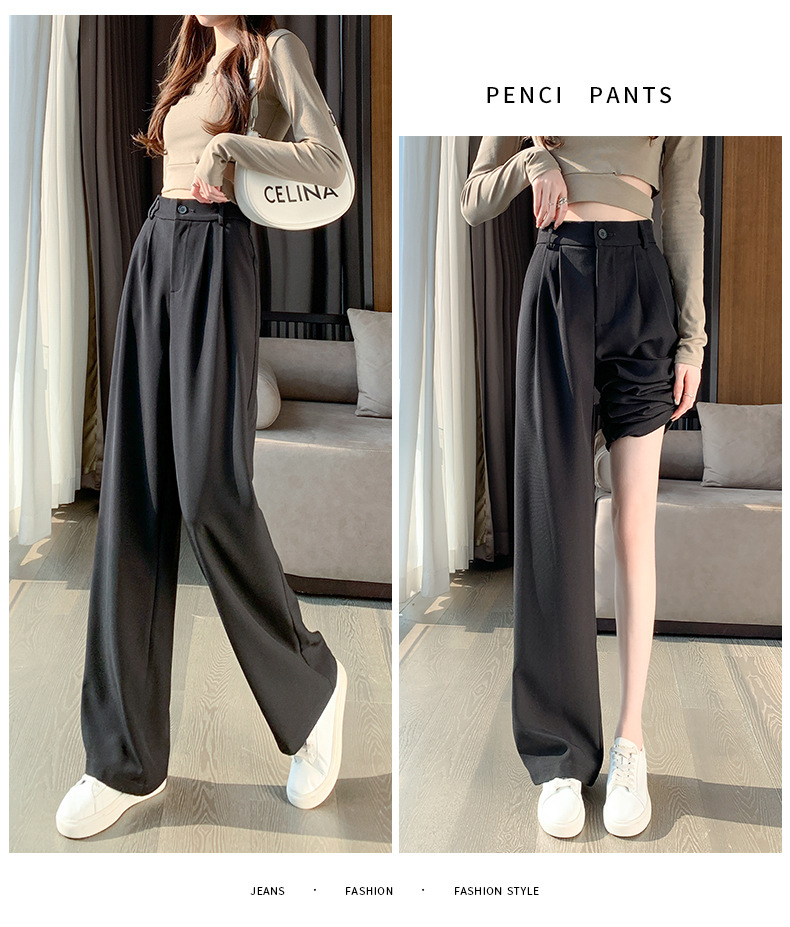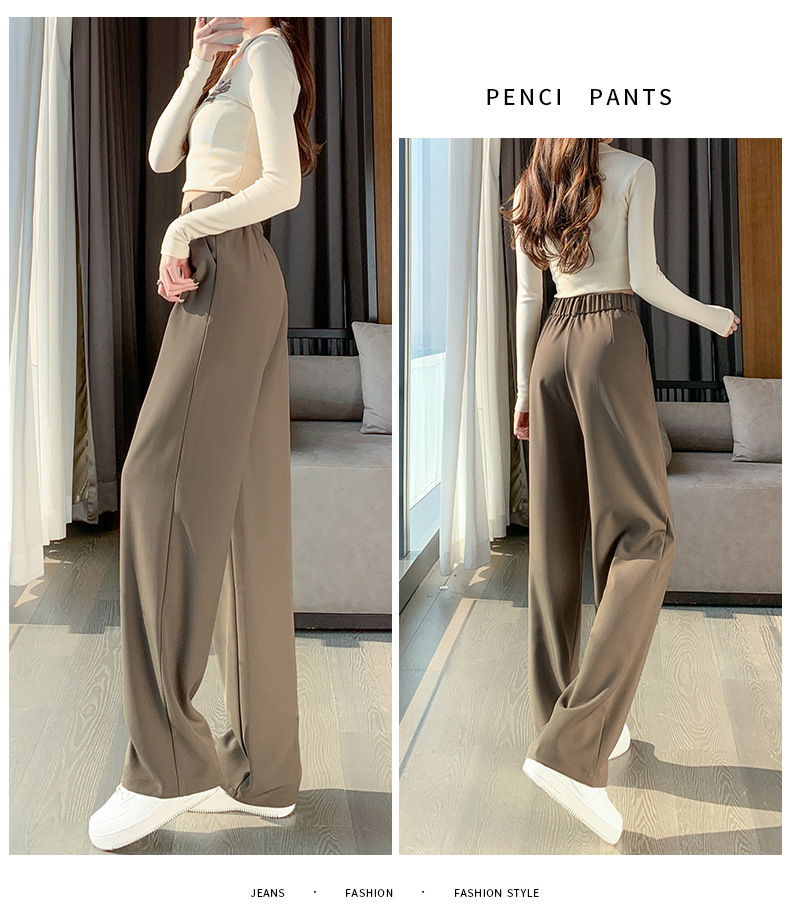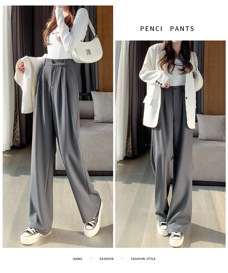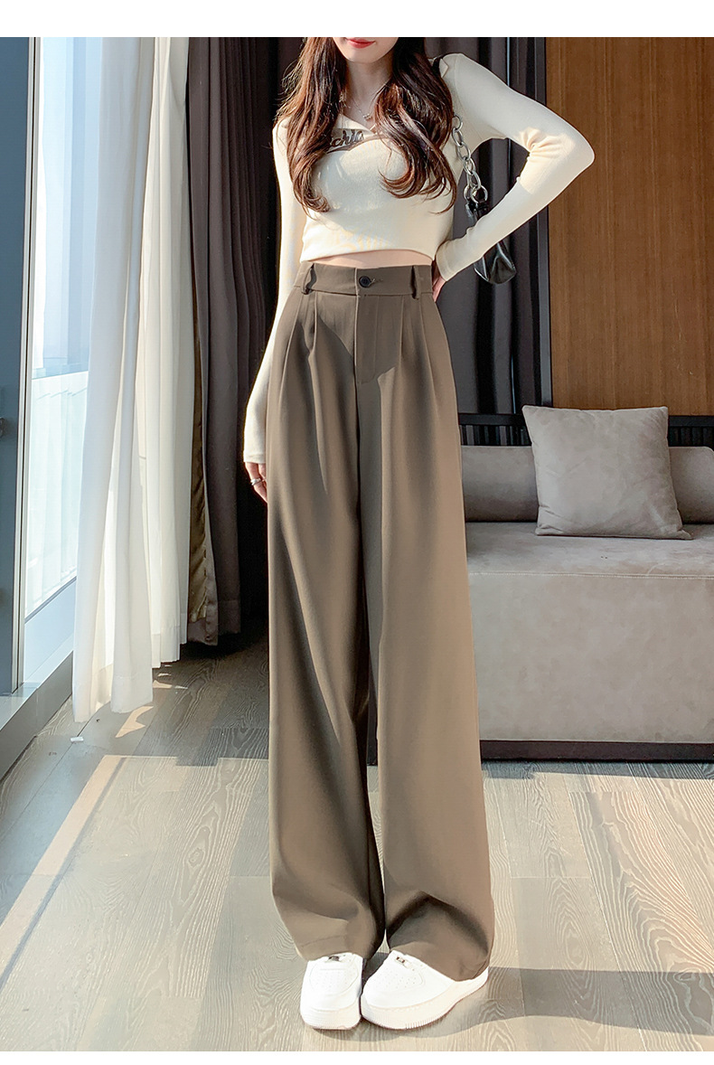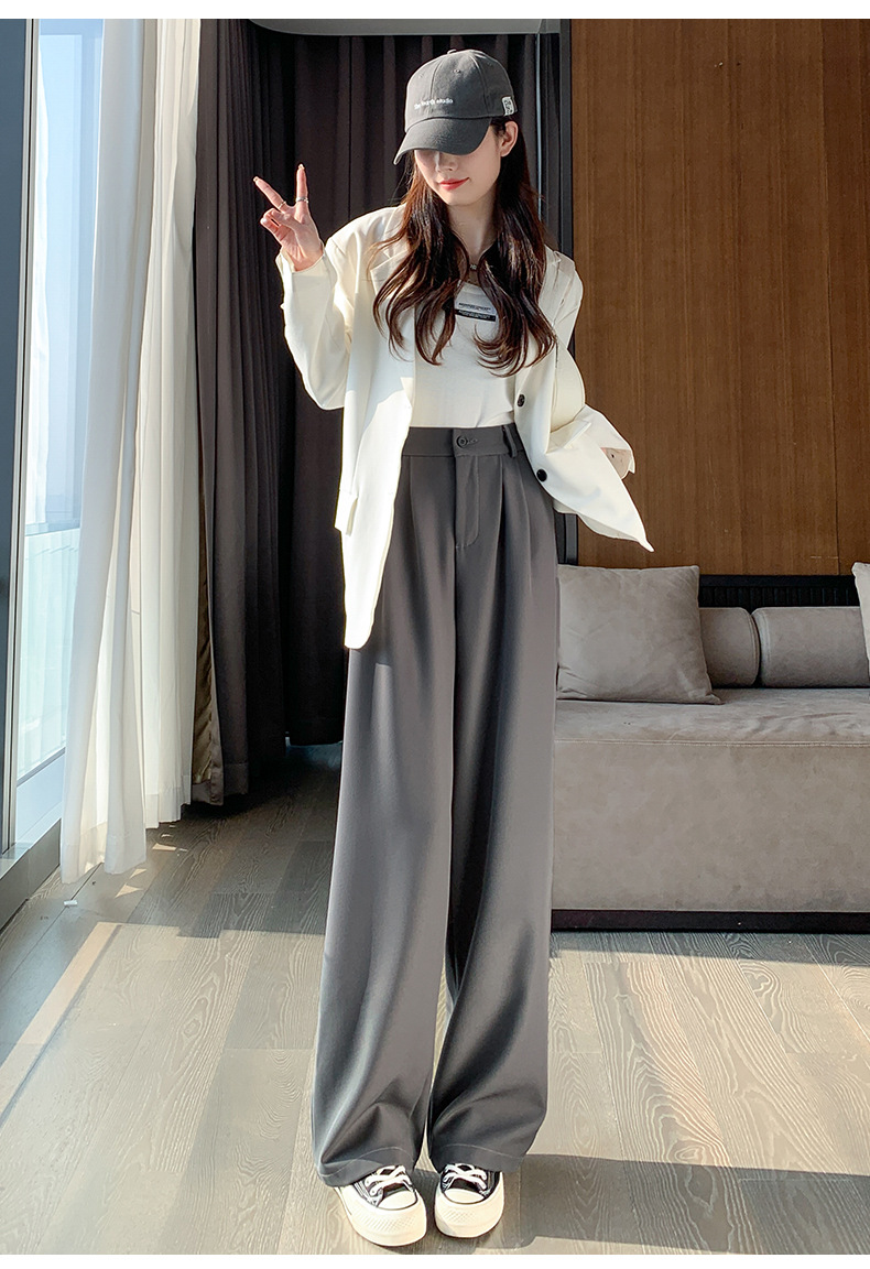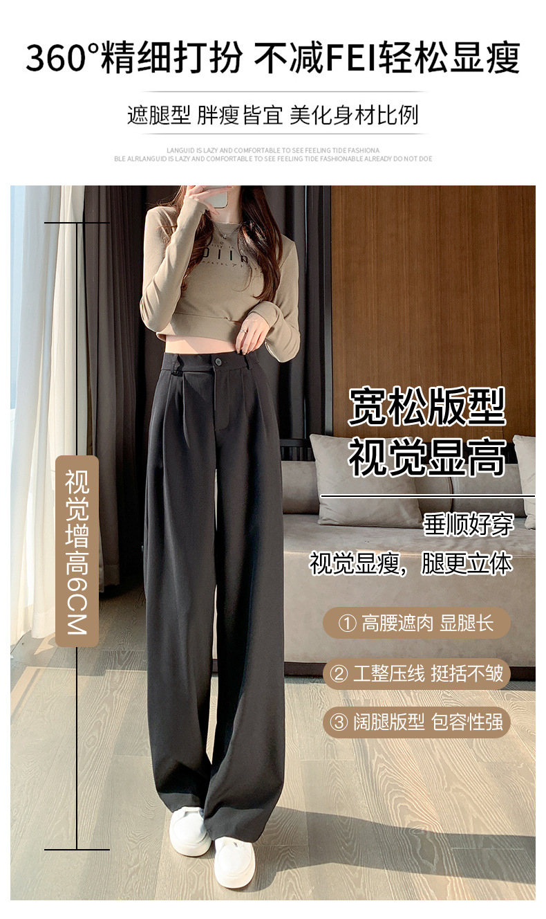 JMA-542 实拍2024初秋新款韩版垂感窄版直筒休闲裤女小个子西装裤阔腿长裤