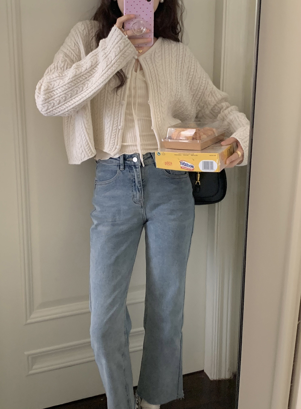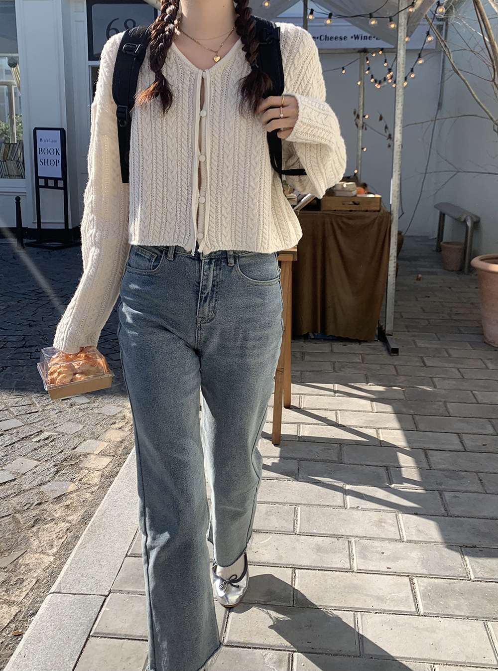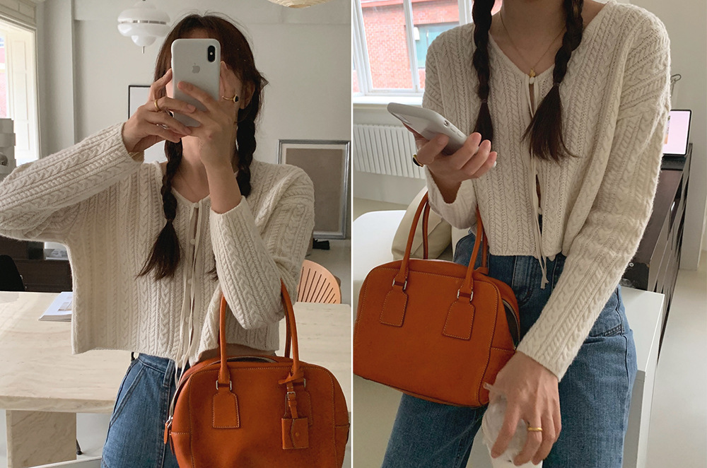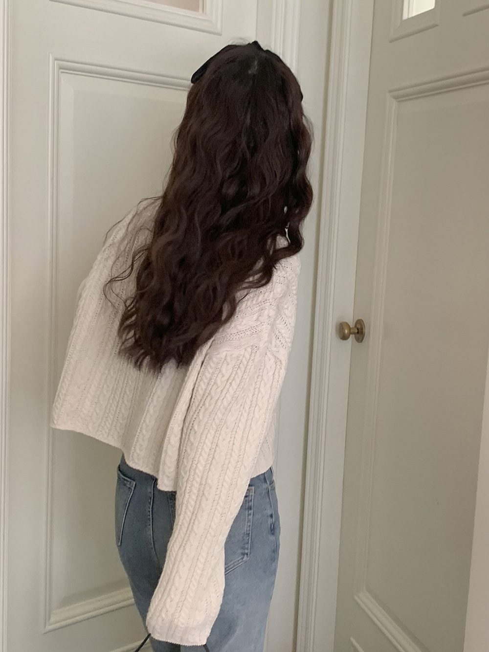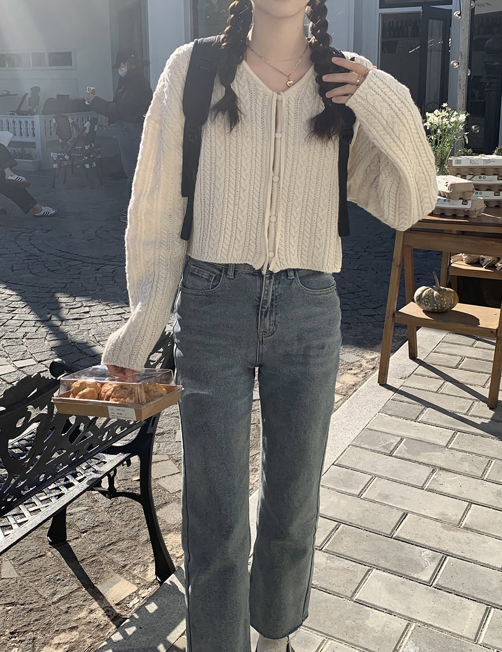 JMA-546 实拍2024秋冬韩版鬼马少女落肩麻花针织开衫甜美可爱系带毛衣外套