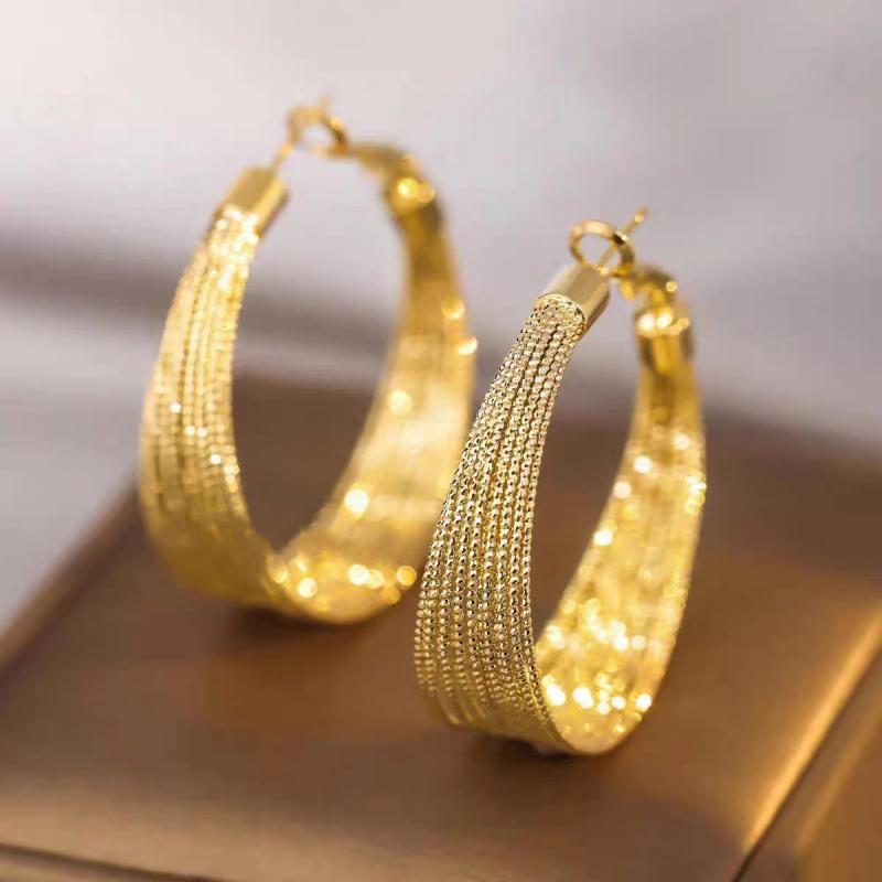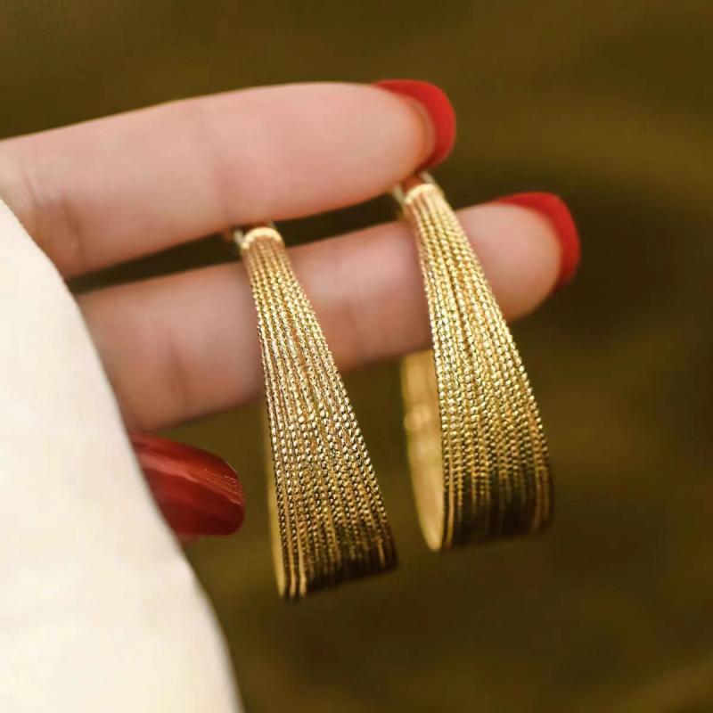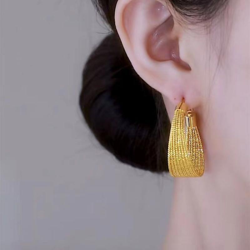 JME-522 欧美时尚夸张金色耳圈耳扣高级感女网红气质多层圆圈耳钉圈圈耳饰