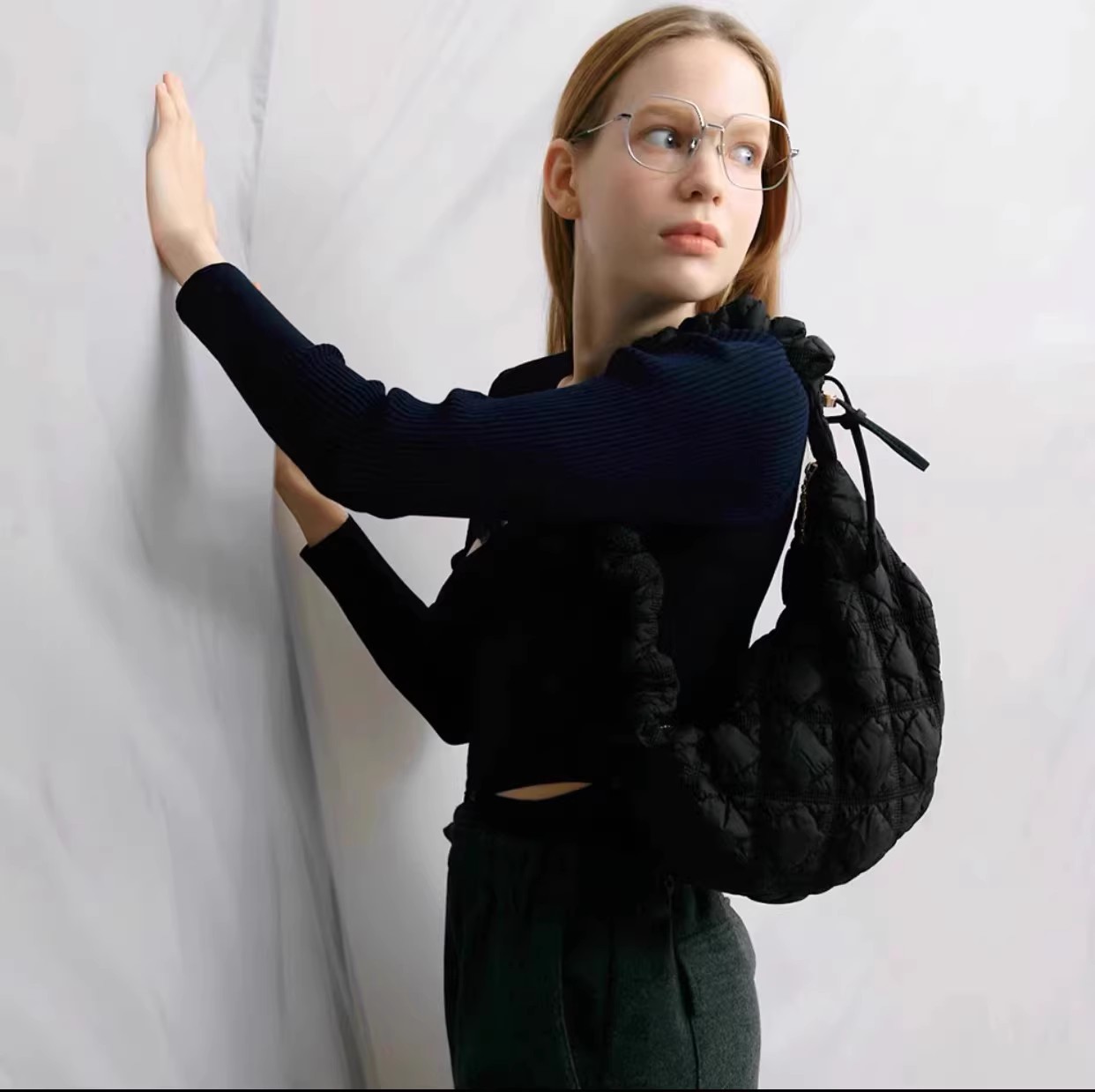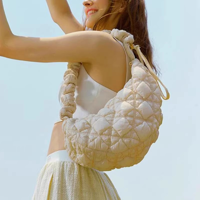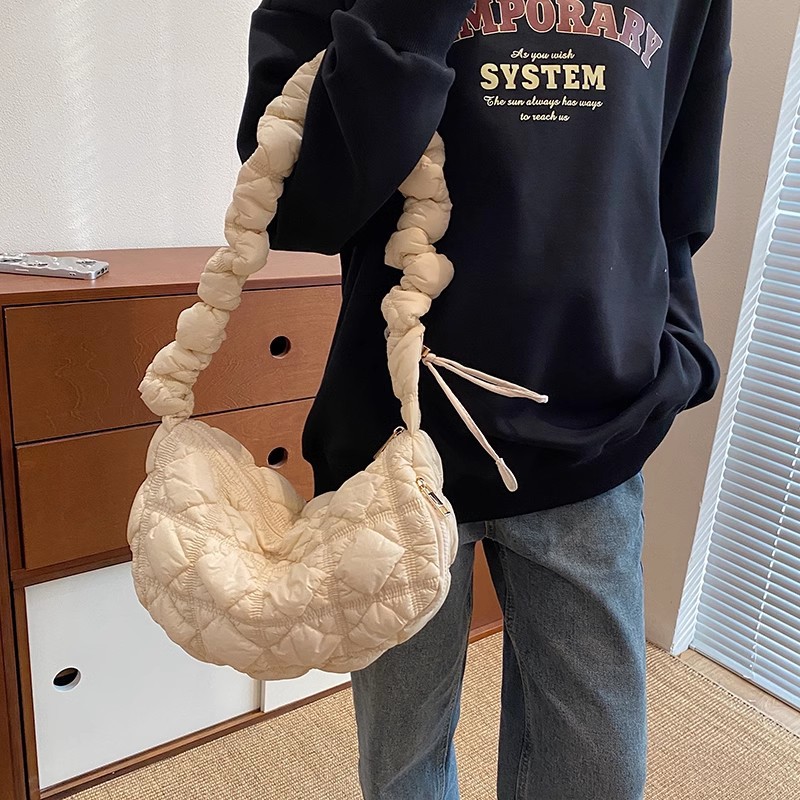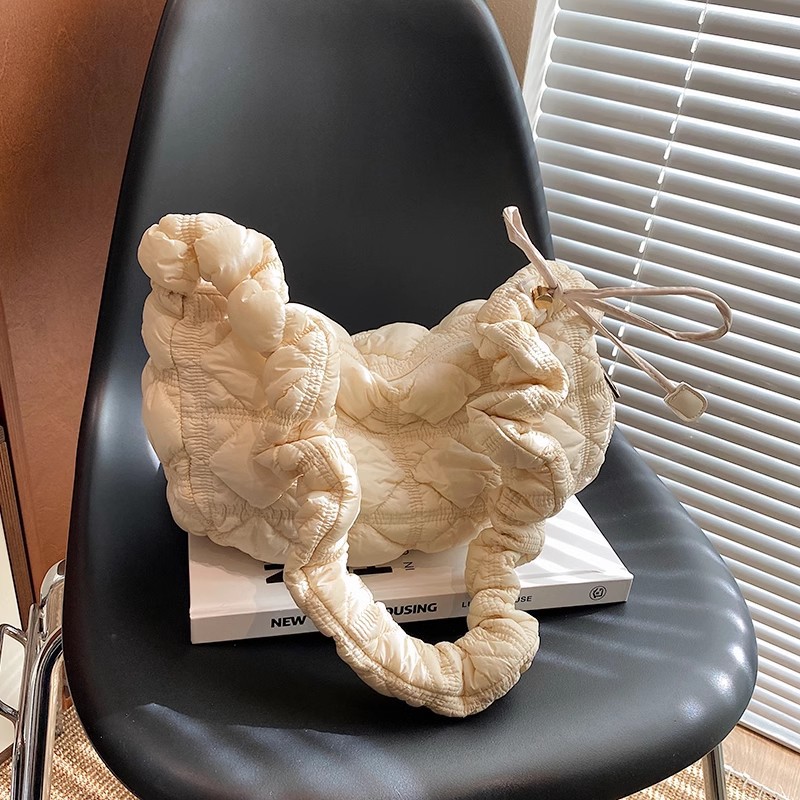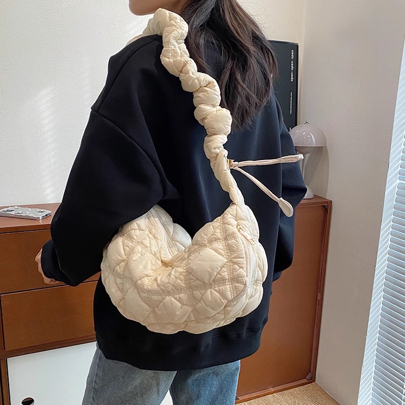JM-956 饺子包2024秋冬小众百搭云朵褶皱包女大容量轻便羽绒单肩包斜挎包