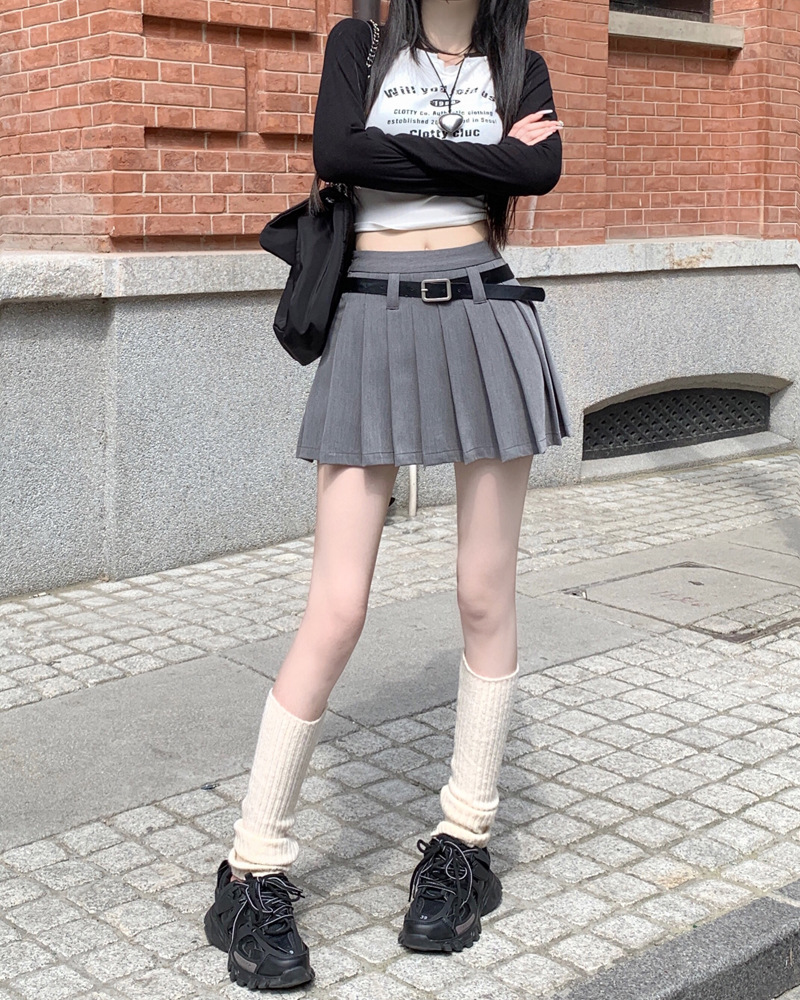 JMA-566 实拍 西装百褶裙女2023秋季新款韩版高腰百搭A字半身裙显瘦短裙子