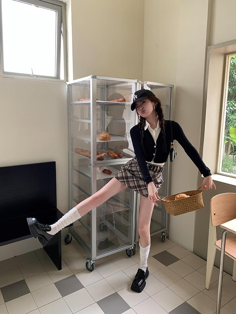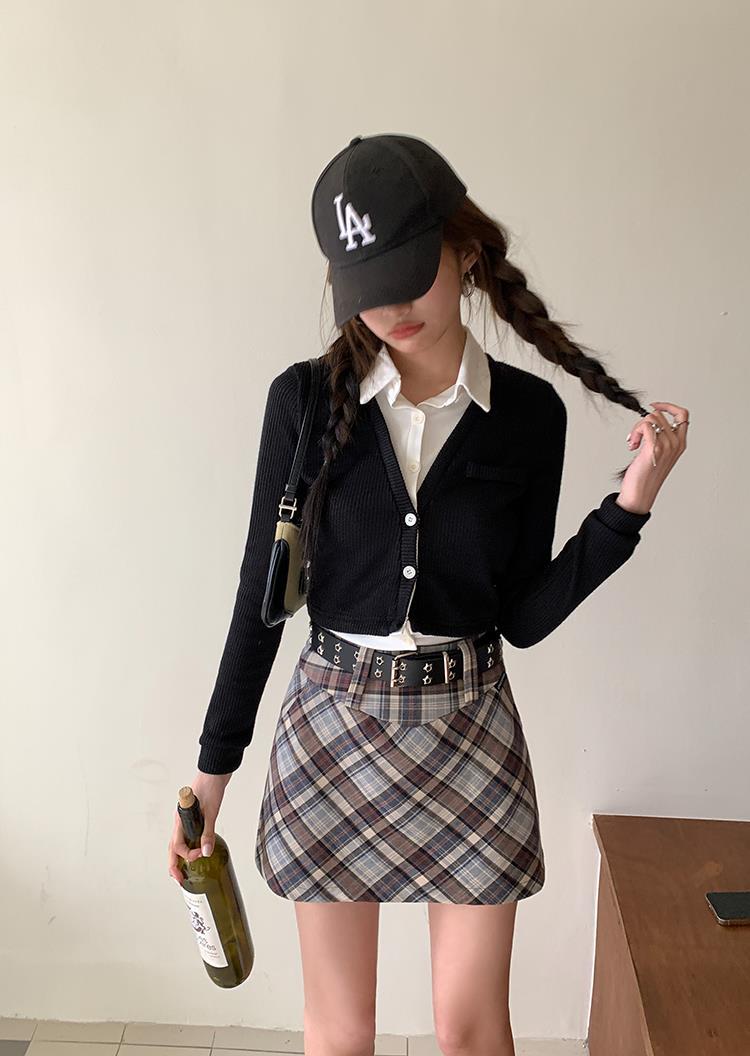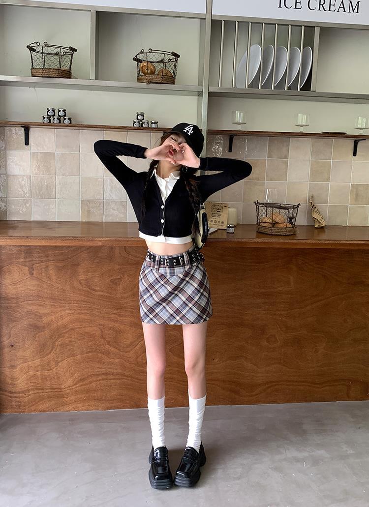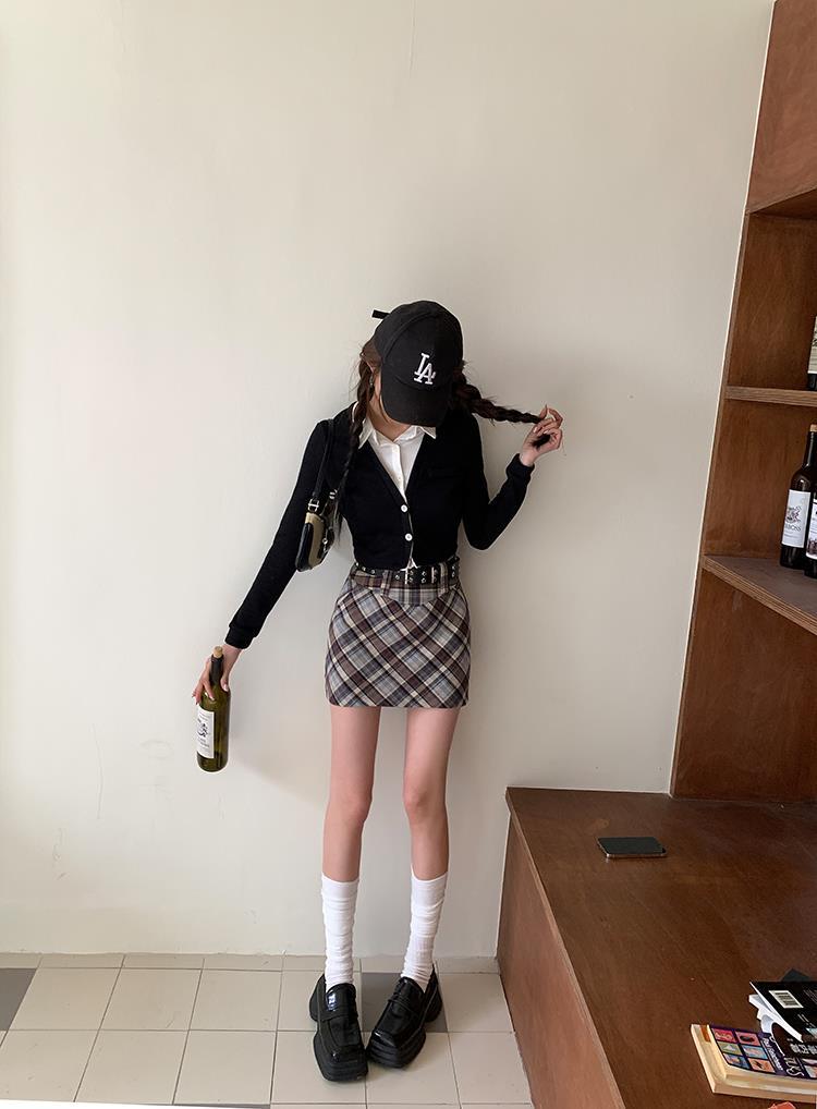 JMA-568 实拍2024春夏新款美式甜辣风高腰显瘦学院风格纹包臀短裙半身裙女