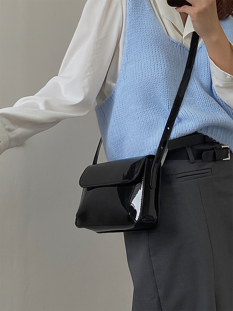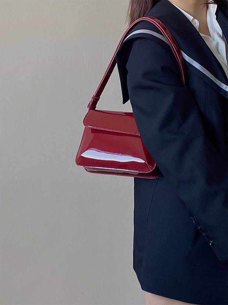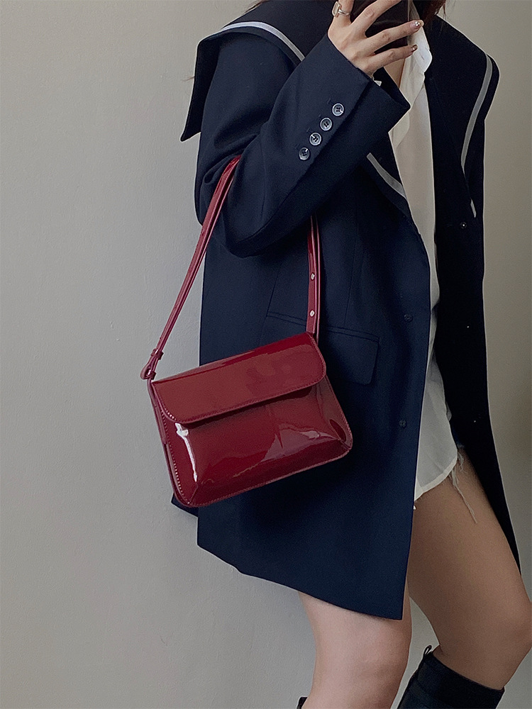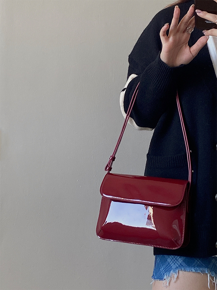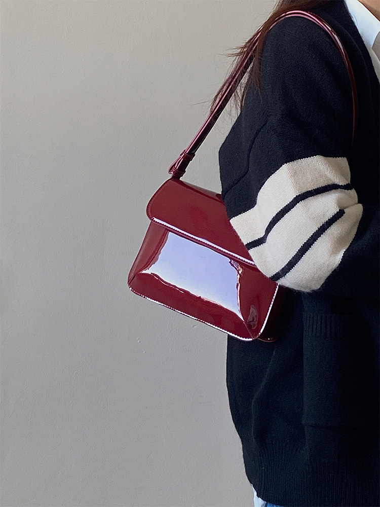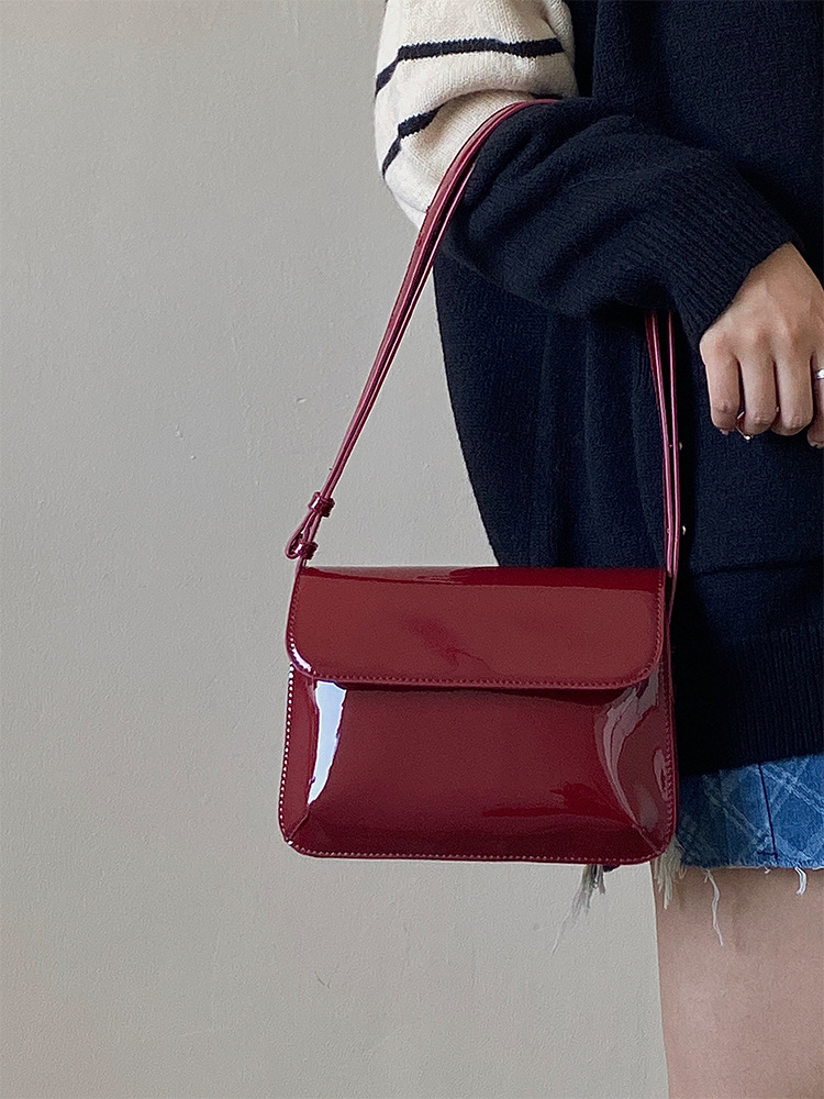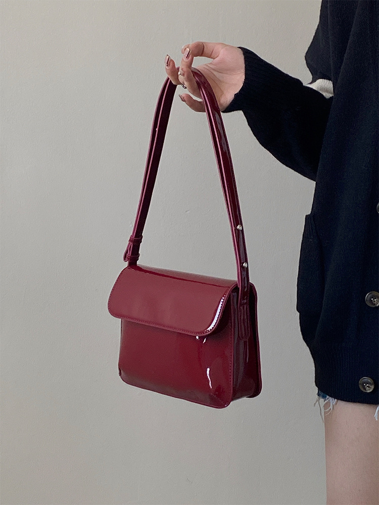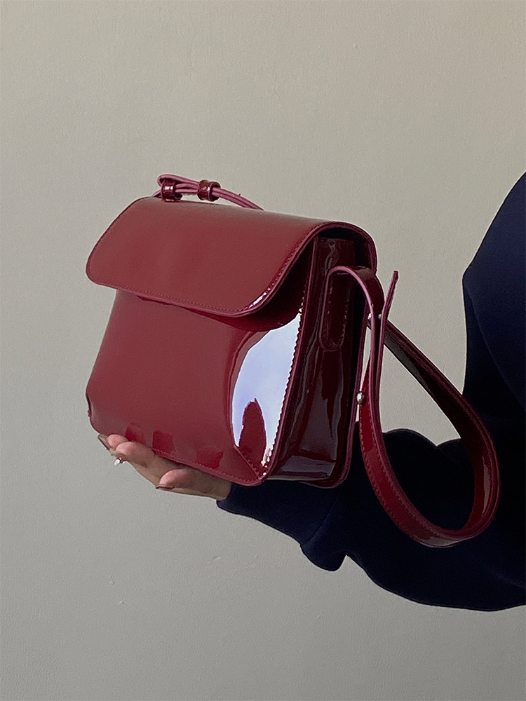 JM-970 复古红色漆皮小方包腋下包2023新款时尚百搭方形手提单肩包斜挎包