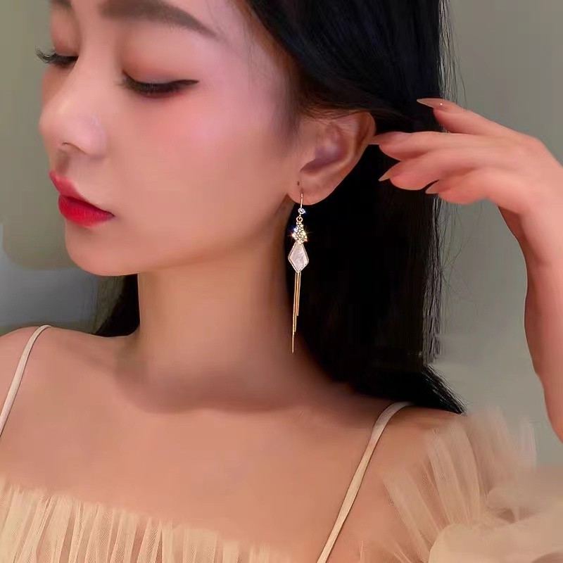 JME-543 2024韩国个性几何流苏长款不规则气质冷淡风锆石流苏大气百搭耳环