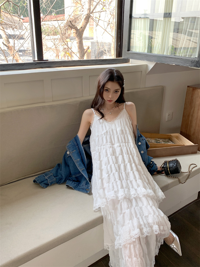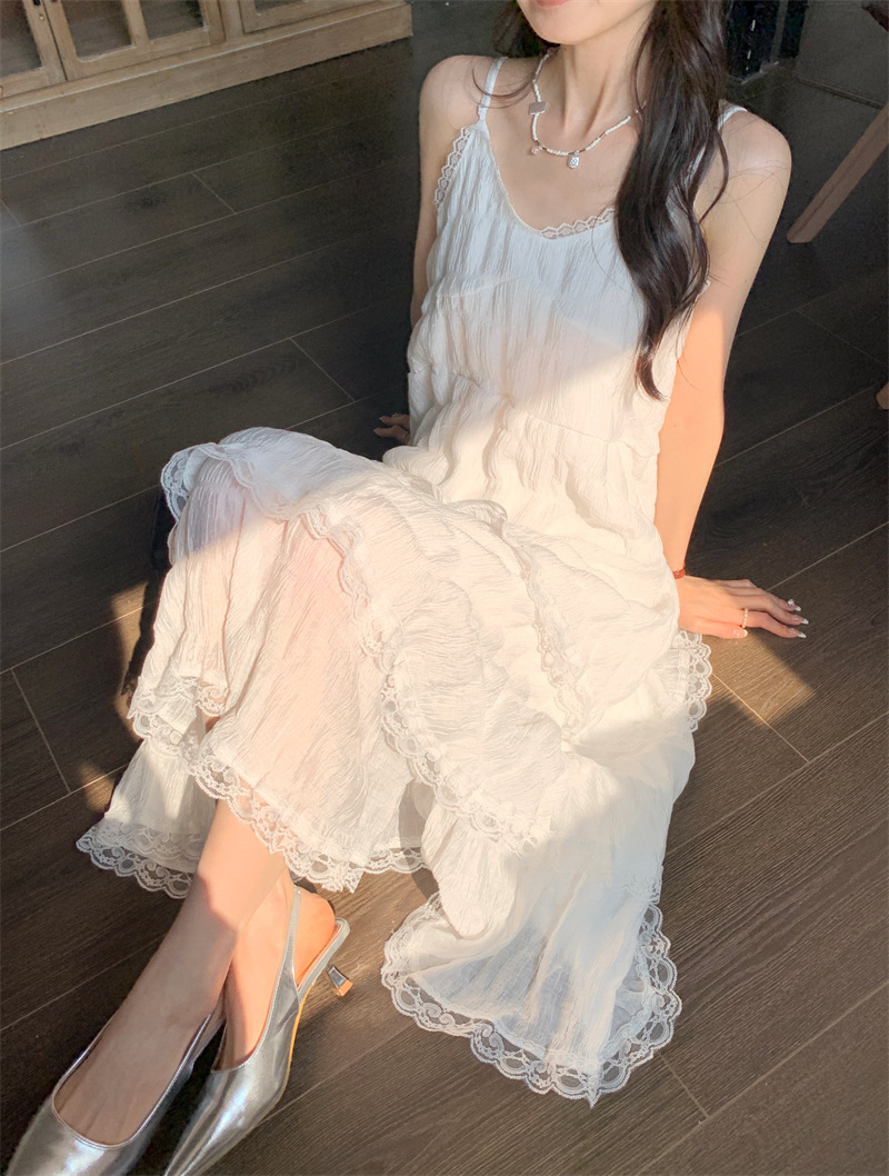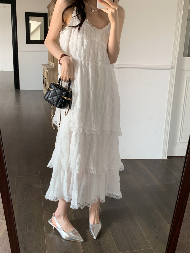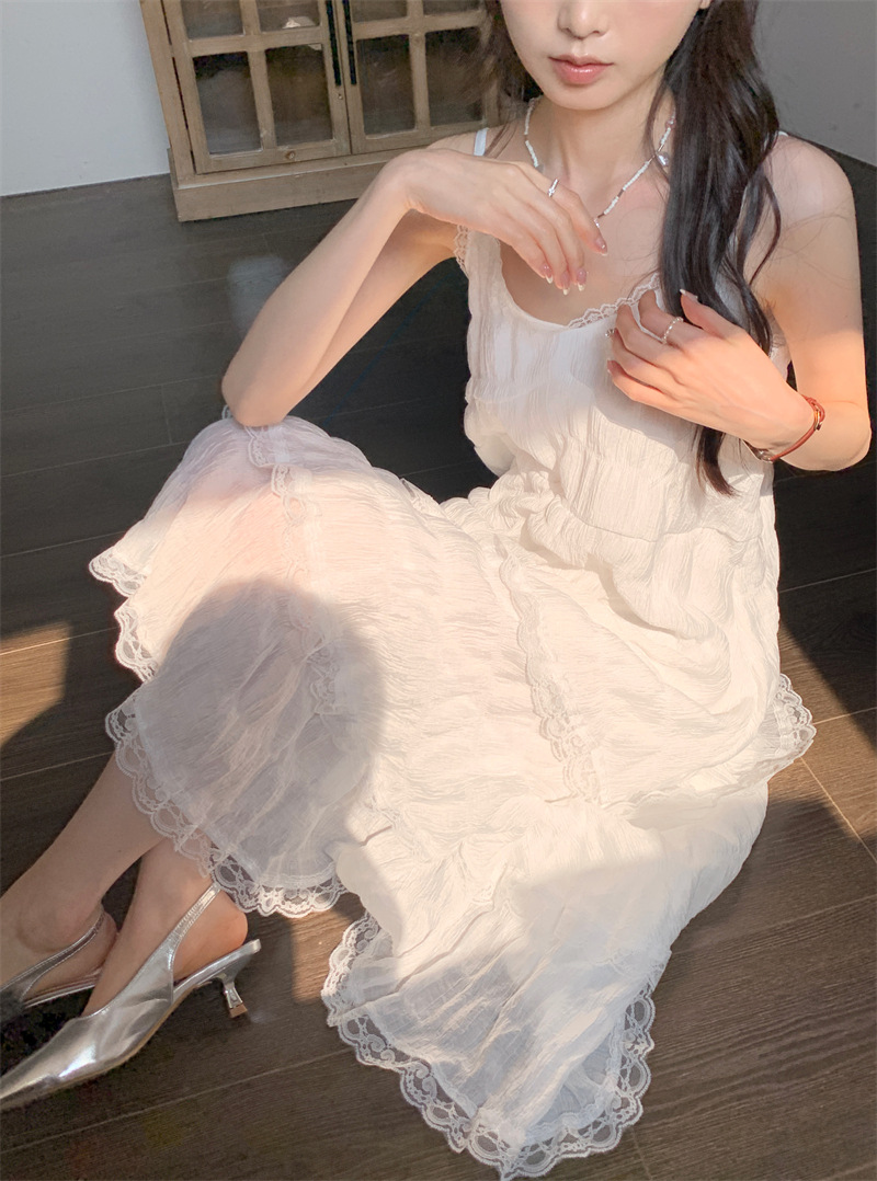 JMA-582 实拍 蕾丝花边吊带裙连衣裙女2023春夏季气质百搭A字裙中长款裙子