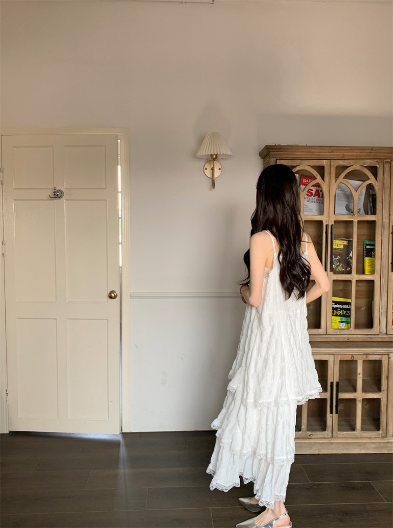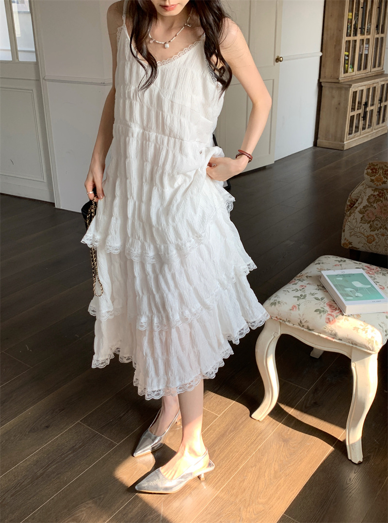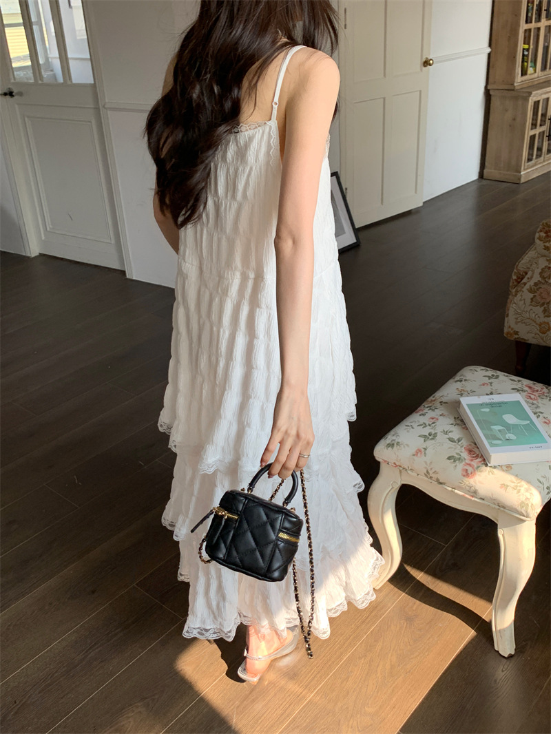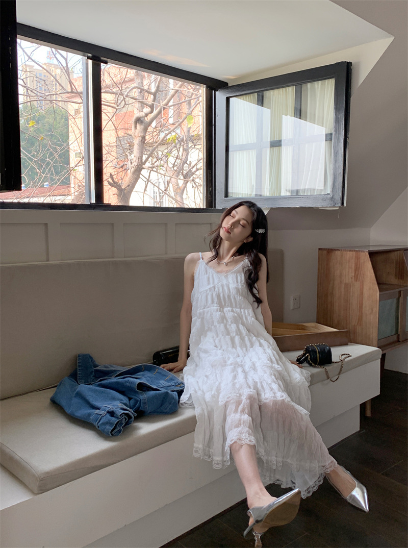JMA-582 实拍 蕾丝花边吊带裙连衣裙女2023春夏季气质百搭A字裙中长款裙子