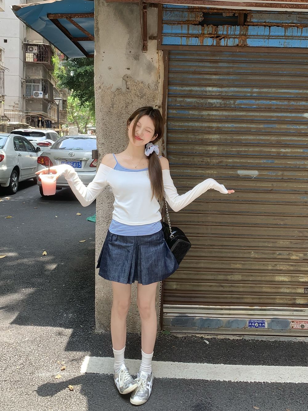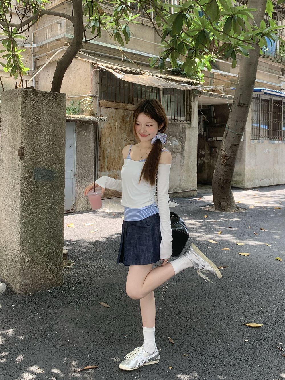 JMA-588 实拍 2024早春季新款韩系小个子休闲套装条纹吊带衫+防晒长袖罩衫