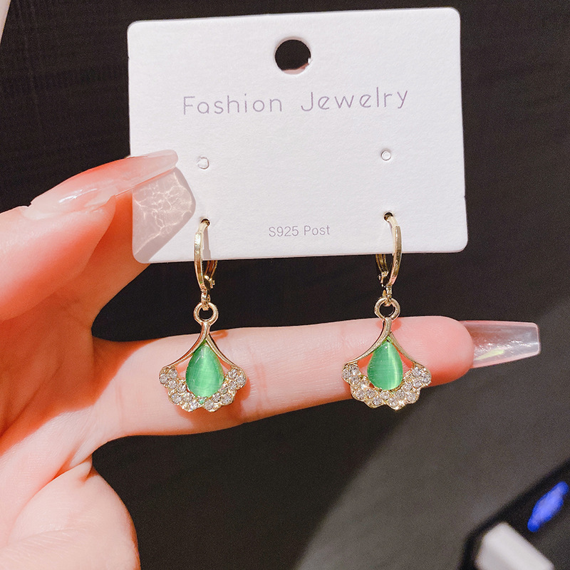JME-567 抖音耳饰猫眼石银杏叶耳环设计感小清新耳扣耳坠新款气质百搭耳饰